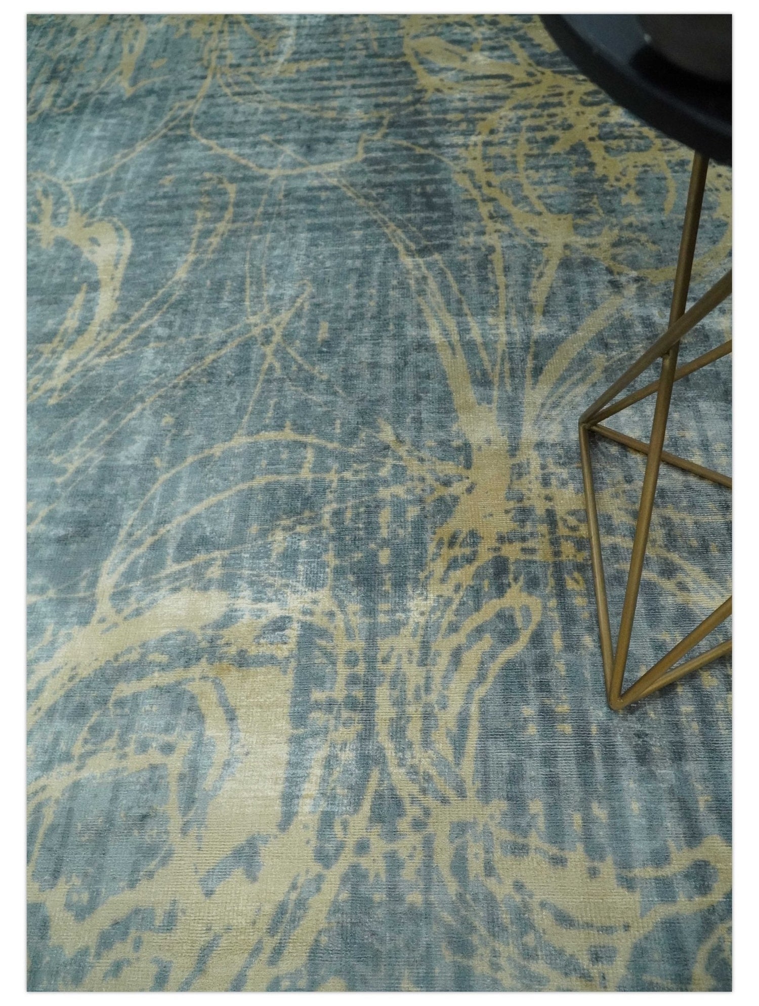 Modern Abstract Gray, Olive and Beige 5x8 Hand loom Viscose Area Rug - 5x8 is backordered and will ship as soon as it is back in stock.