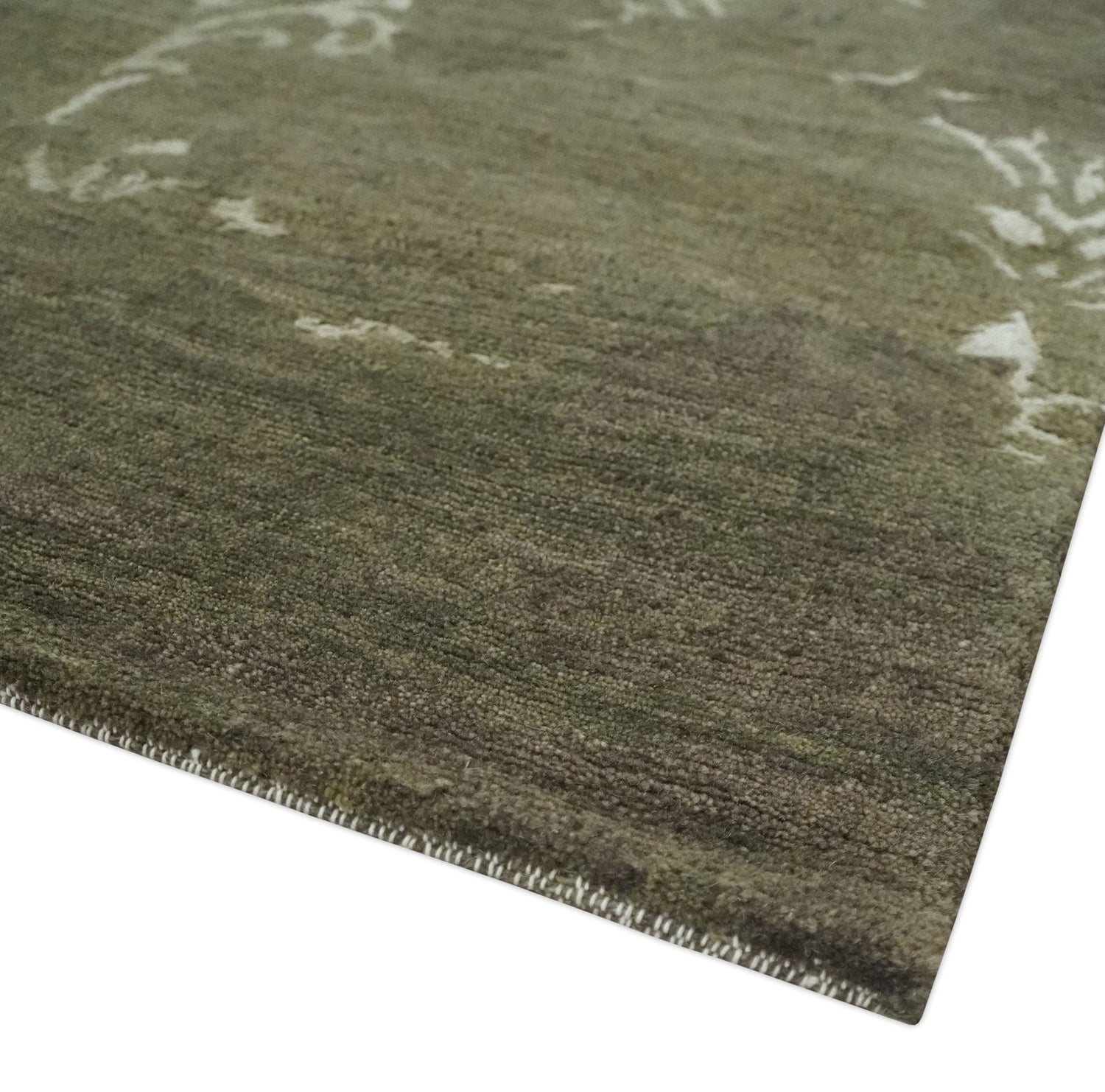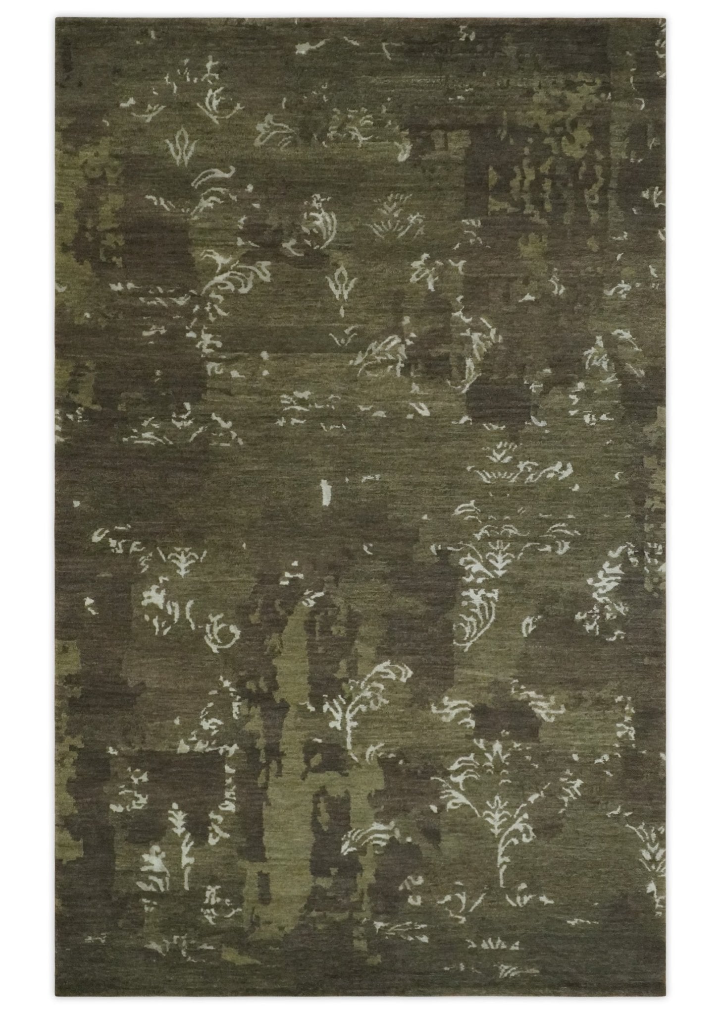 Modern Abstract Green and Silver Hand loom wool and Art Silk Area Rug