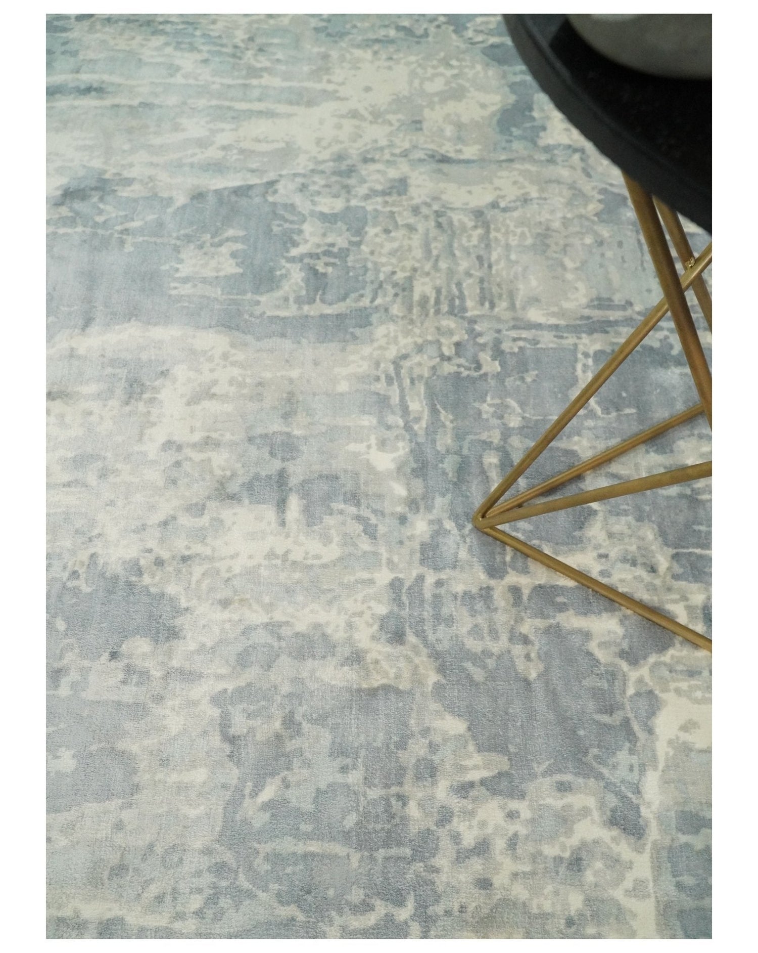 Modern Abstract Handmade 8x10 Beige and Gray Bamboo Silk Area Rug