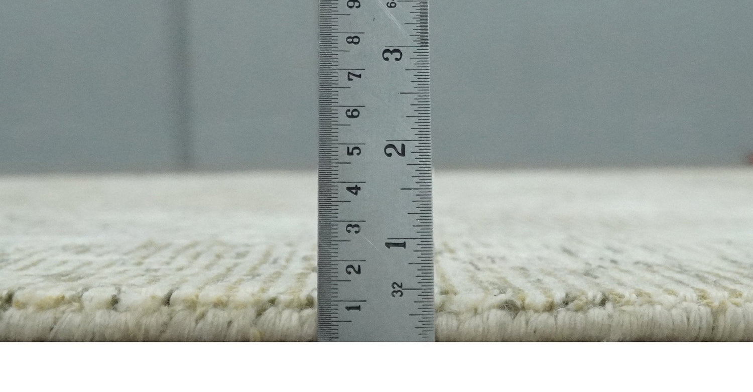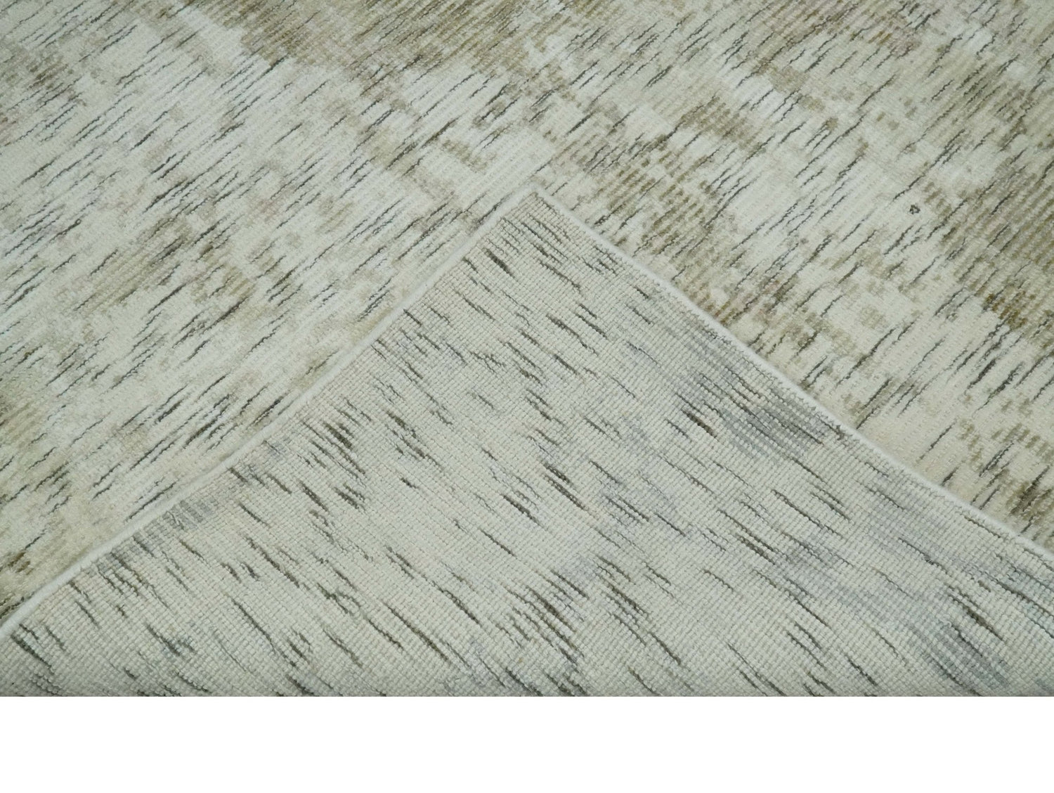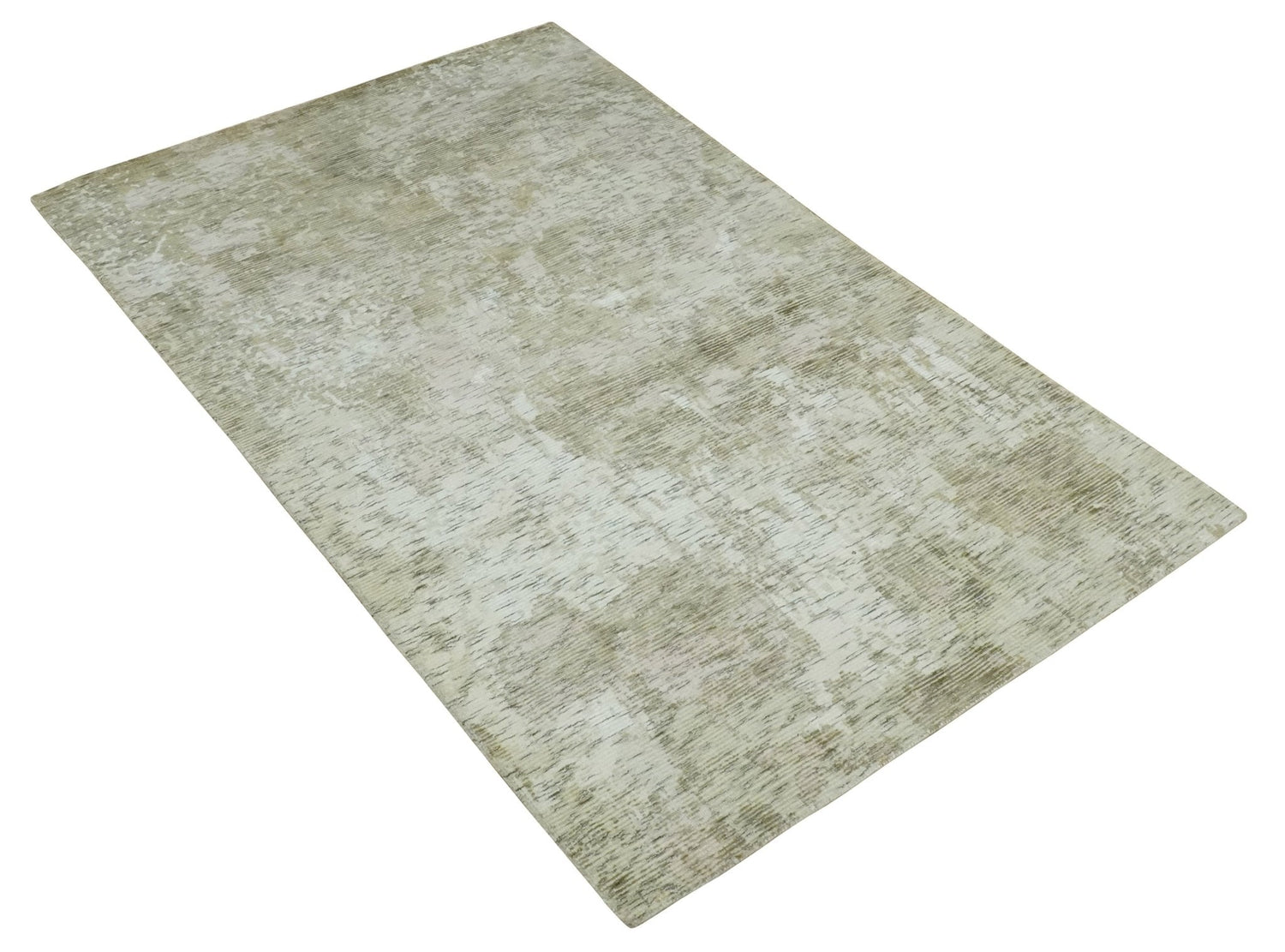 Modern Abstract Ivory, Green and Charcoal 5x8 Hand loom Wool and Viscose Area Rug