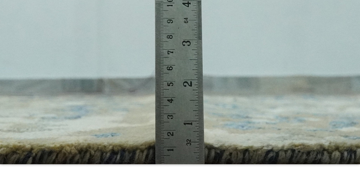 Modern abstract Olive, Ivory, Blue and Silver Hand Knotted 5.6x8 wool Area Rug - 5.6x8 is backordered and will ship as soon as it is back in stock.