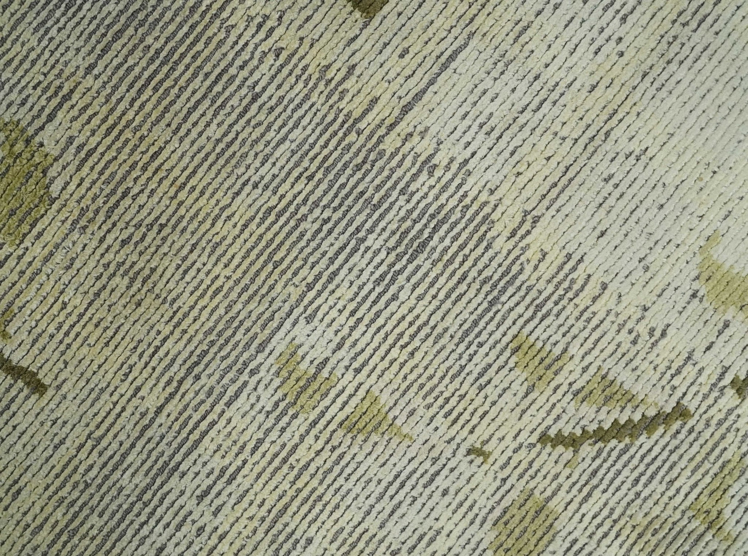 This modern area rug is a stunning combination of geometrical design and subtle color. Crafted from a blend of wool and silk, the 4.6x6.6 olive, ivory, and charcoal floral motif is hand knotted for lasting quality. Perfect for adding a touch of contemporary elegance to any space.