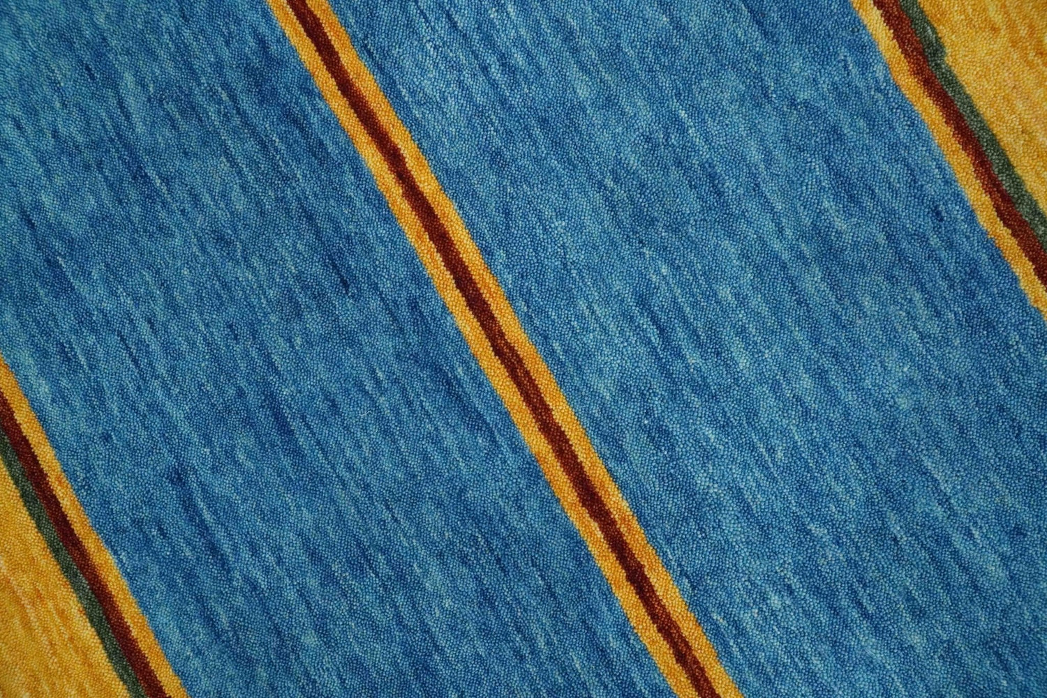 Modern Geometrical Blue, Gold, Brown and Green Stripes Design Hand loom 4.6x7 wool Area Rug