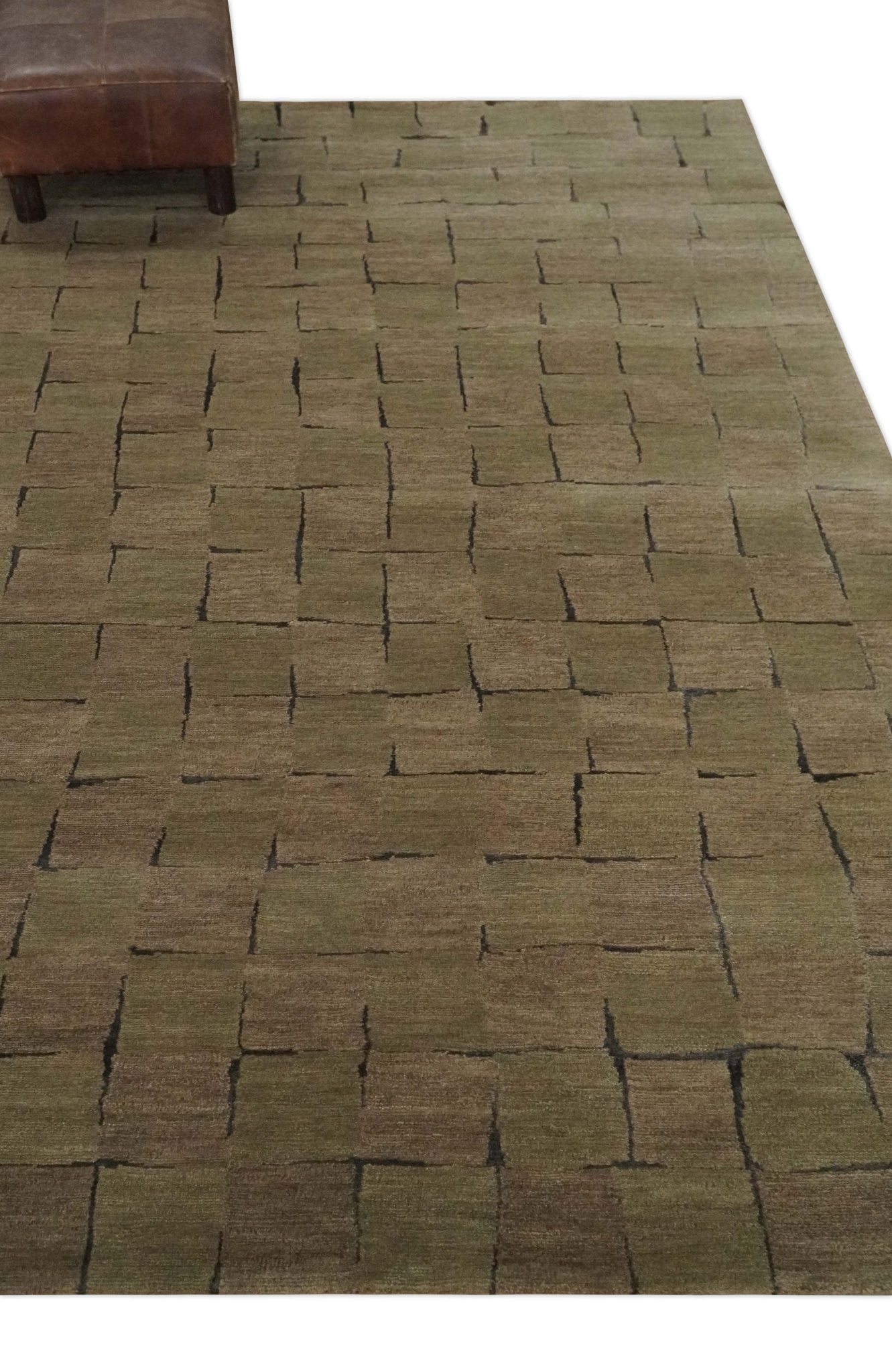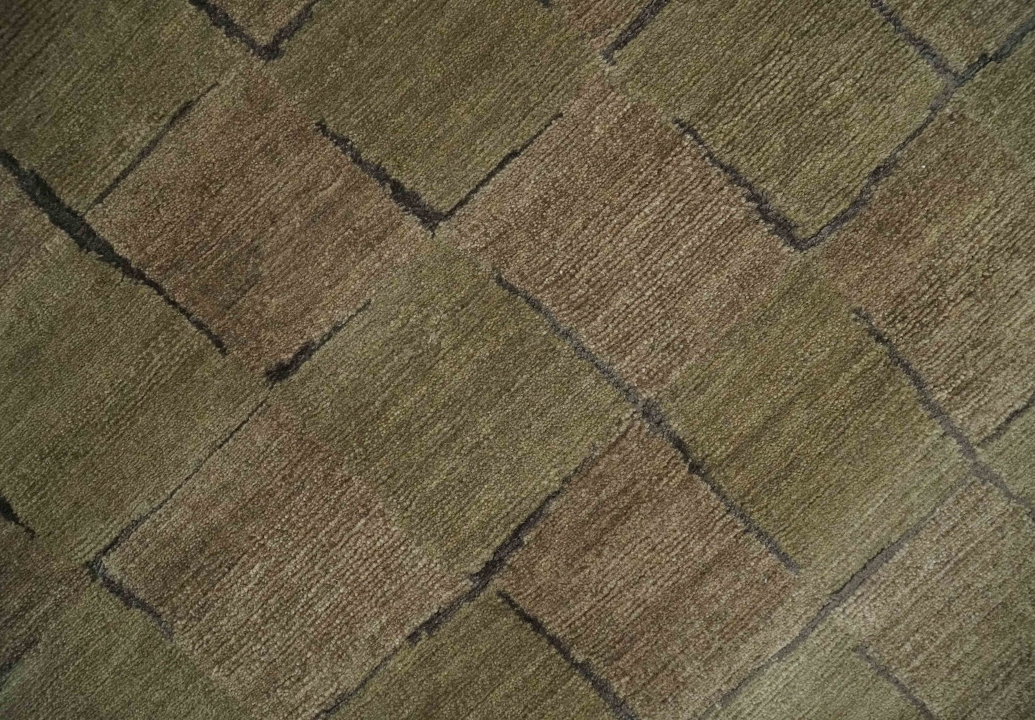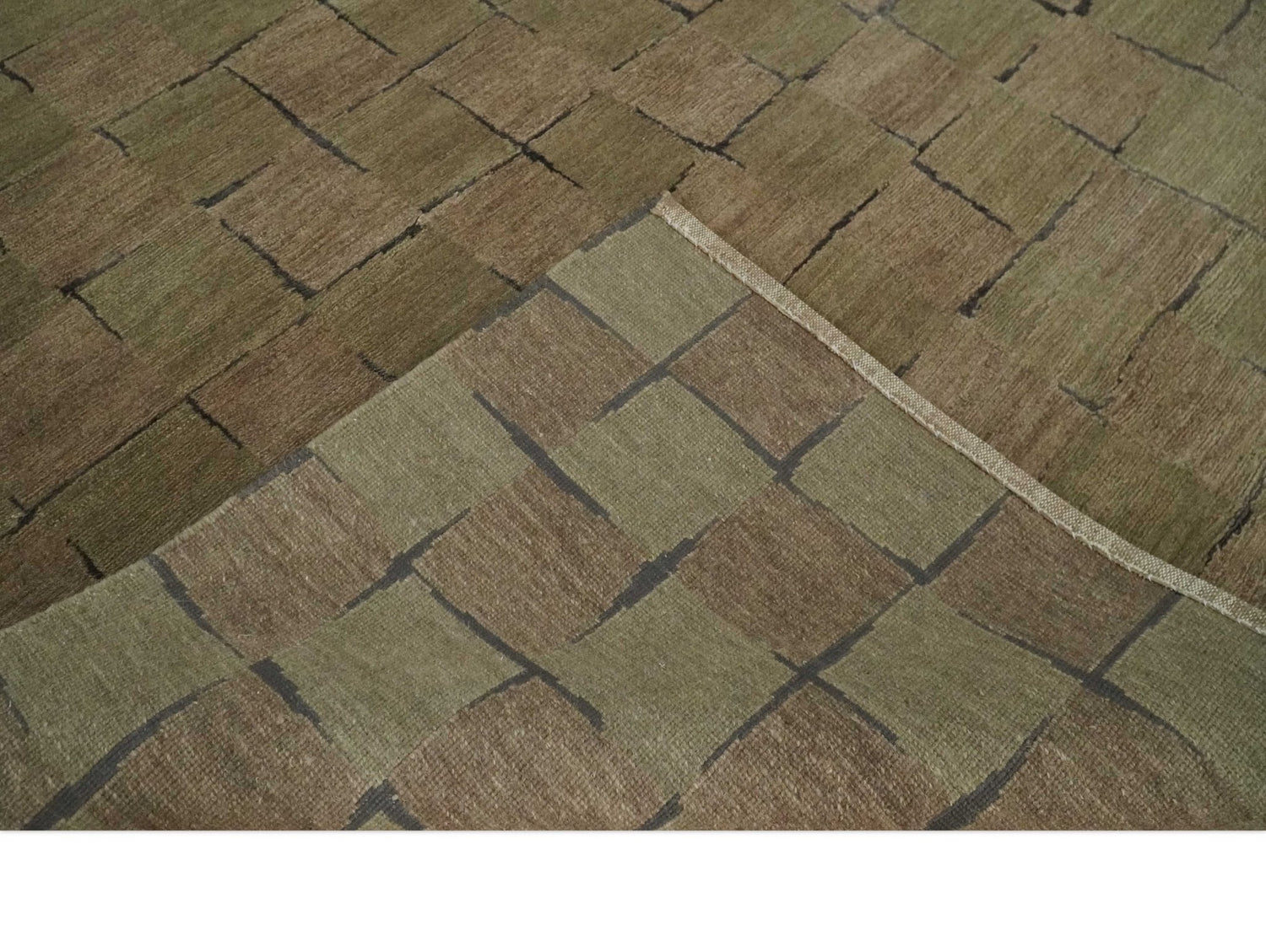 Modern Geometrical Brown, Olive and Charcoal Hand Knotted 5x8 Wool and Silk Area Rug - 5x8 is backordered and will ship as soon as it is back in stock.