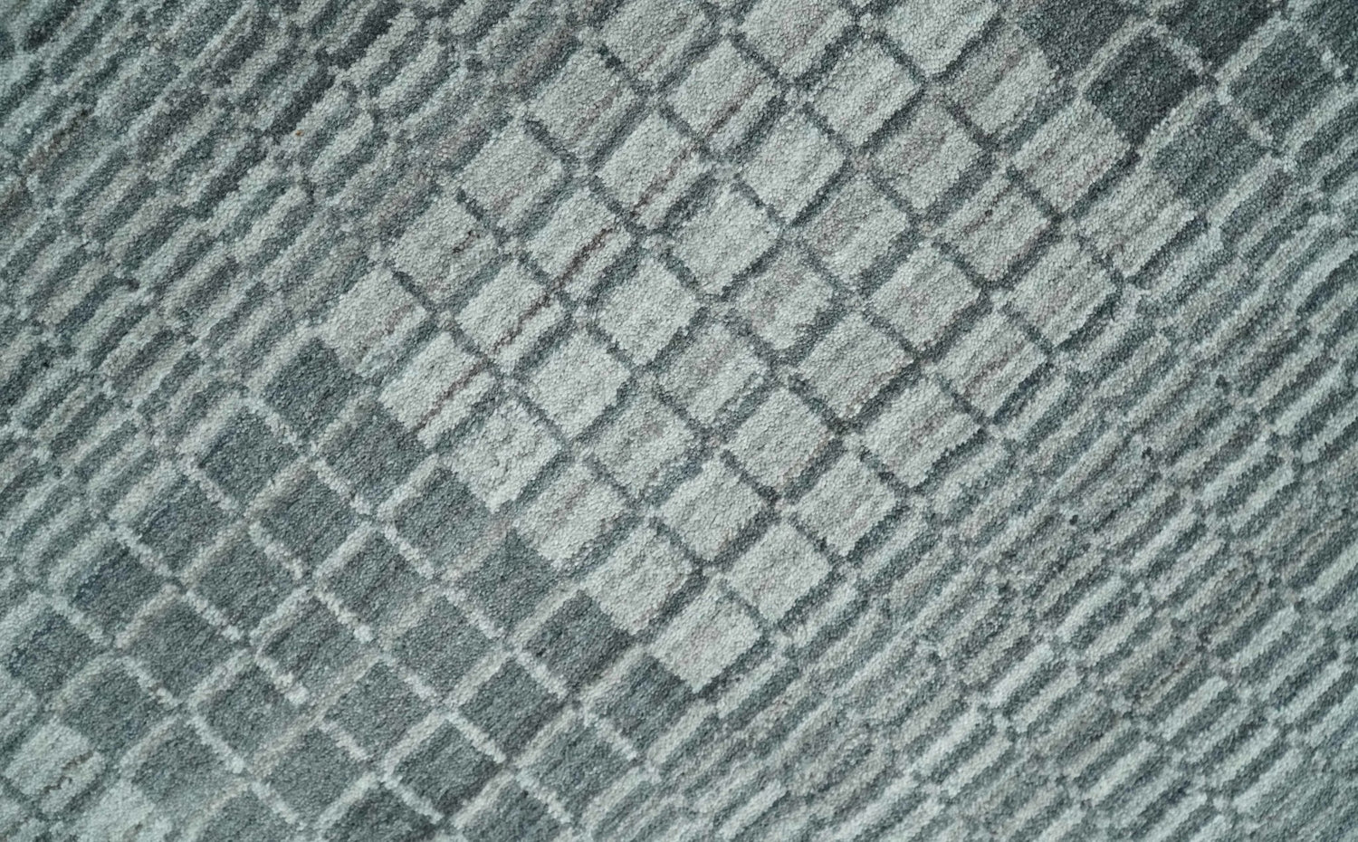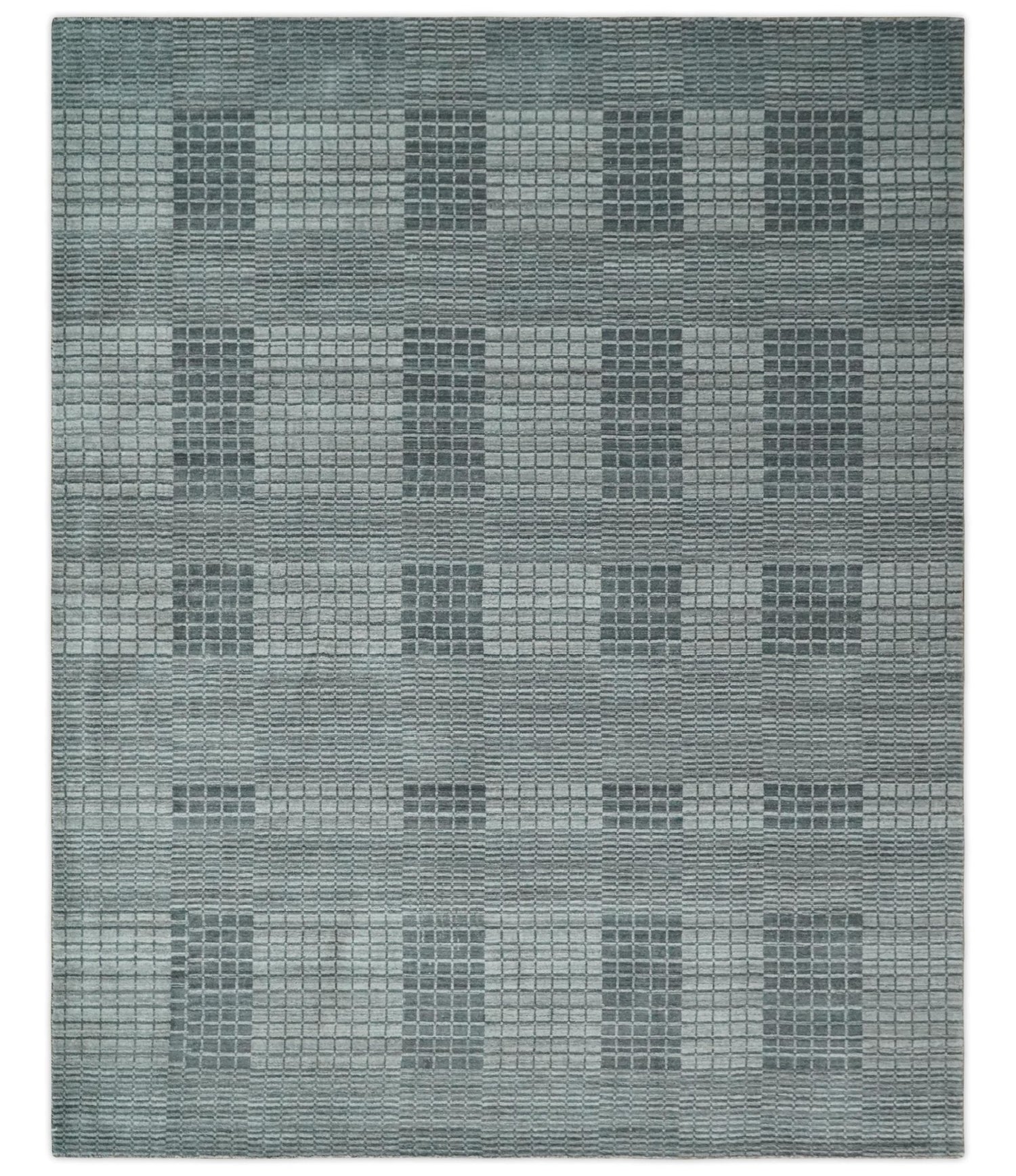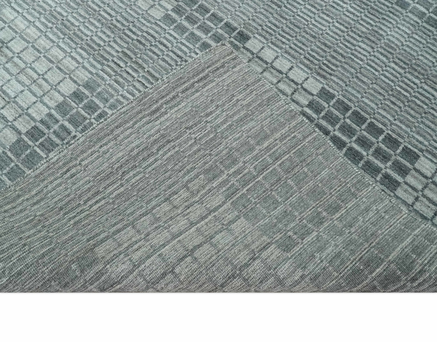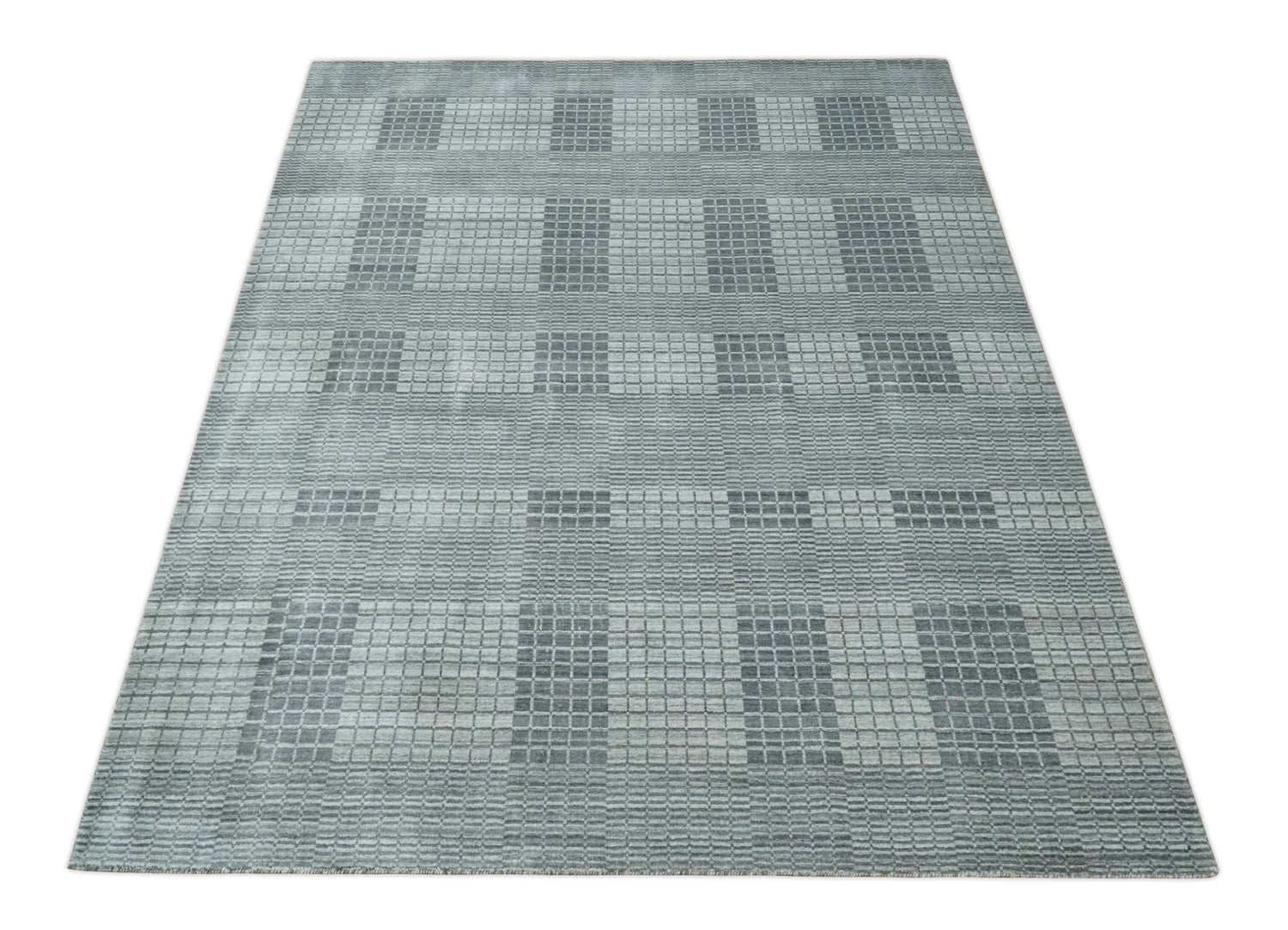 Modern Geometrical Checkered striped Hand Made 8x10 Charcoal, Gray and Silver Scandinavian Blended Wool Flatwoven Area Rug | KE38