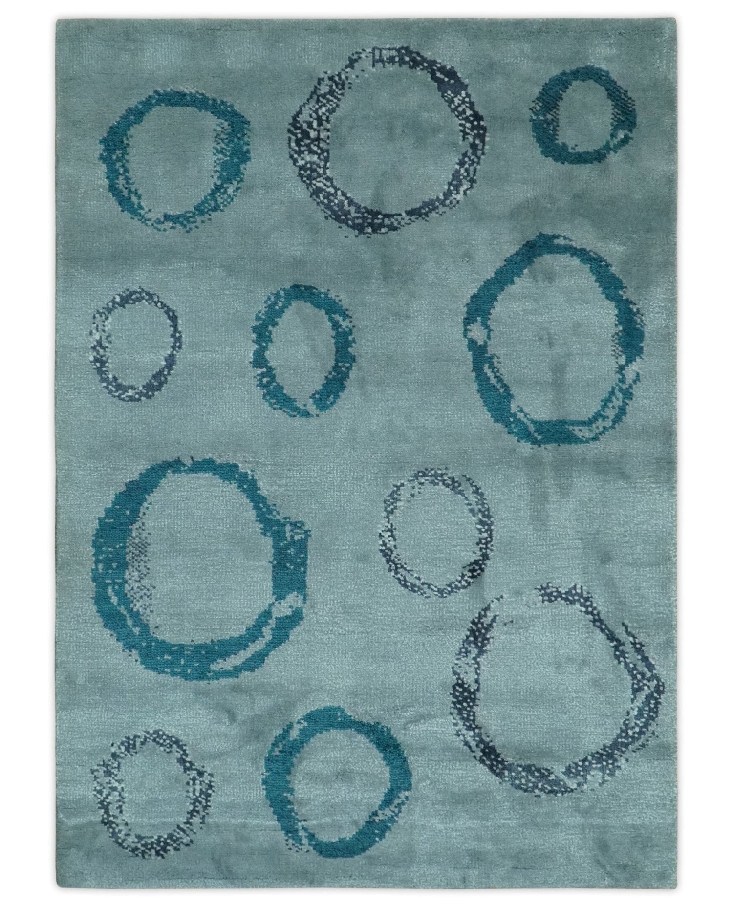 Modern Geometrical Circle Design Teal and Charcoal 5x7 Hand Knotted wool area rug