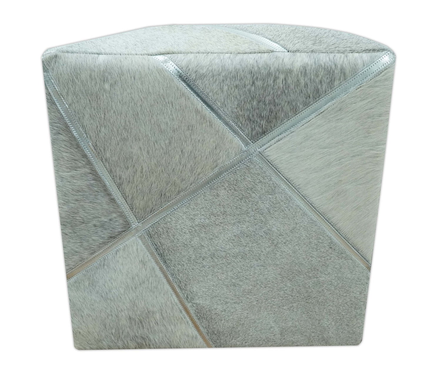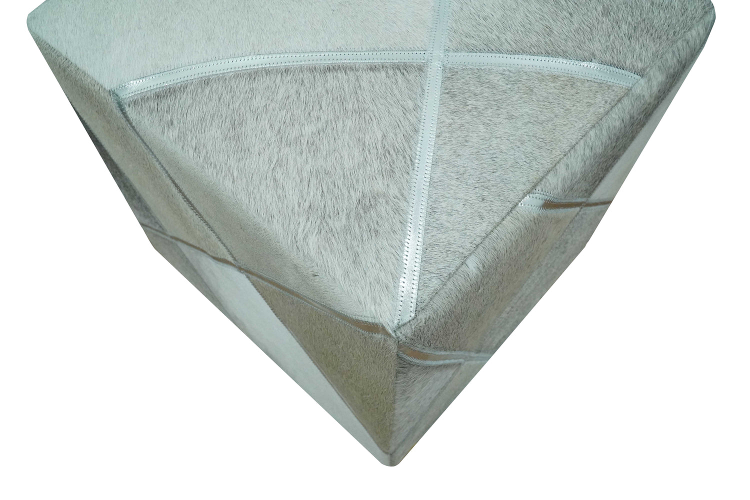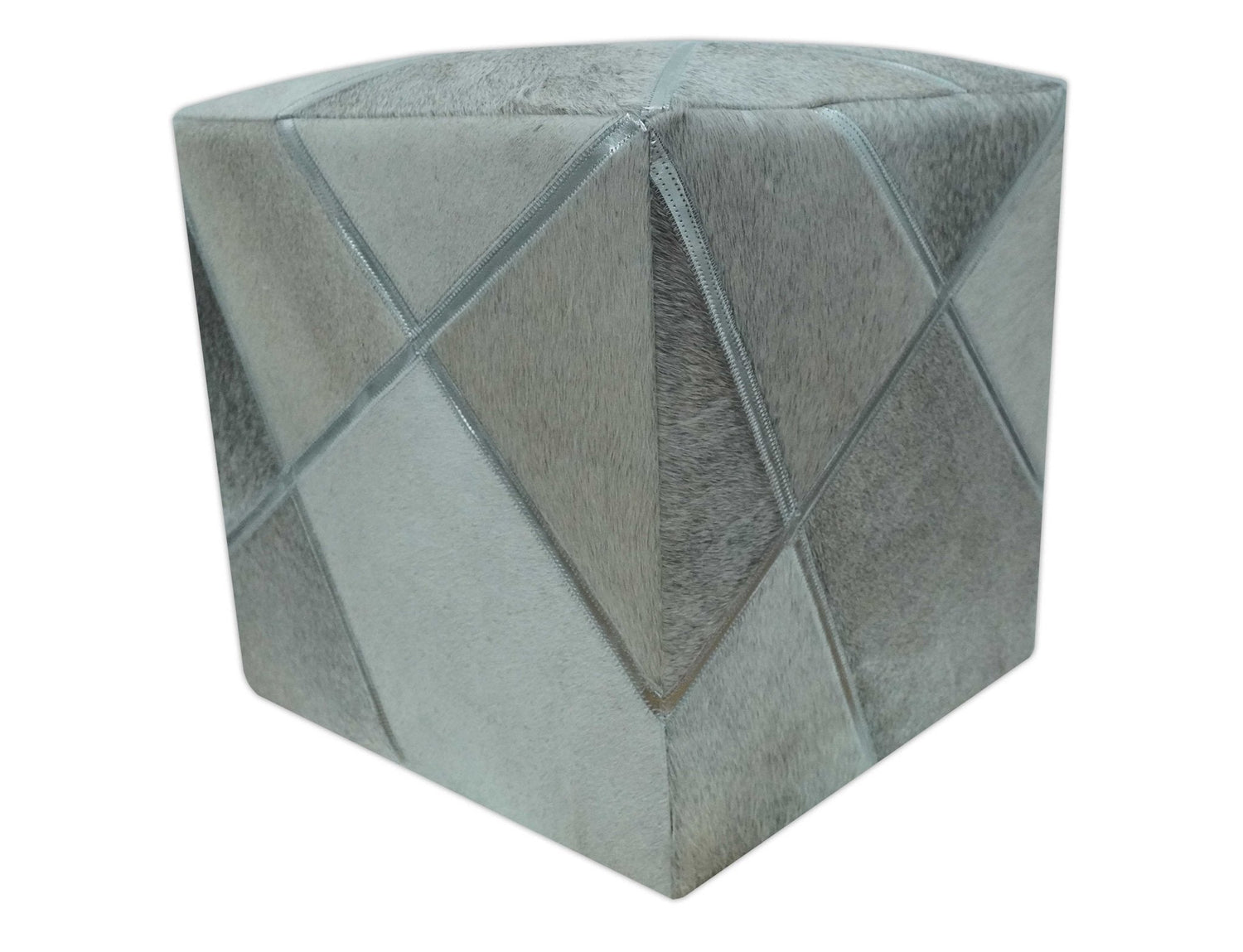 Modern Geometrical Shades of Gray and Ivory Genuine Leather Pouf