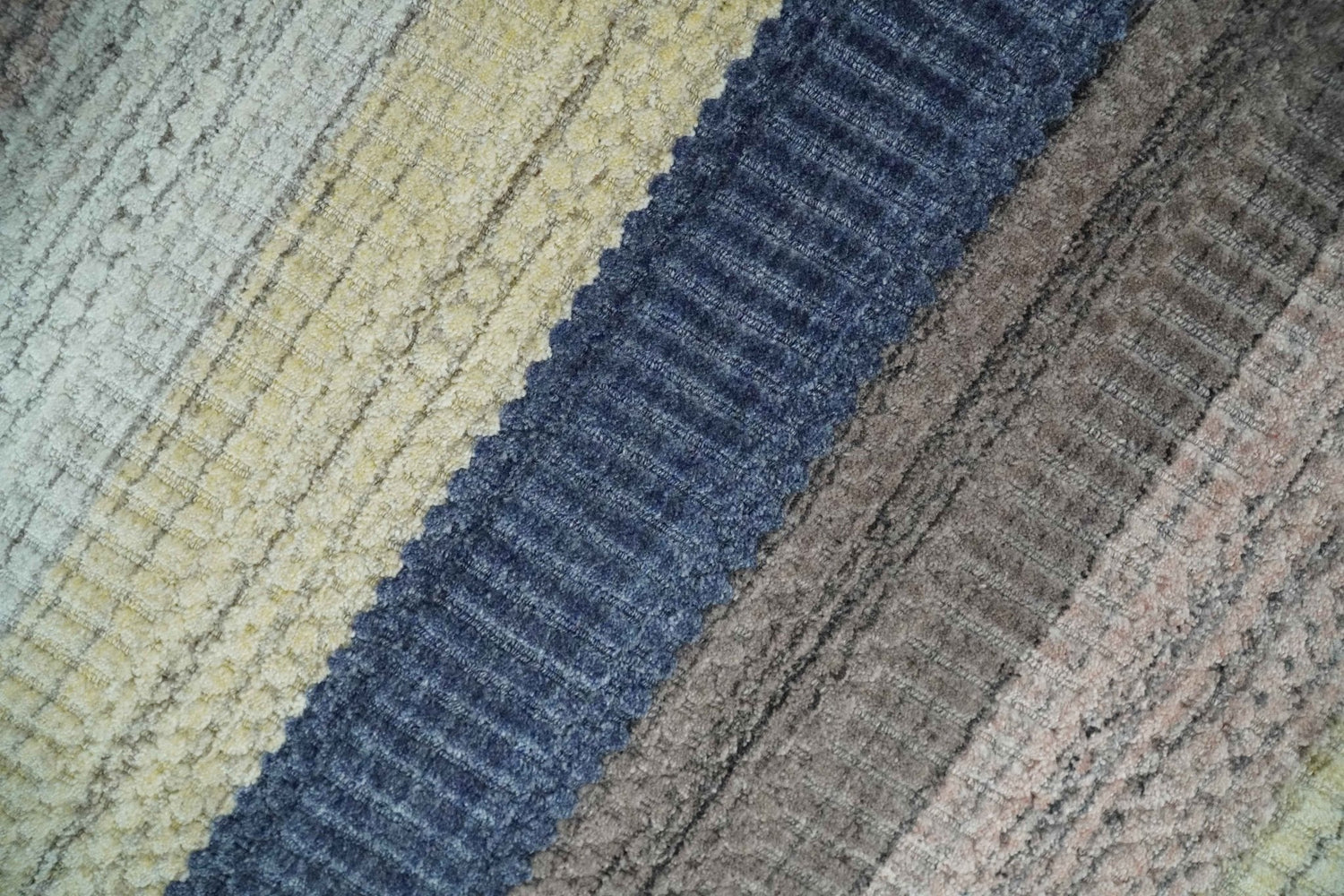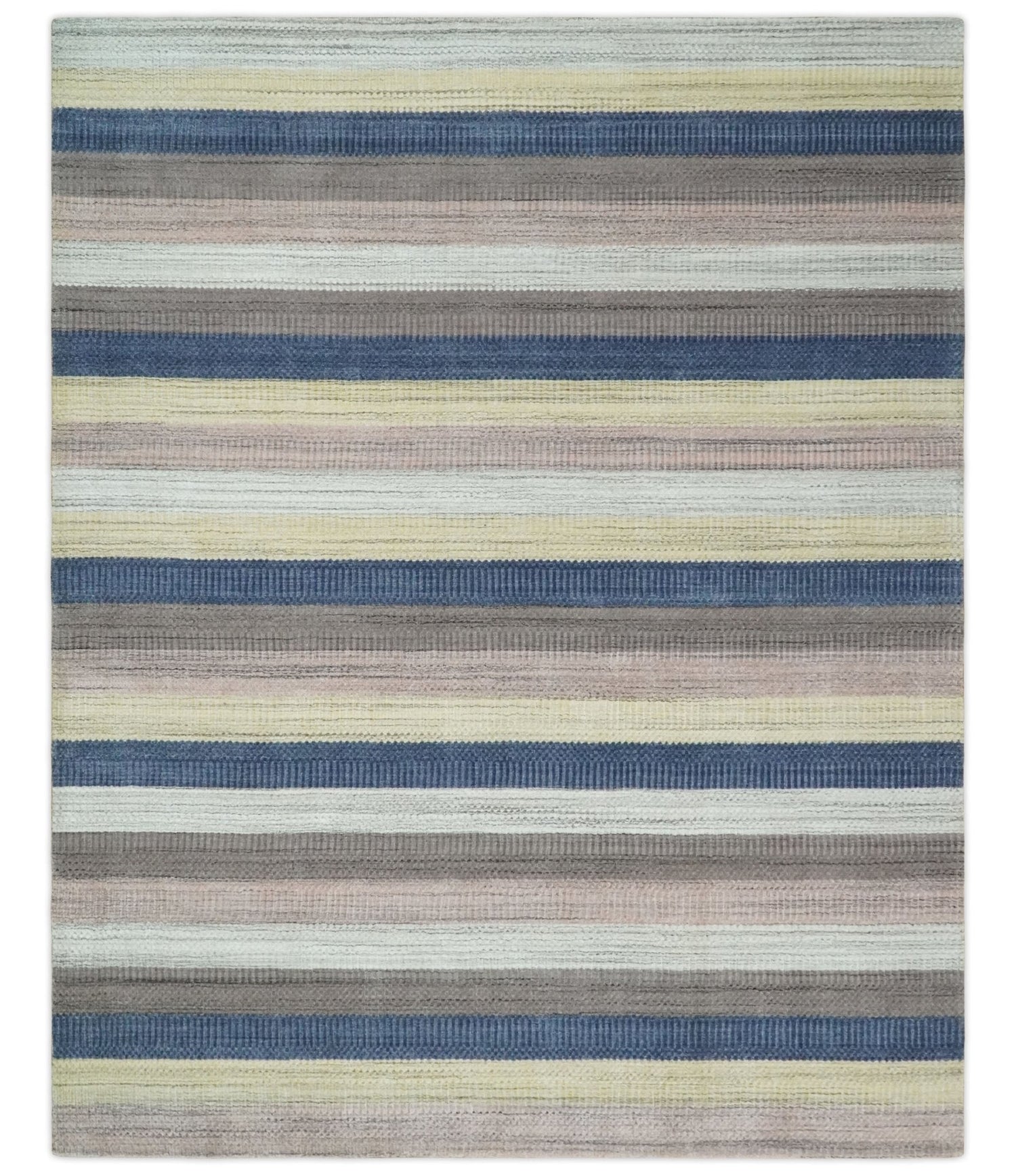 Modern Ombre 8x10 Hand Made Blue, Peach, Brown and Mustard Scandinavian Blended Wool Flatwoven Area Rug | KE39
