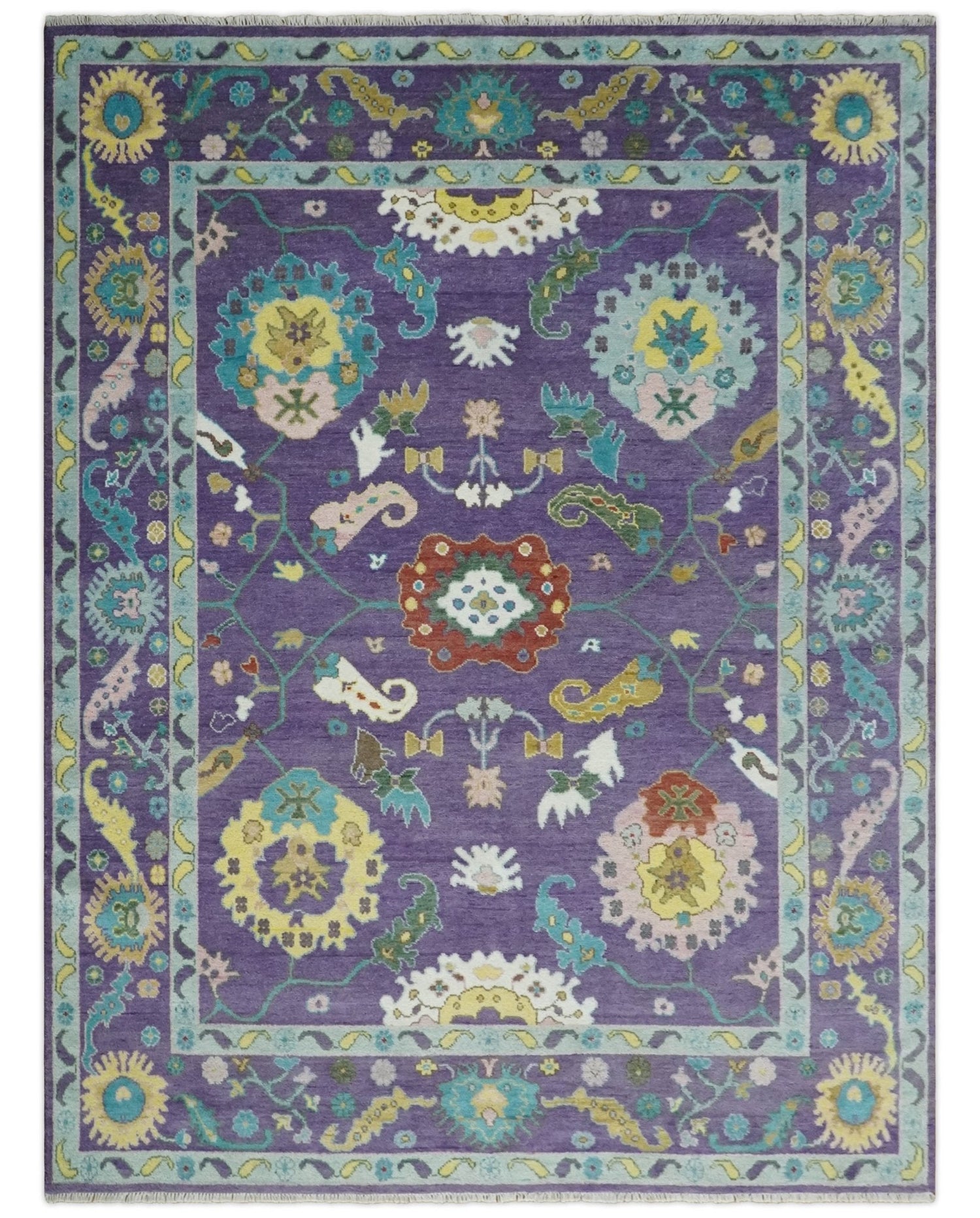 Modern Oushak 9x12 Hand Knotted Persian Purple and Blue Colorful Wool Area Rug | TRDCP850912