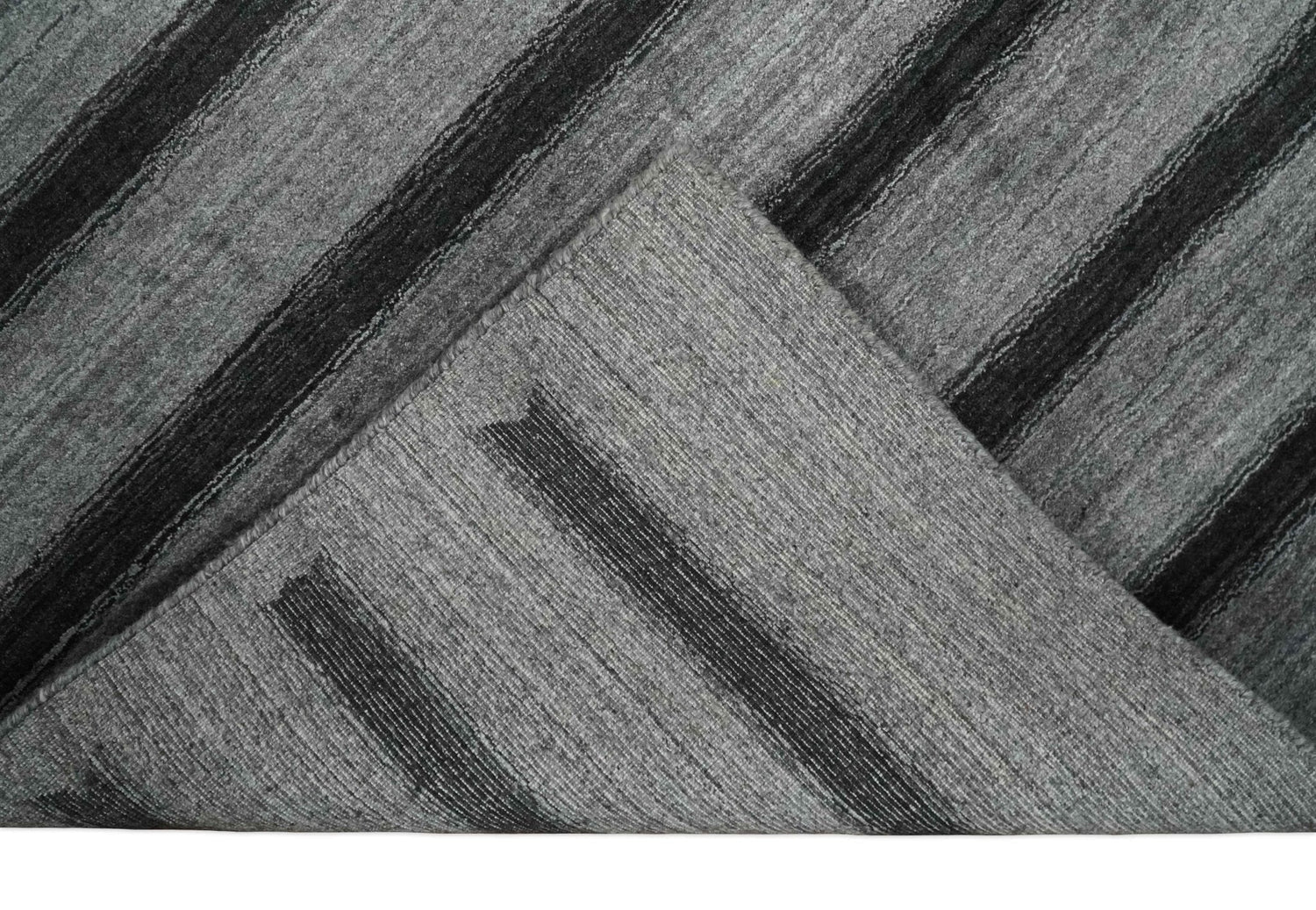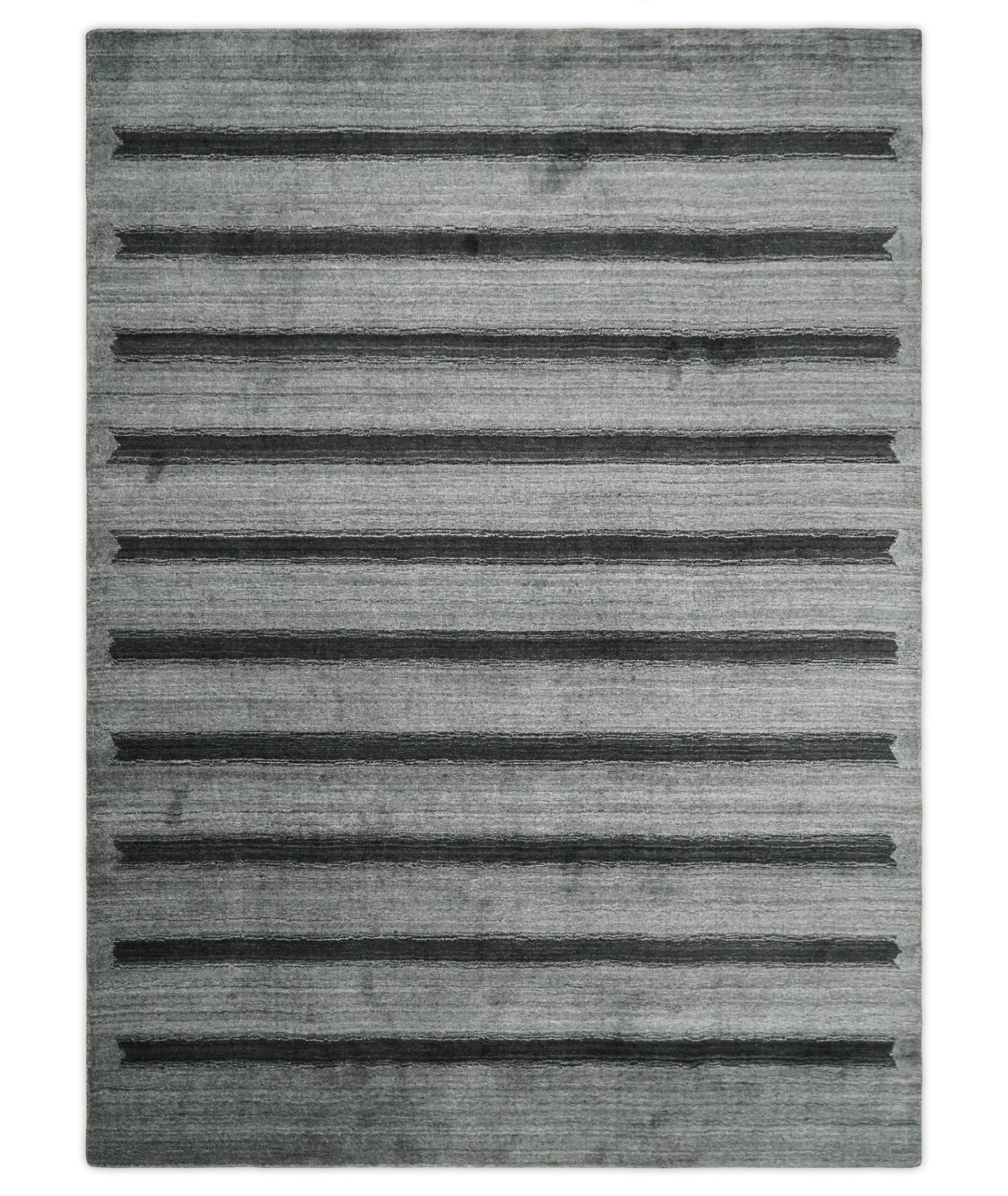 Modern Scandinavian Stripes Style 5x7 Silver and Gray Wool Hand Woven Area Rug | HL11