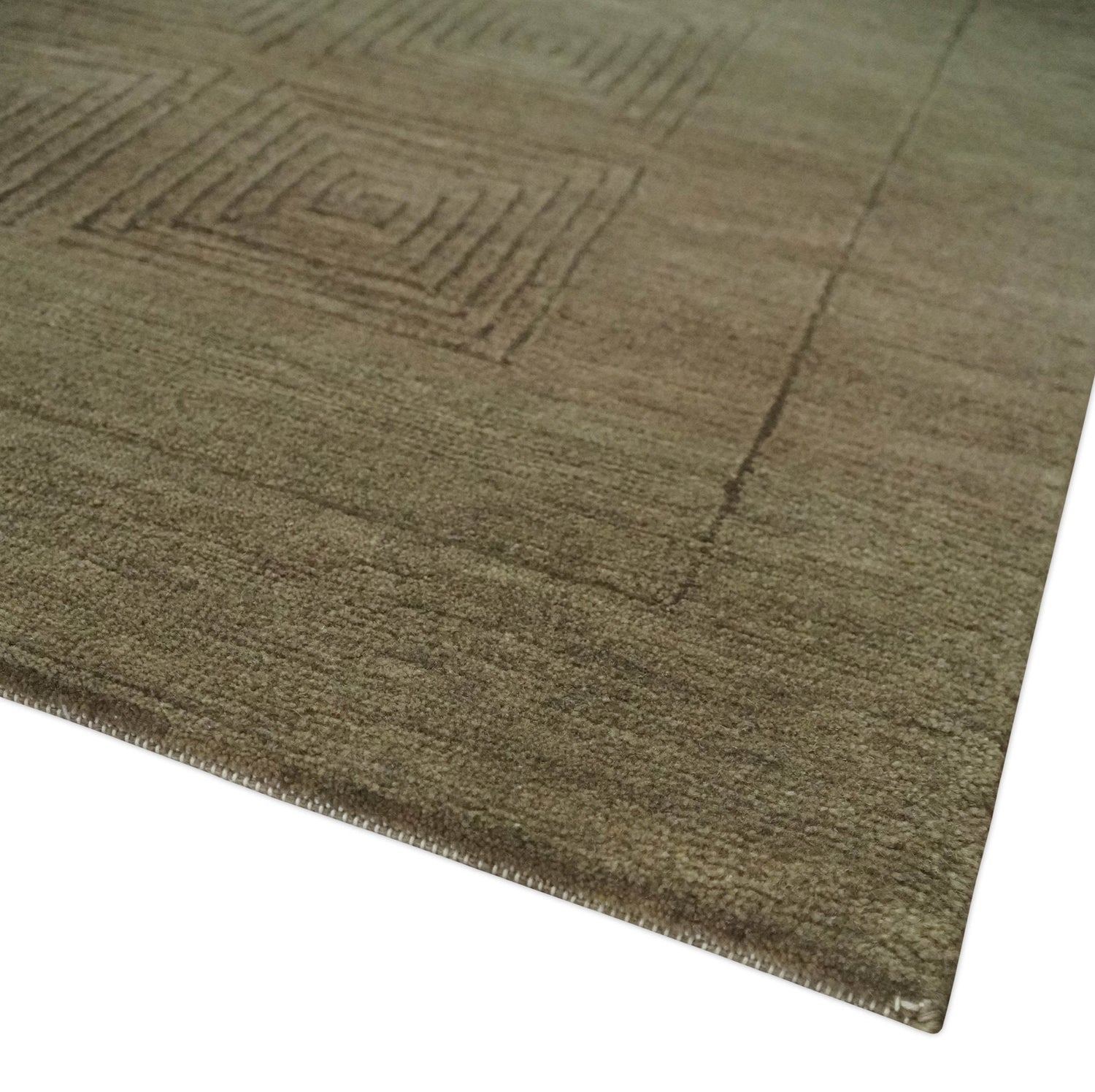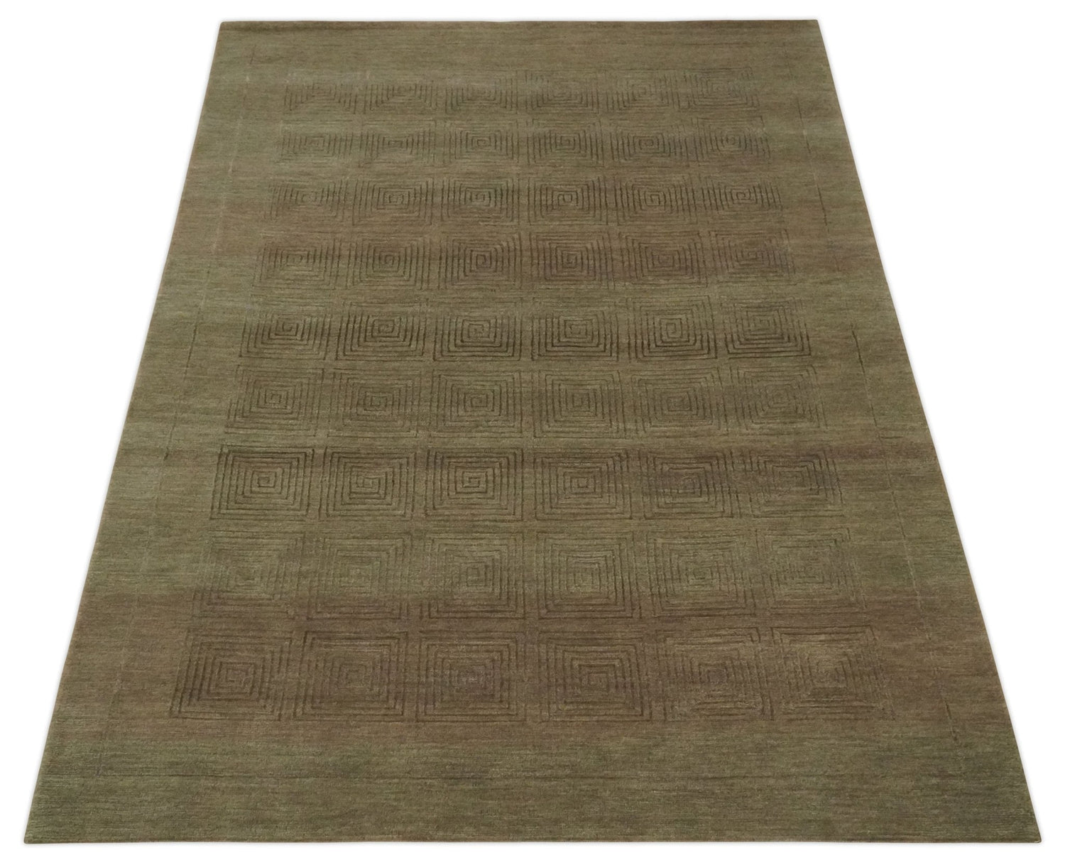 Modern Solid Olive Geometrical Pattern Contemporary Handloom 5x7 wool and Art silk Area Rug