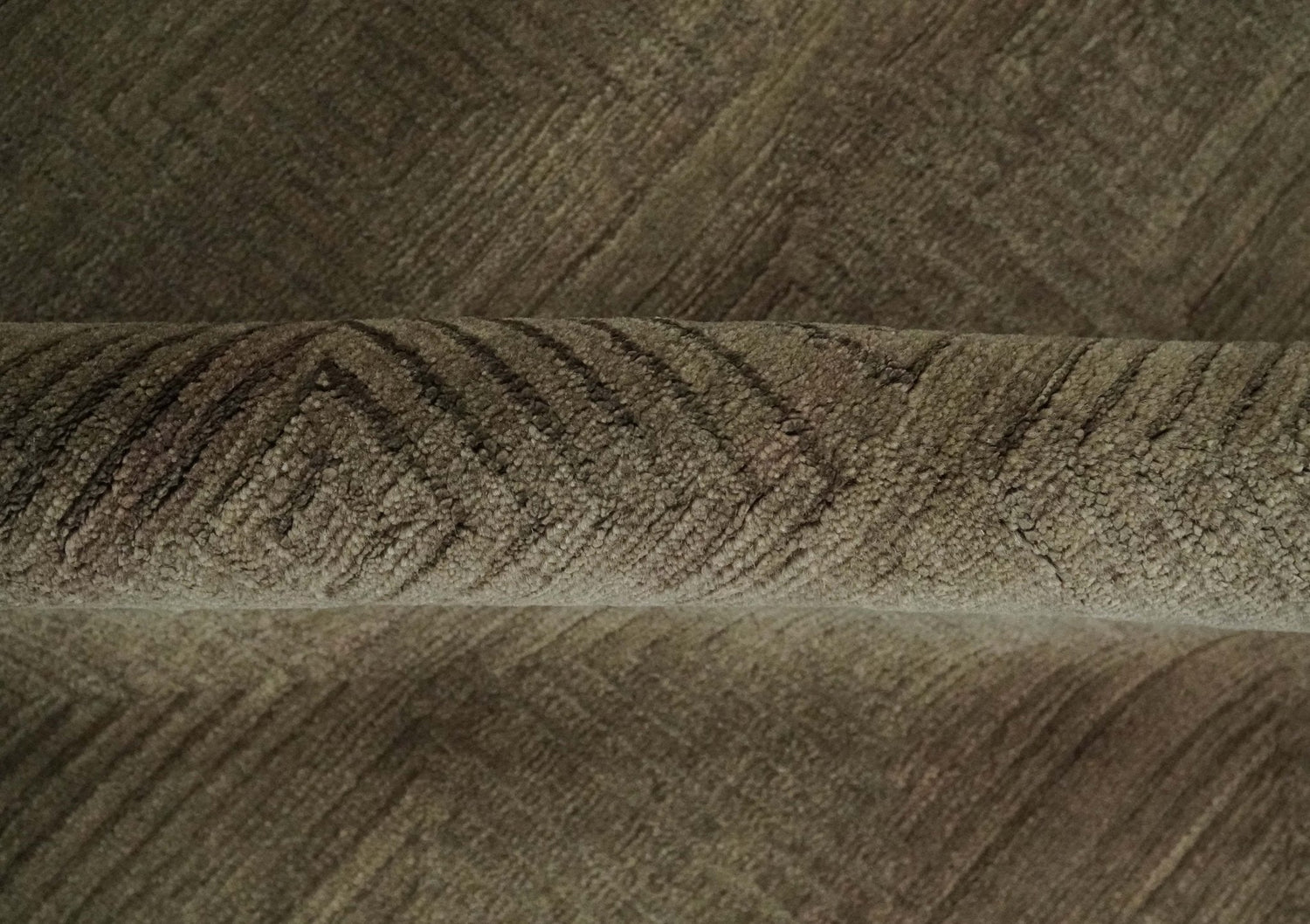 Modern Solid Olive Geometrical Pattern Contemporary Handloom 5x7 wool and Art silk Area Rug - 5x7 is backordered and will ship as soon as it is back in stock.