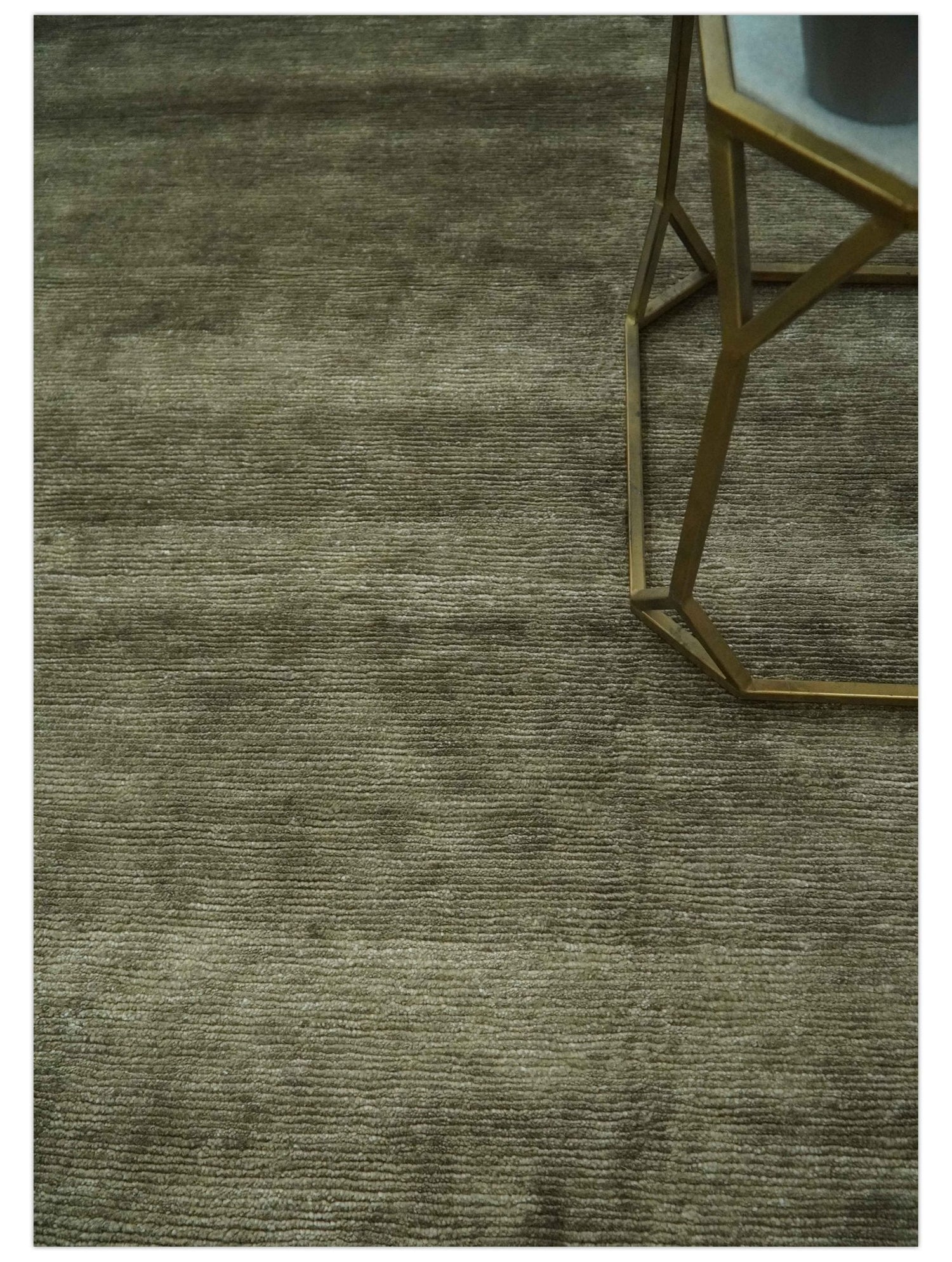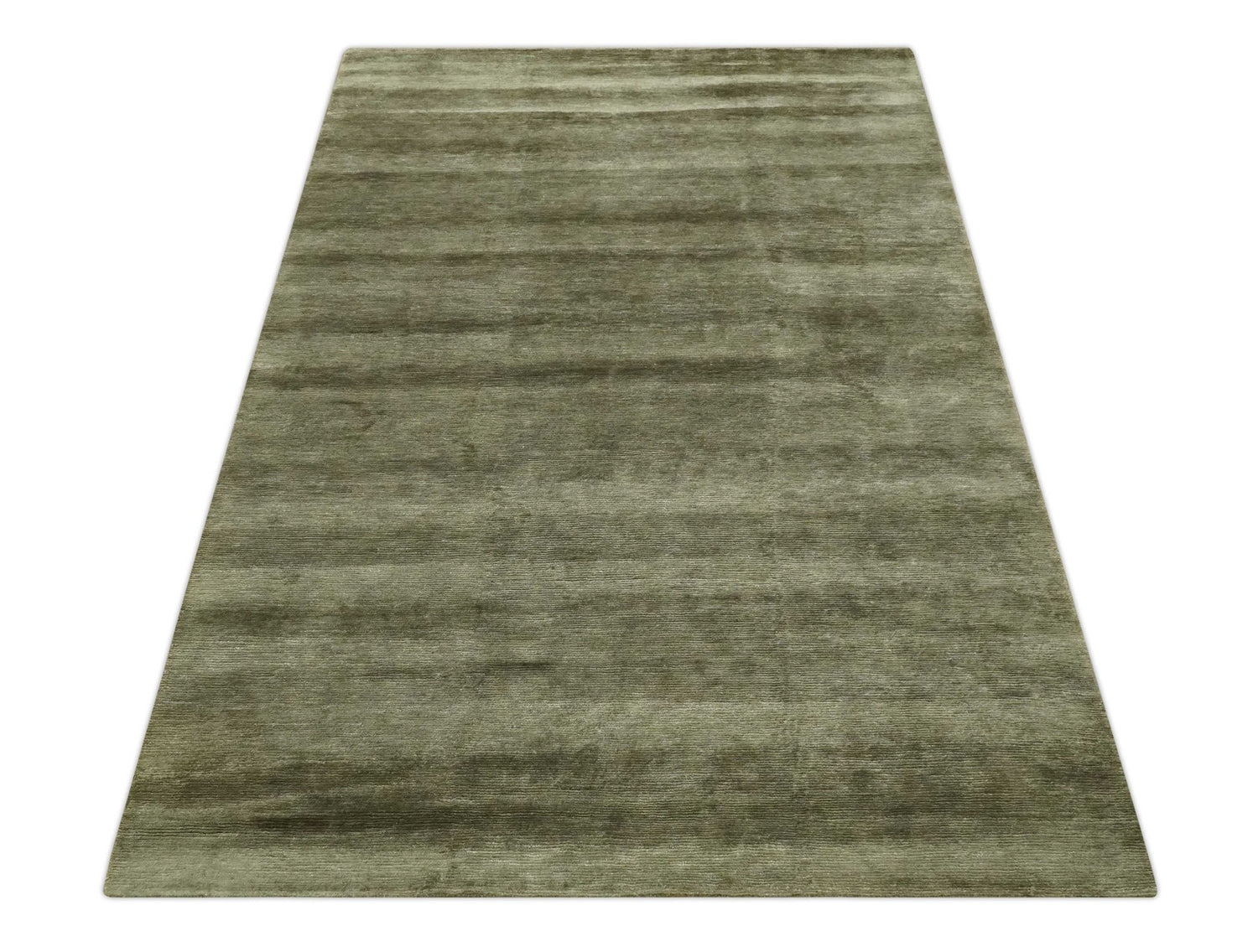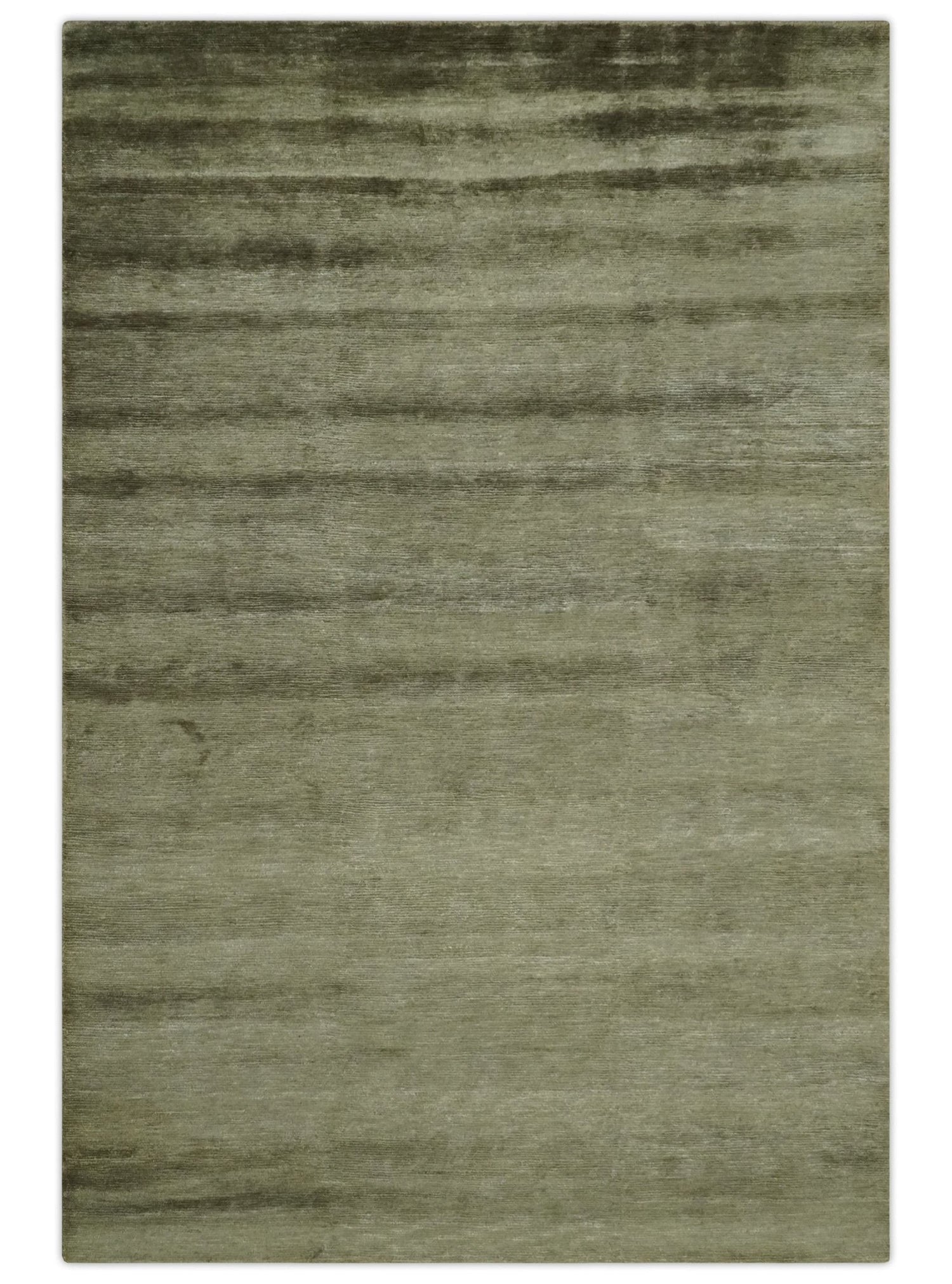 Modern Solid Plain Olive Hand Knotted 6x9 Bamboo Silk area Rug