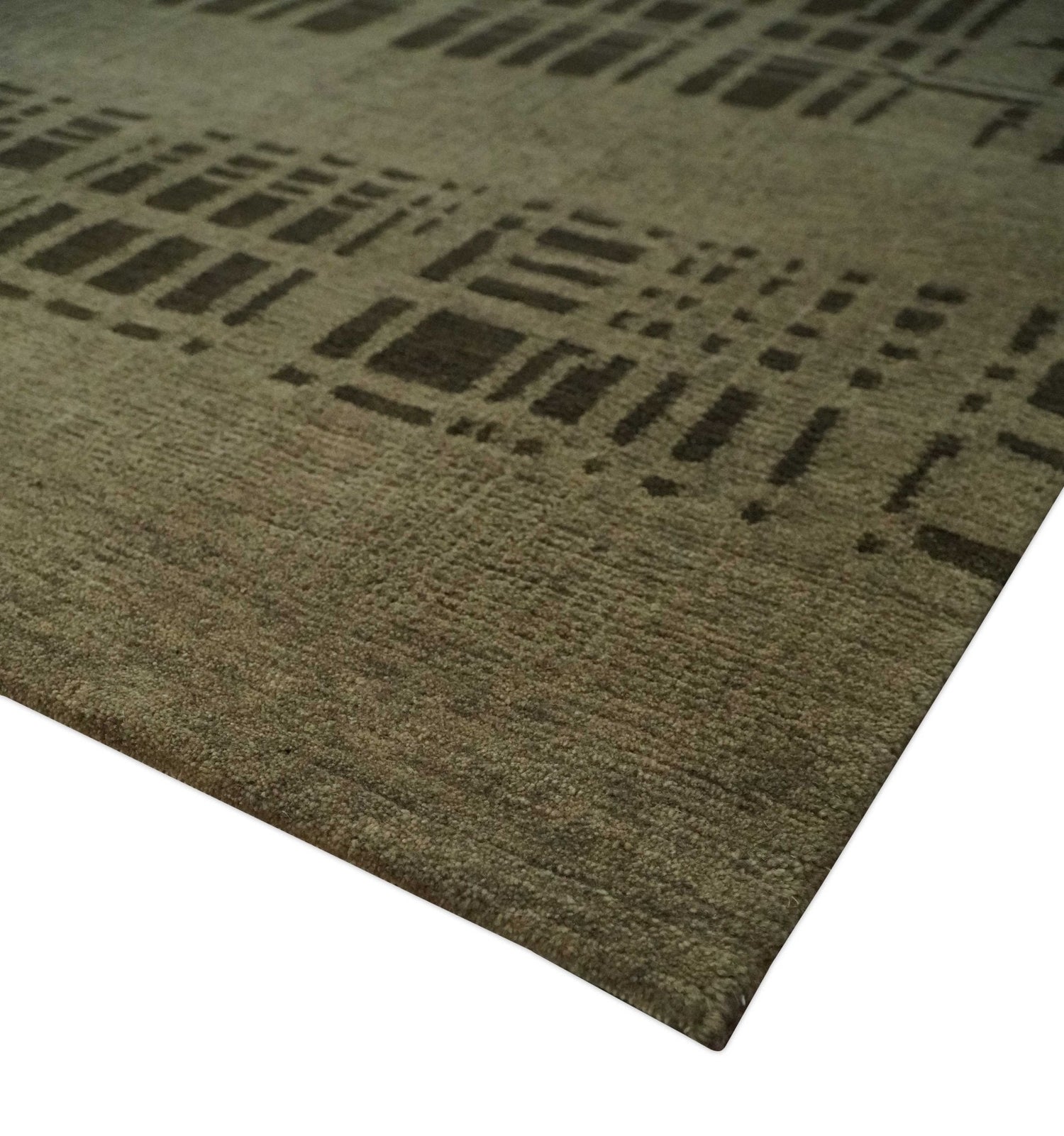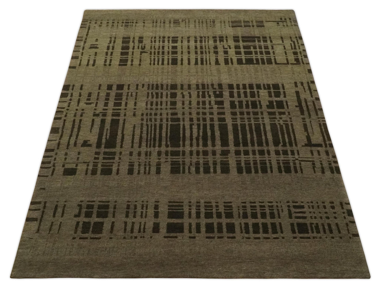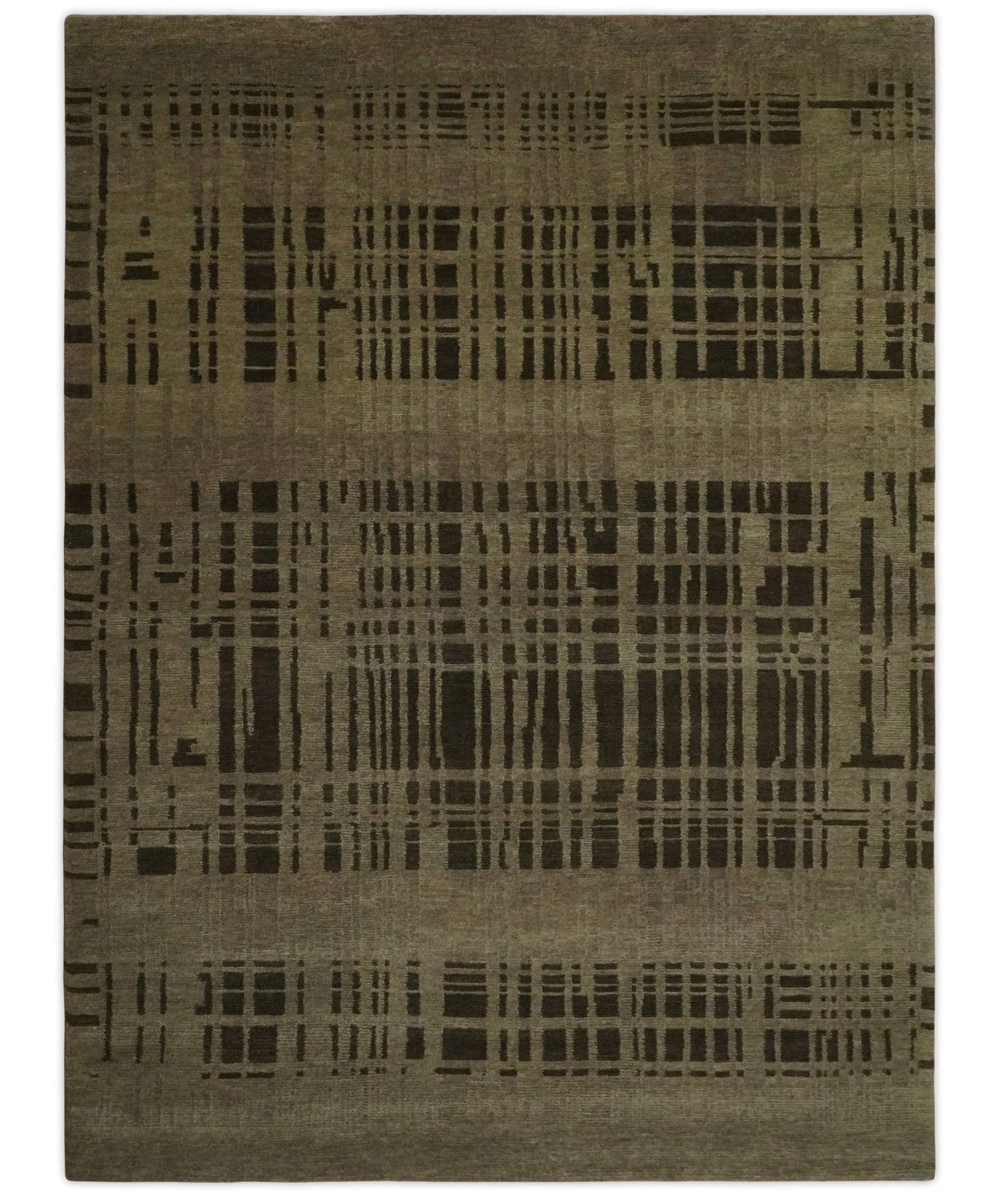 Modern Stripes Design Charcoal and Greenish Brown 6x8 Hand knotted wool area Rug