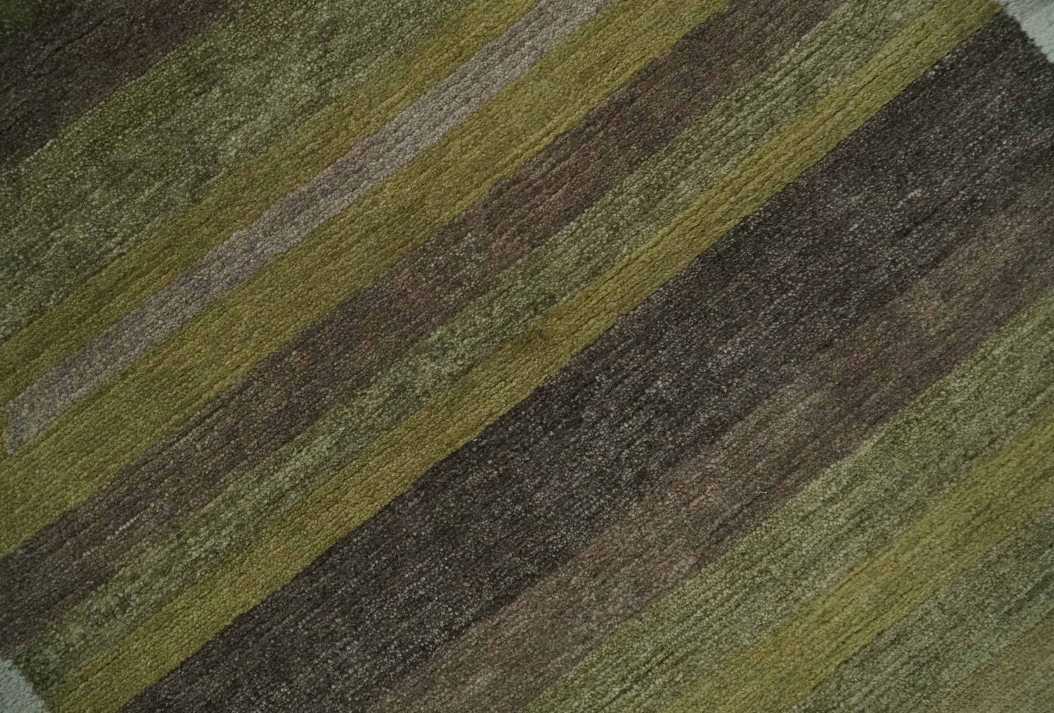 Modern Stripes Design Olive, Charcoal, Ivory and Gray Hand loom 5x7 wool Area Rug