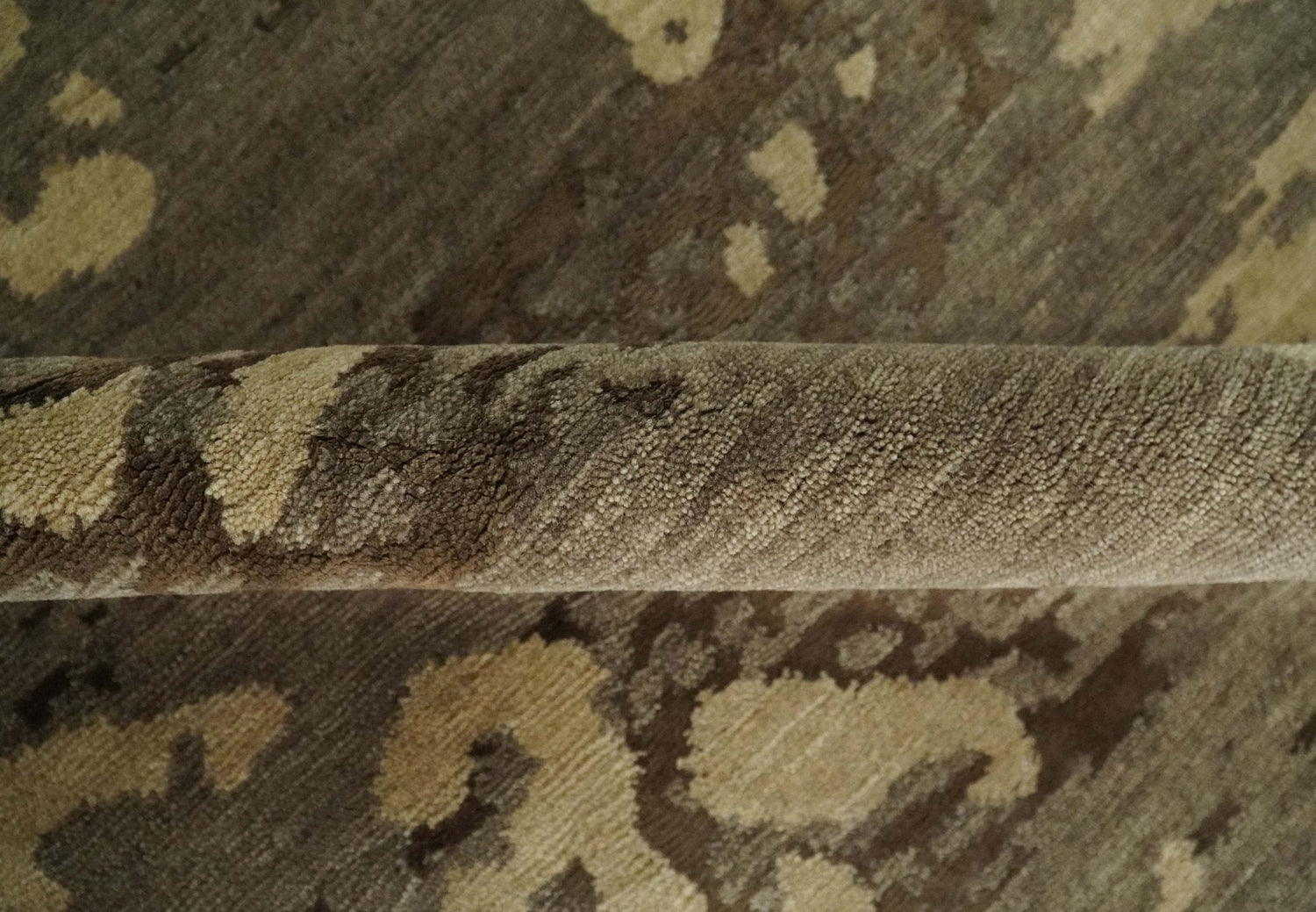 Olive and Brown Modern Abstract 5x8 Hand Knotted Wool and Silk Area Rug