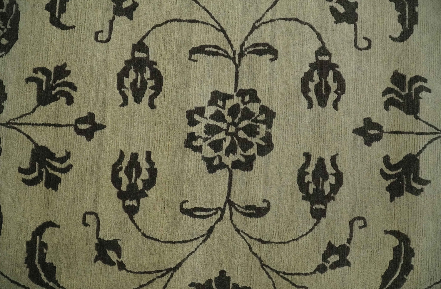 Olive and Dark green Hand Knotted 4x6 Floral Wool and Silk Area Rug - 4x6 is backordered and will ship as soon as it is back in stock.