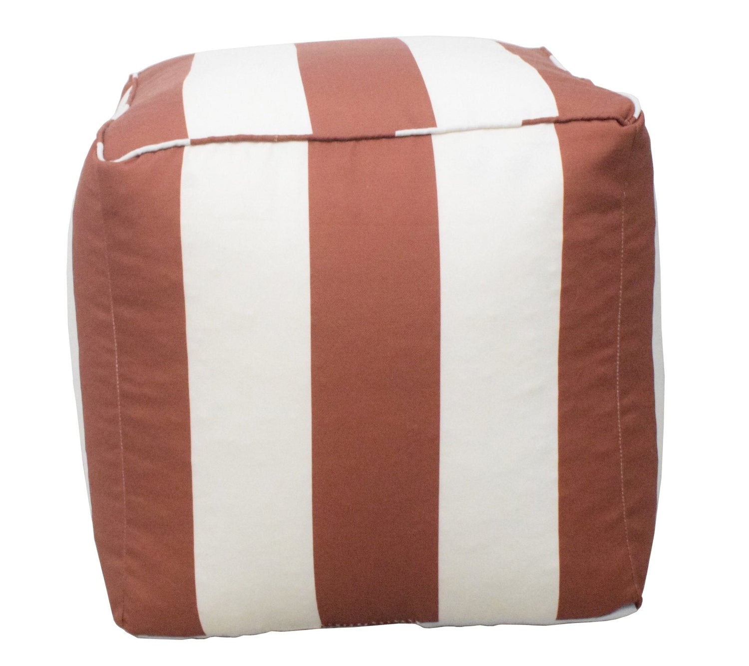 Outdoor Safe Terracotta Nautical Stripes Ottoman Pouf