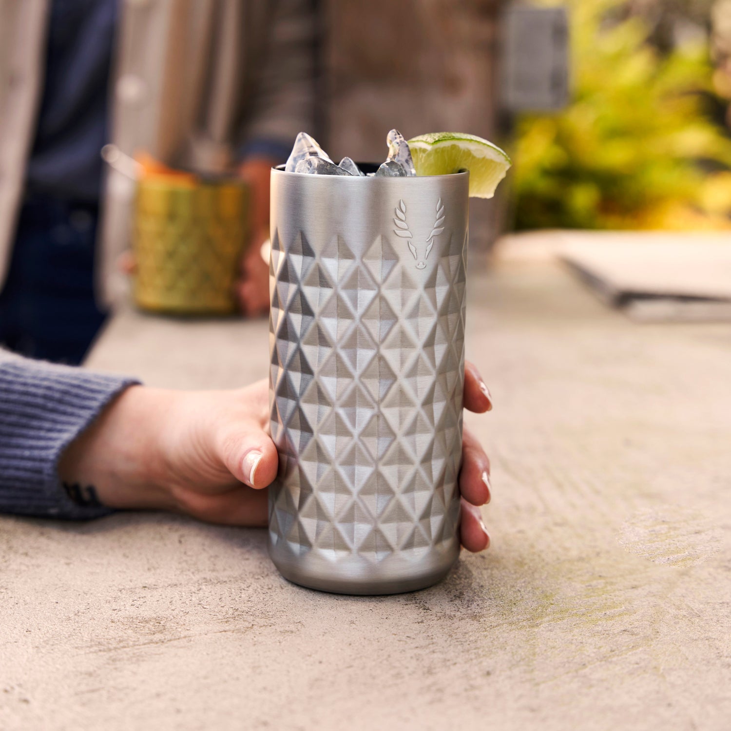 This double-walled stainless steel Highball Tumbler maintains your drink’s temperature without sacrificing your sipping experience. The TrueTaste ceramic coating inside protects your craft cocktails from developing a metallic aftertaste when you're sipping al fresco, while the thin rim and faceted design elevate this insulated drinkware.