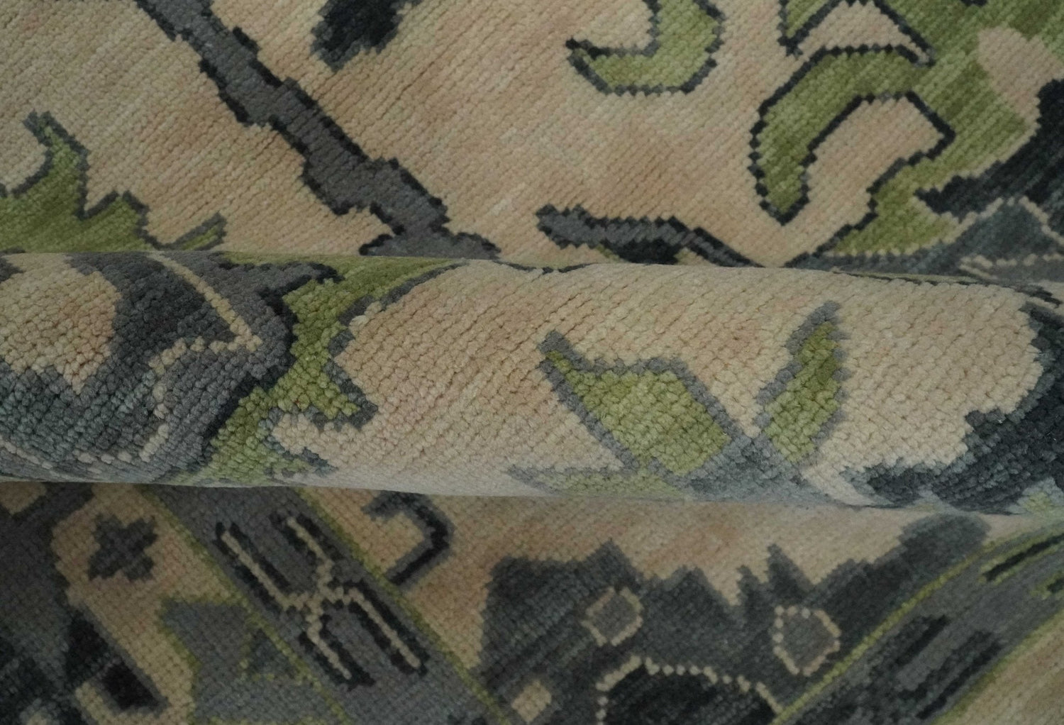 Peach, Charcoal and Green Hand knotted 8x10 and 9x12 Oushak Traditional Wool Area Rug