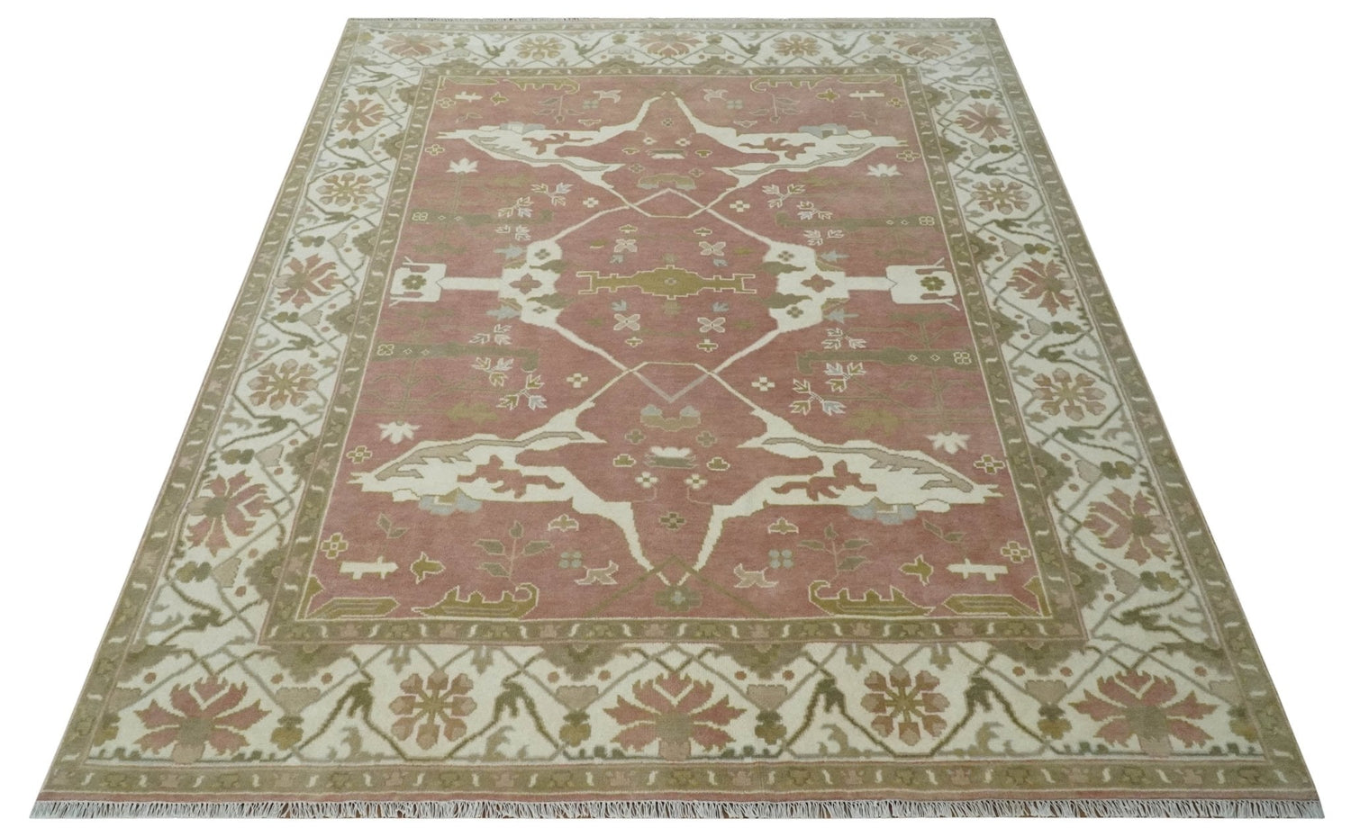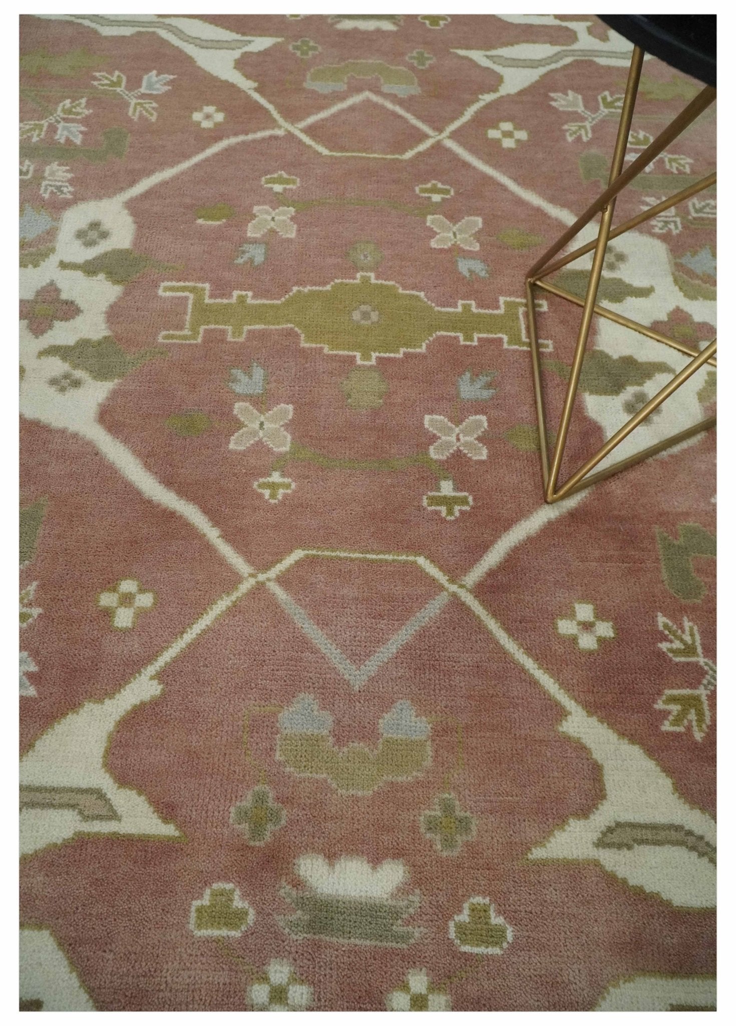 Peach, Ivory and Olive Hand knotted 8x10 and 9x12 Oriental Oushak Traditional Wool Area Rug, Kids, Living Room and Bedroom Rug - 8x10 is backordered and will ship as soon as it is back in stock.