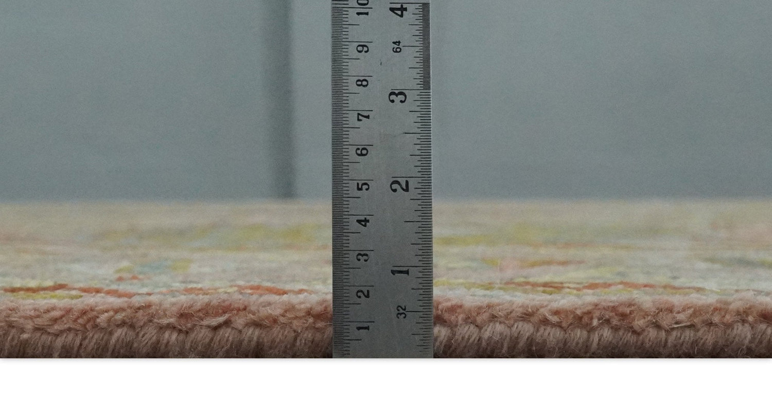 Peach, Mustard, Brown and Gray Oriental Hand Knotted 8x10 and 9x12 Wool Area Rug - 9x12 is backordered and will ship as soon as it is back in stock.