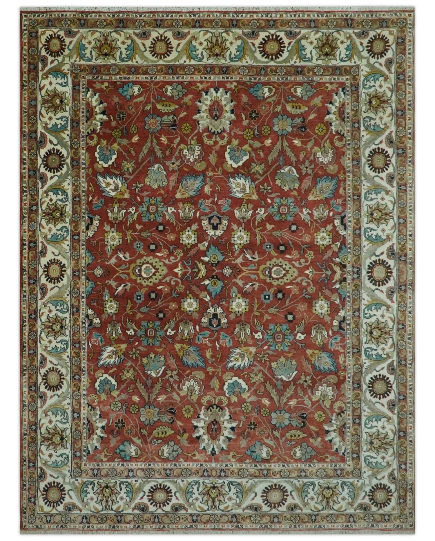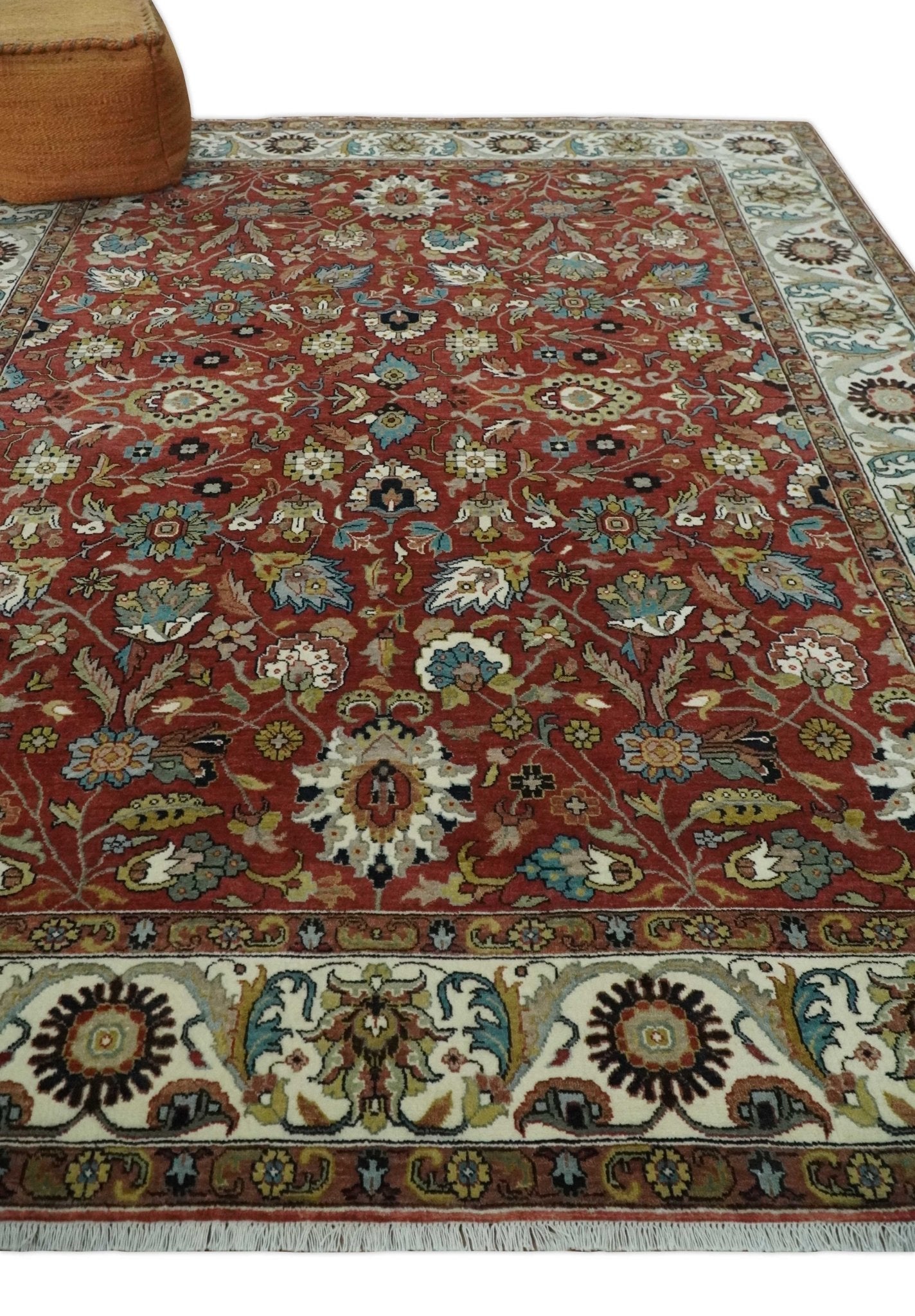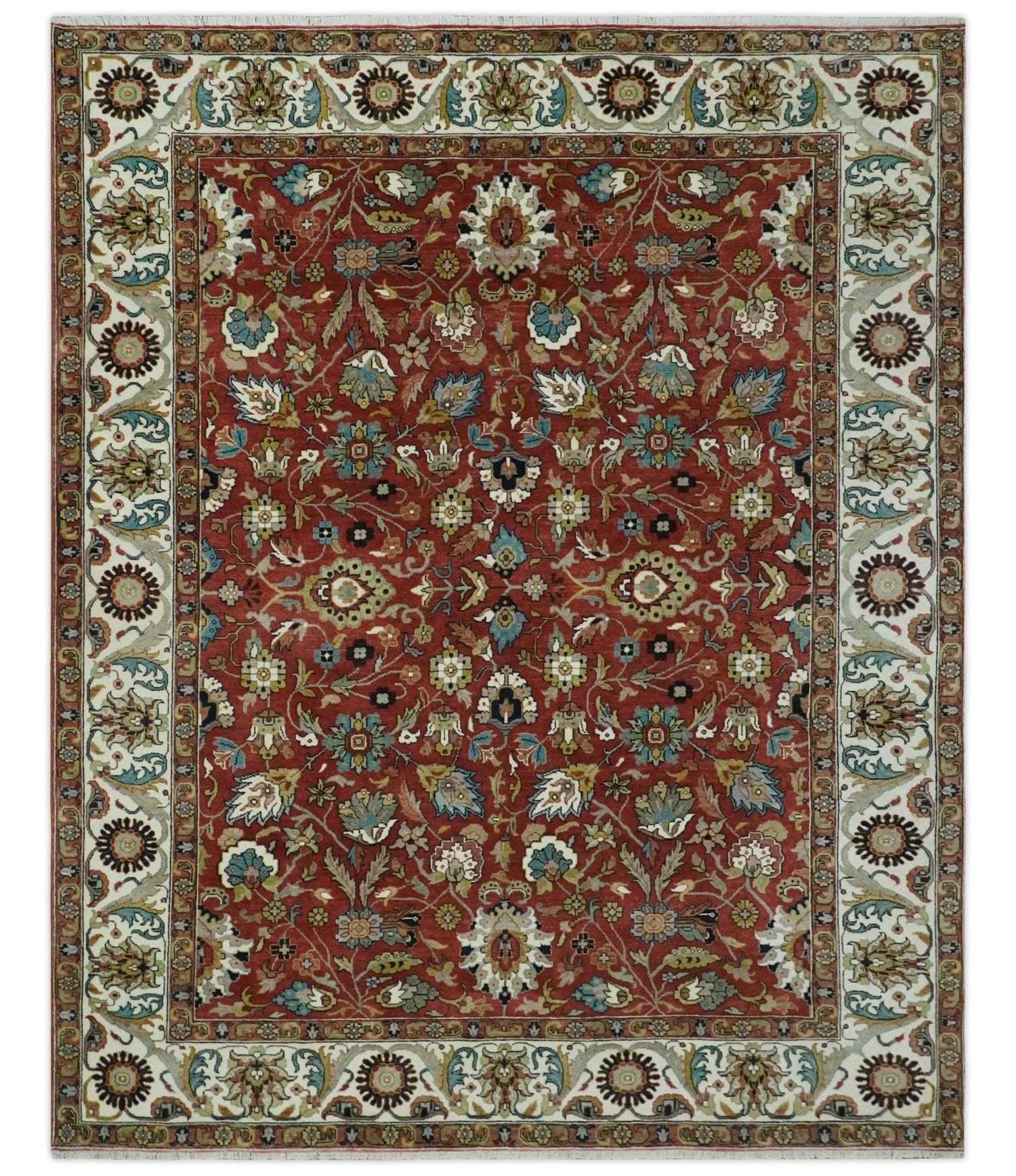 Premium Brown and Ivory 8x10 Hand knotted Traditional Floral Wool Area Rug