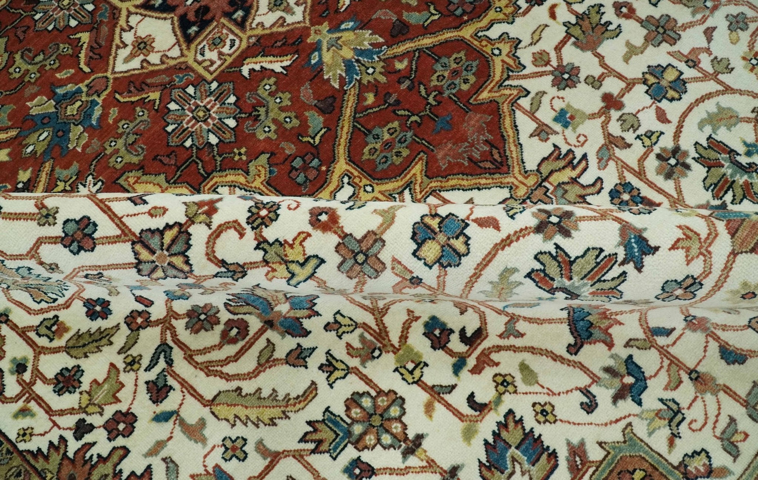 Premium Fine Floral Ivory and Rust Traditional Heriz 9x12 Hand Knotted wool area rug - 8x10 is backordered and will ship as soon as it is back in stock.