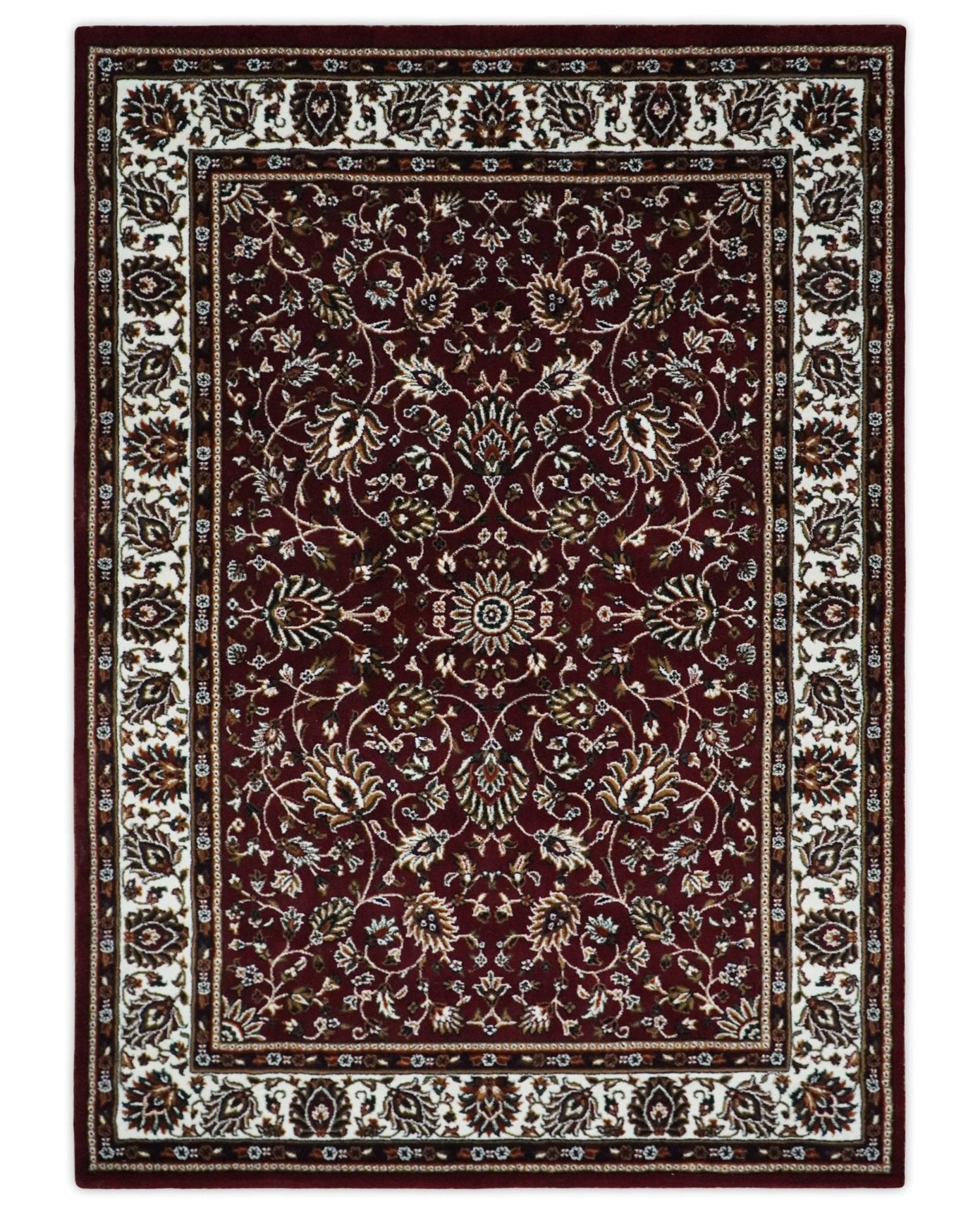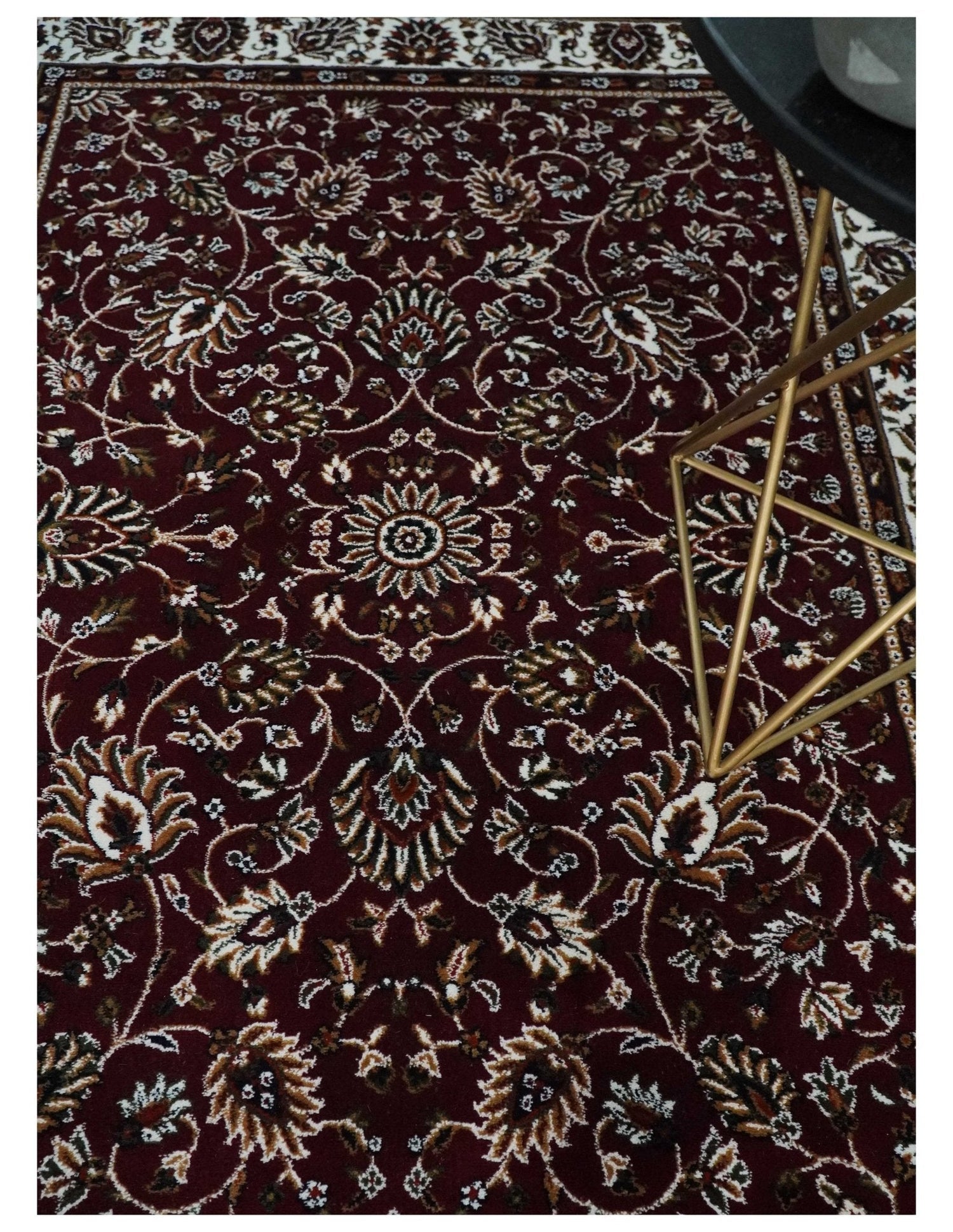 Premium Look 5x7 Woven Maroon and Ivory Traditional Pattern Area Rug