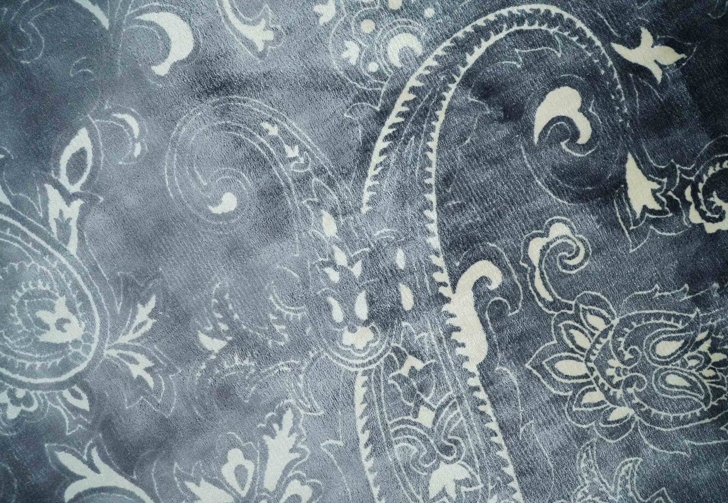 Premium look Charcoal, Ivory and Silver Hand loom Traditional Boteh Design Wool and Viscose Area Rug