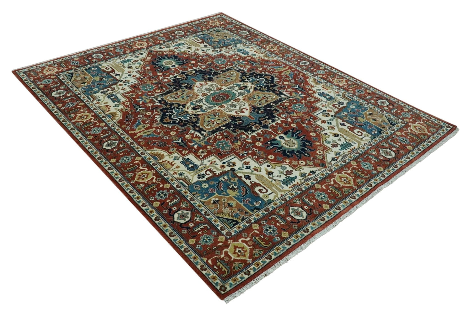 Premium look Fine Hand Knotted Rust, Ivory and Beige Traditional Heriz 8x10 wool rug