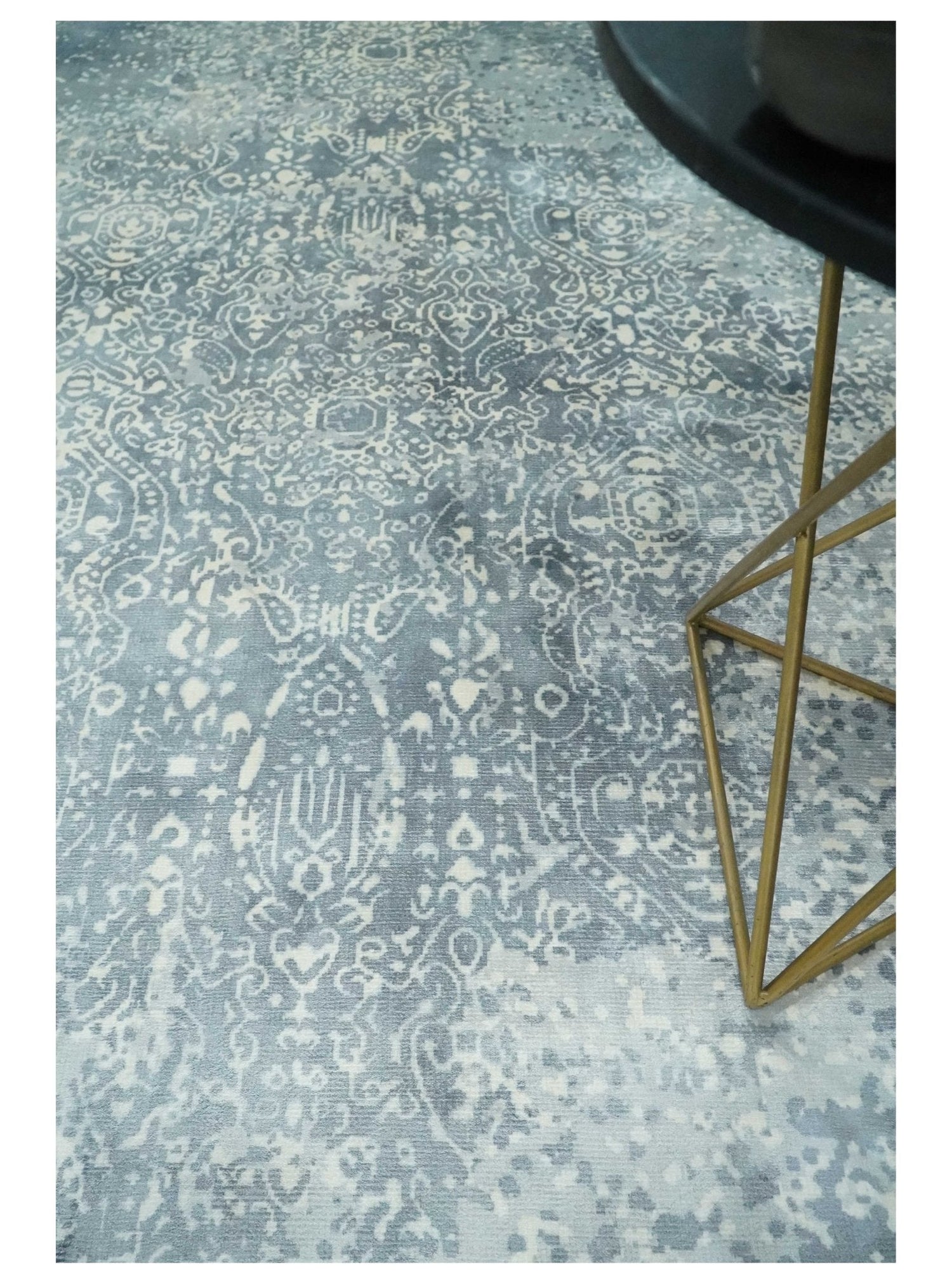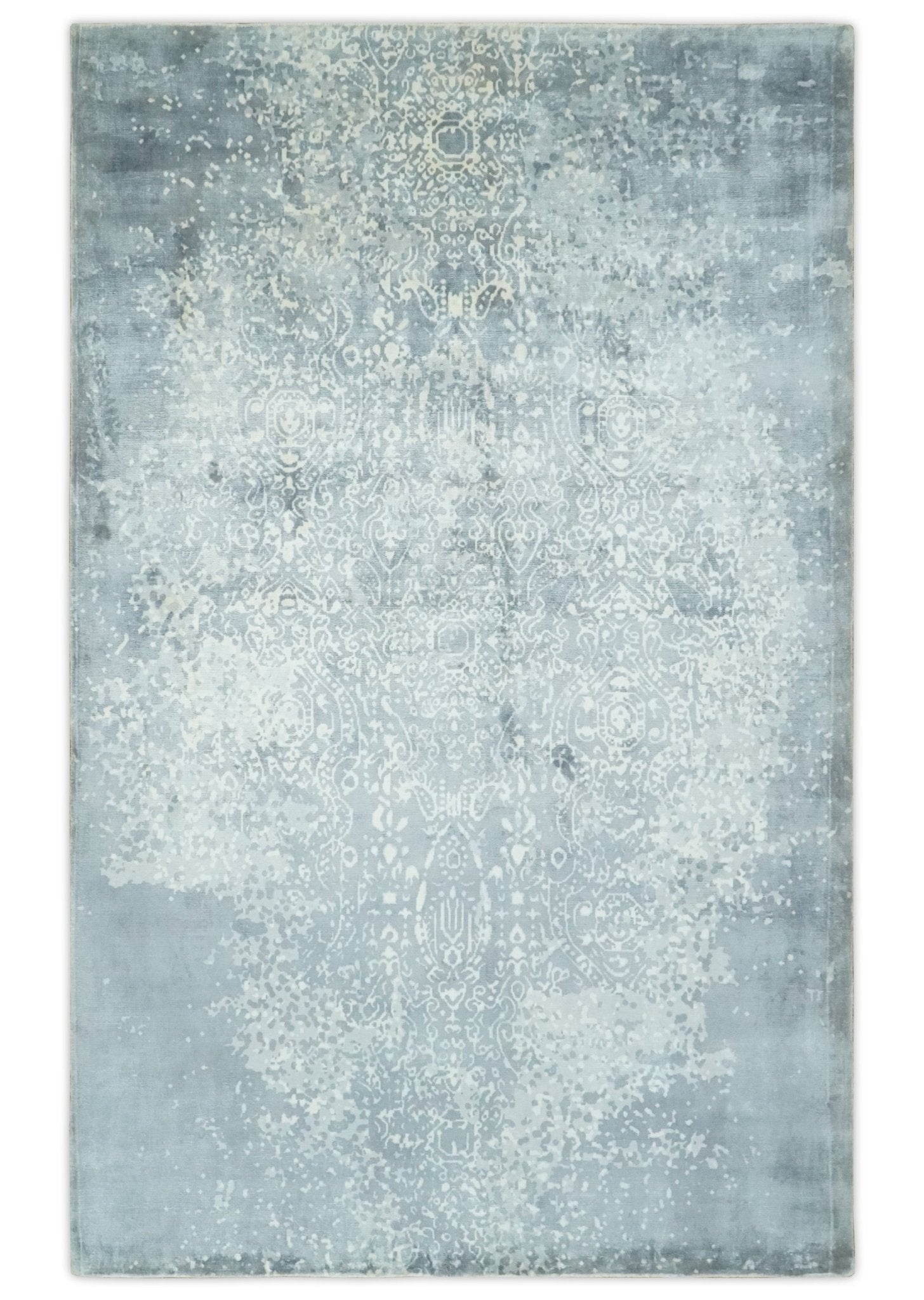 Premium Style Silver and Gray Traditional Medallion 5x8 Hand loom Viscose Area Rug