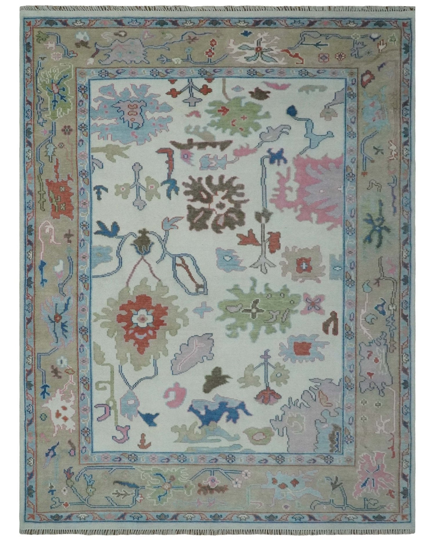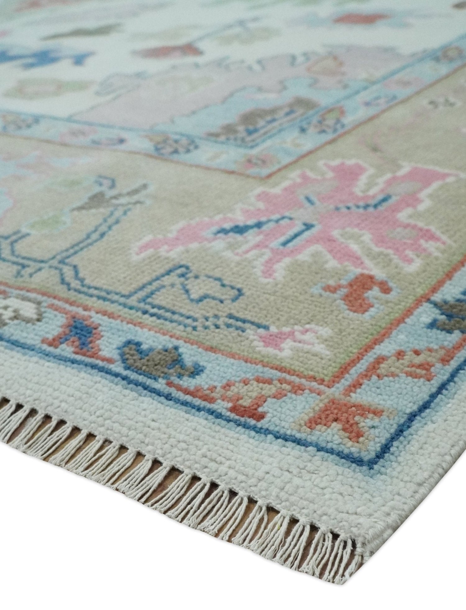 Ready to Ship 9x12 Ivory and Camel Hand Knotted Vibrant Colorful Traditional Oushak Wool Area Rug