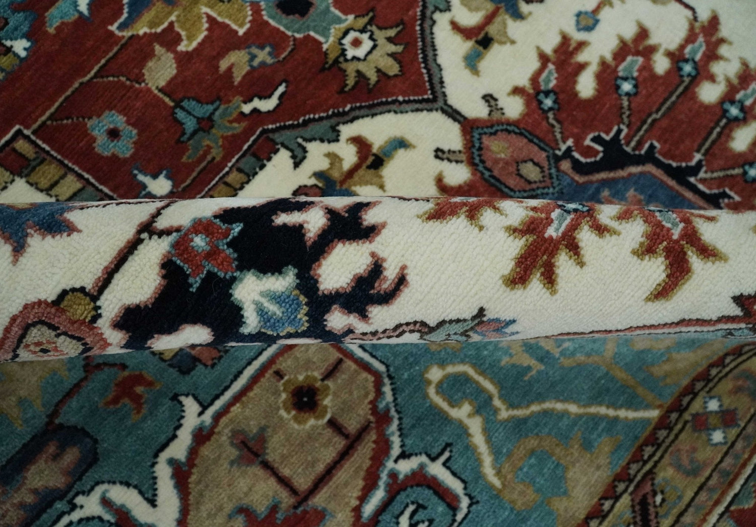 Ready to Ship Blue, Rust and Ivory 8x10 Hand knotted Traditional Wool Area Rug - 8x10 is backordered and will ship as soon as it is back in stock.