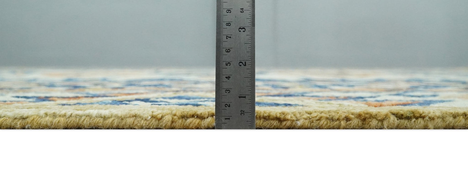 Ready To Ship Bohemian Southwestern Hand Tufted Blue, Gold and Beige Wool Rug - 1x1 is backordered and will ship as soon as it is back in stock.