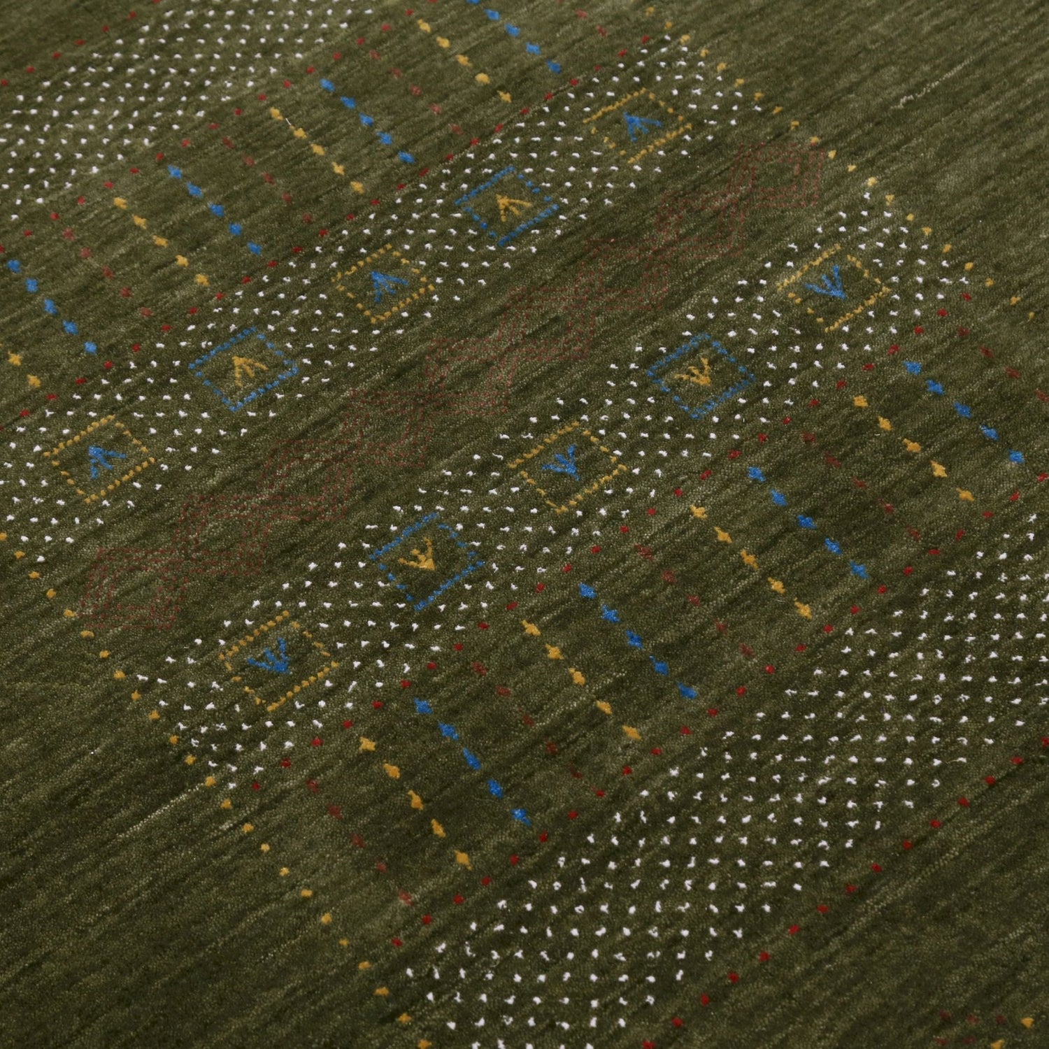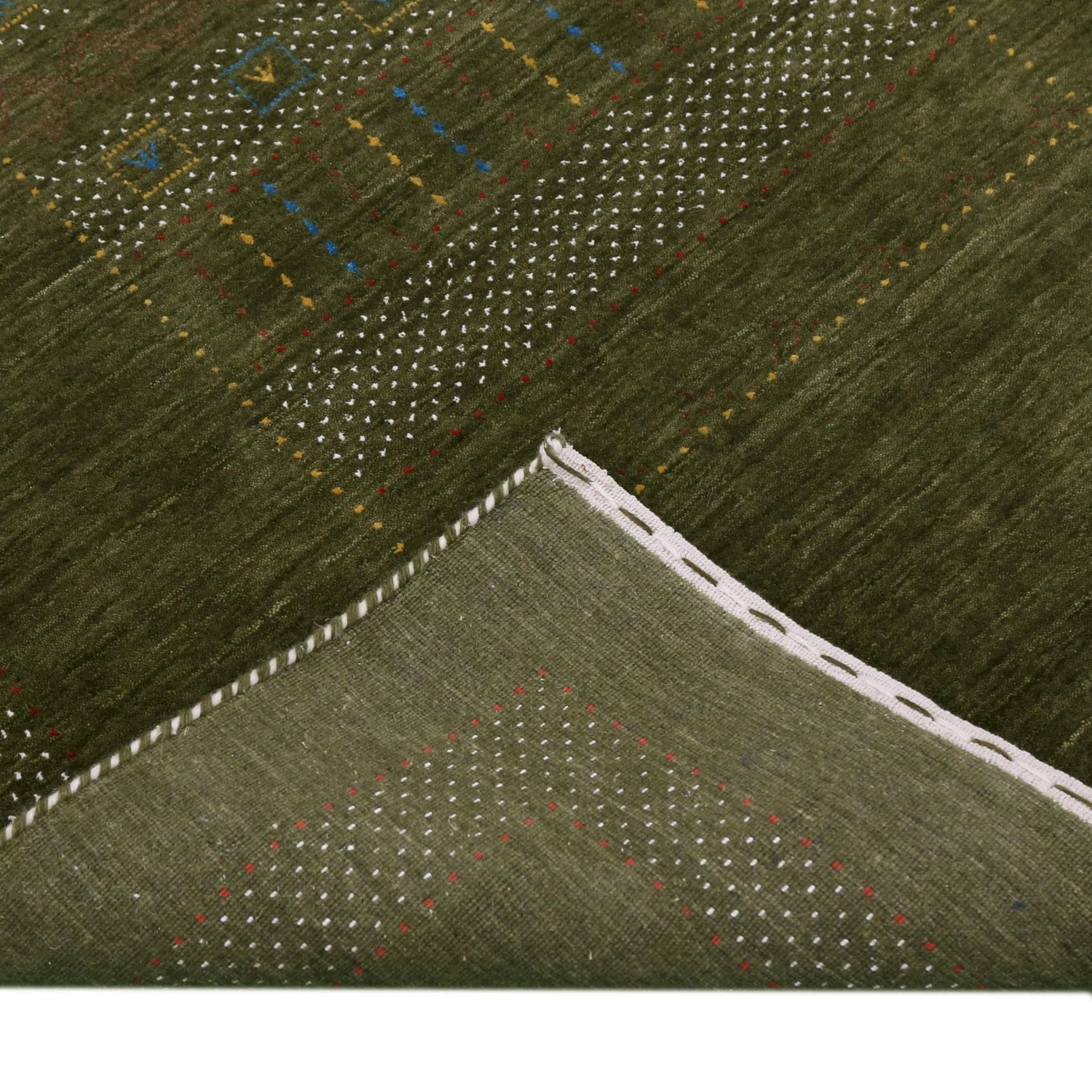 Ready to Ship Gabbeh Design Hand Loomed Green Wool Area Rug