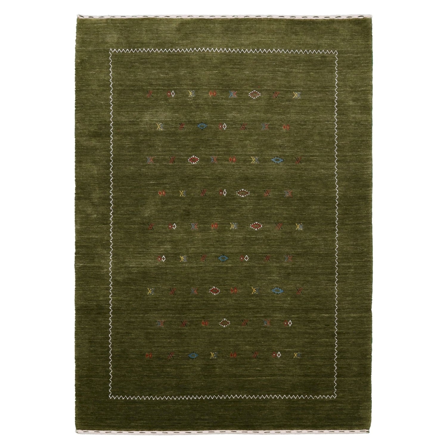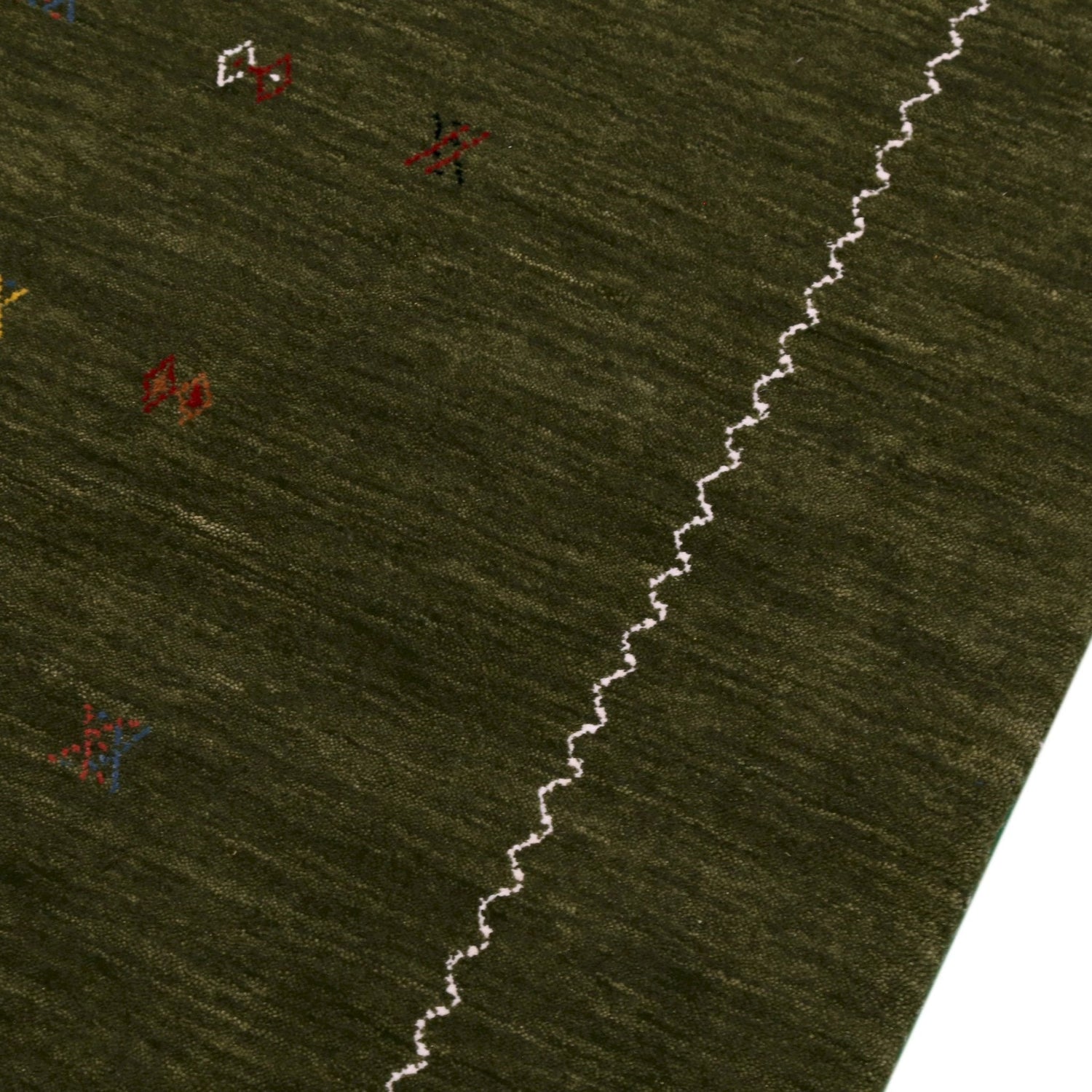 Ready to Ship Green Modern Design Hand Loomed Wool Area Rug