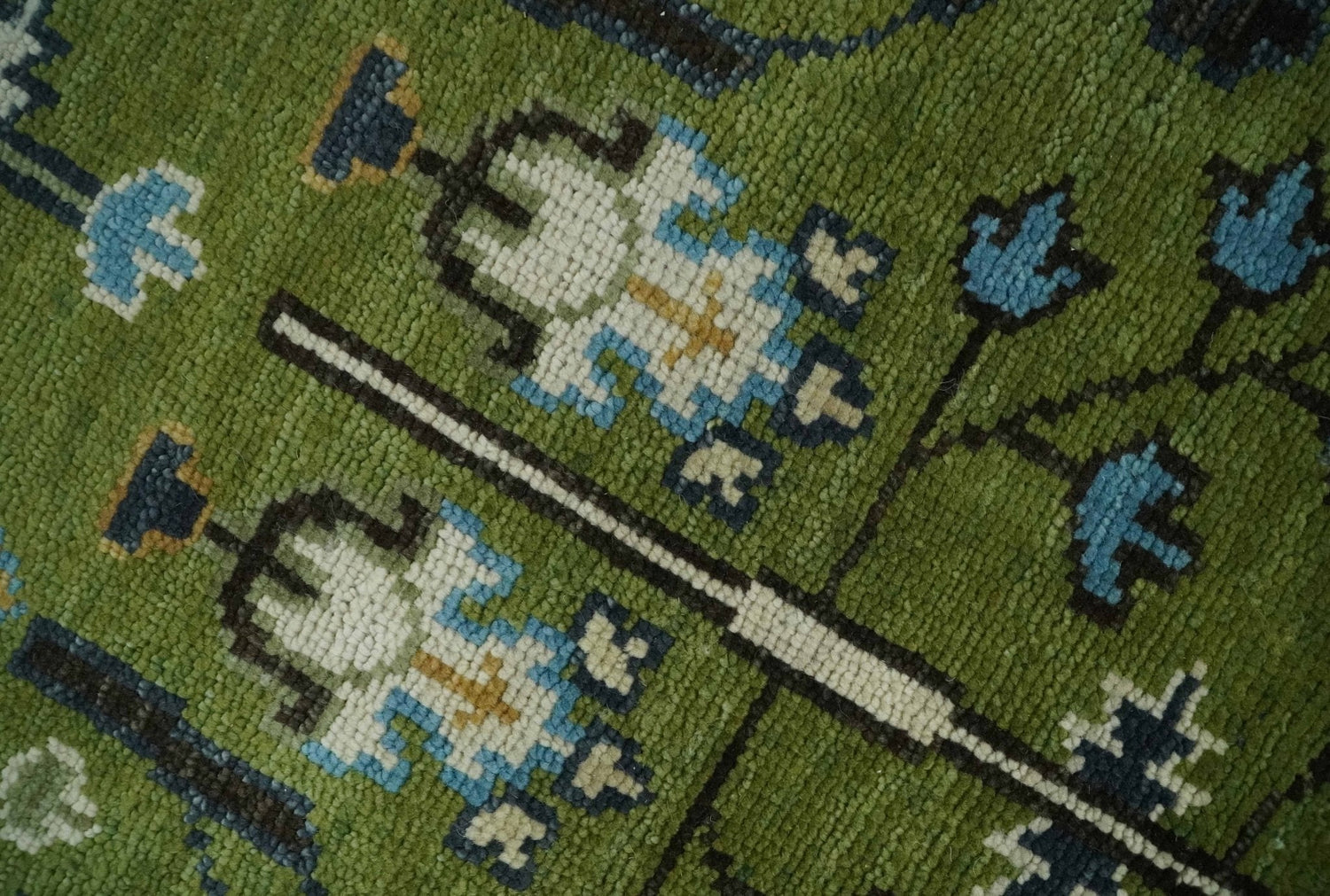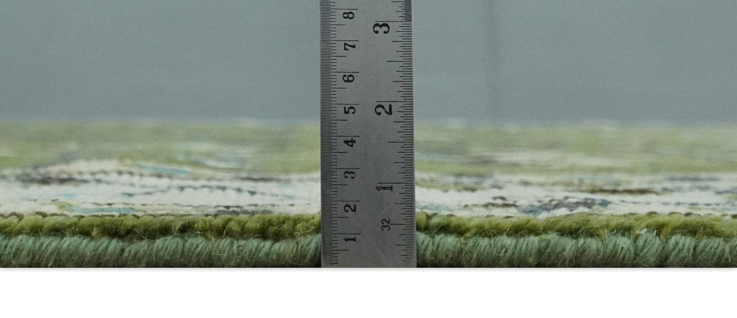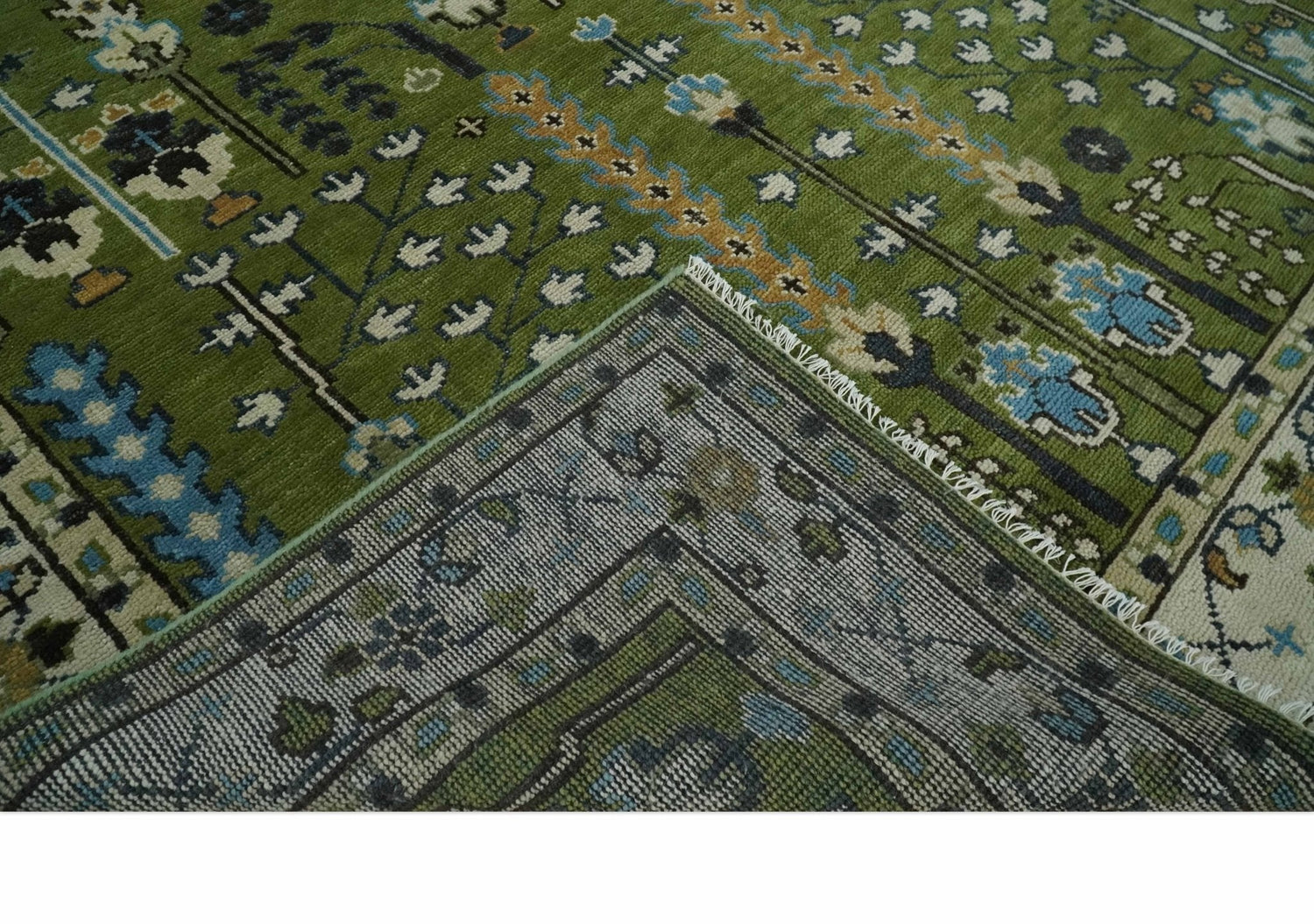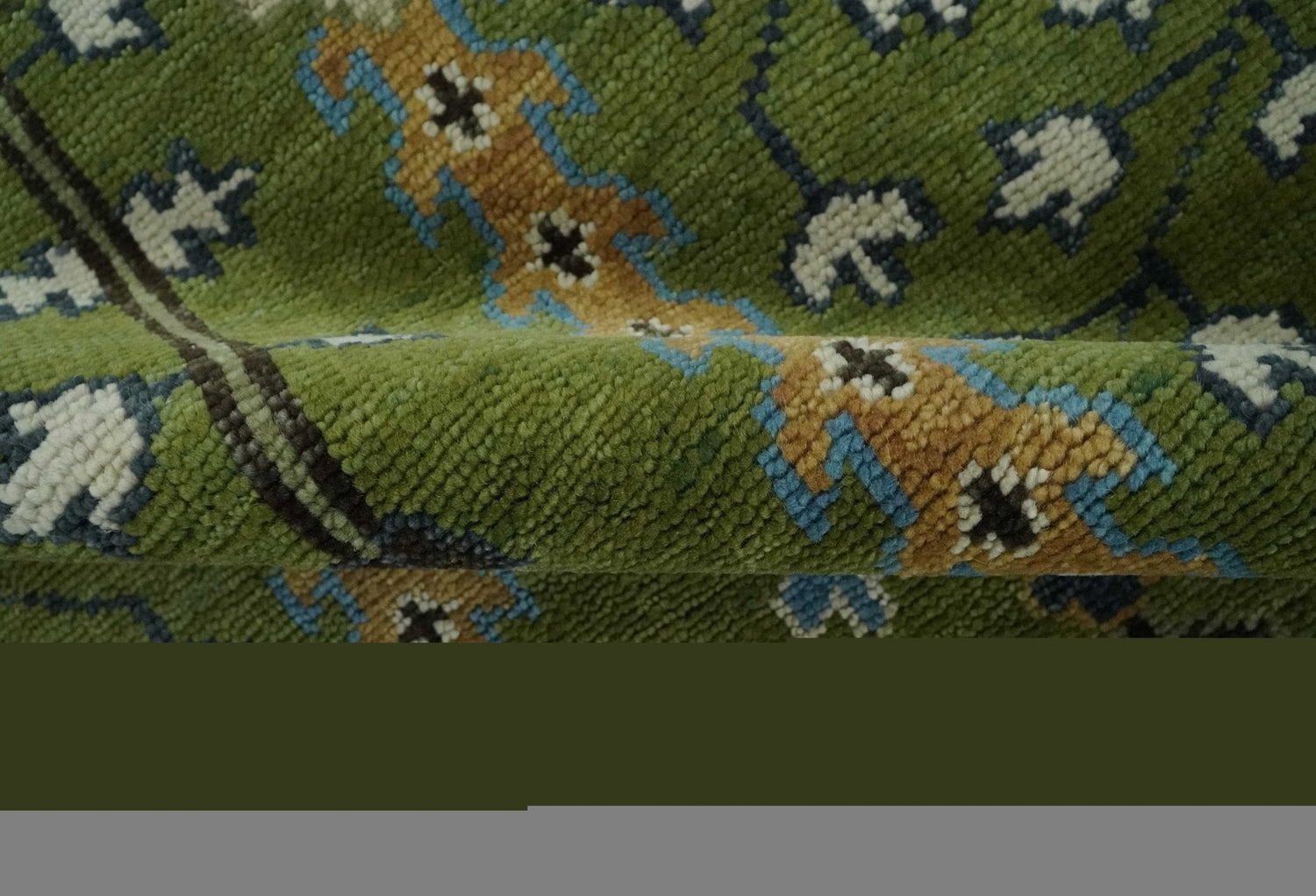 Ready to Ship Hand Knotted Green and Ivory Traditional Wool Area Rug
