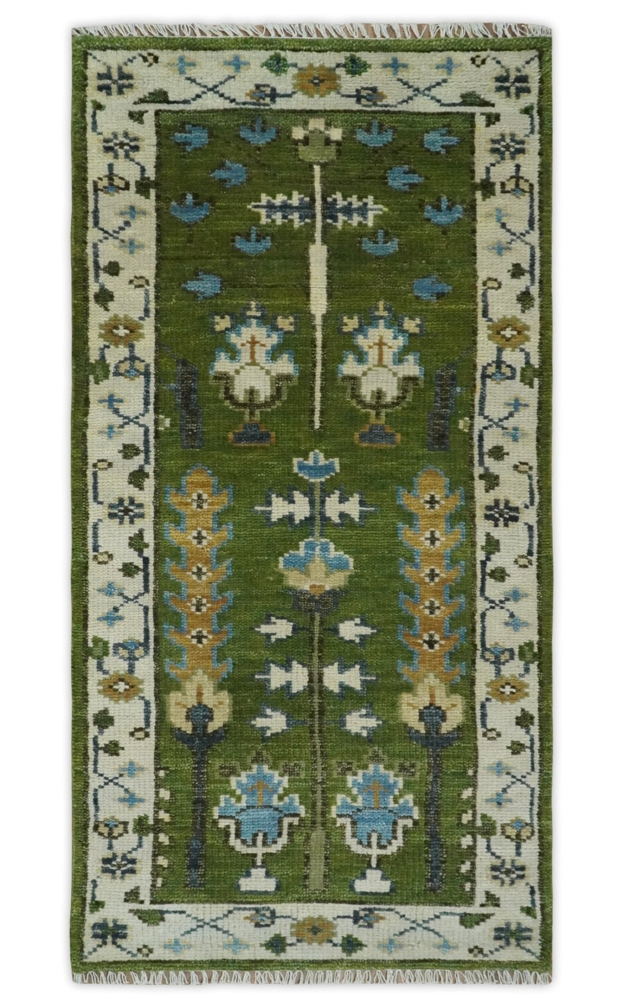 Ready to Ship Hand Knotted Green and Ivory Traditional Wool Area Rug - 2.6x6 is backordered and will ship as soon as it is back in stock.