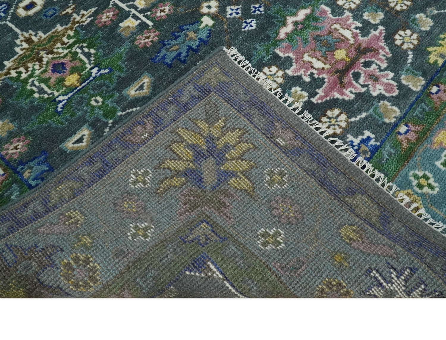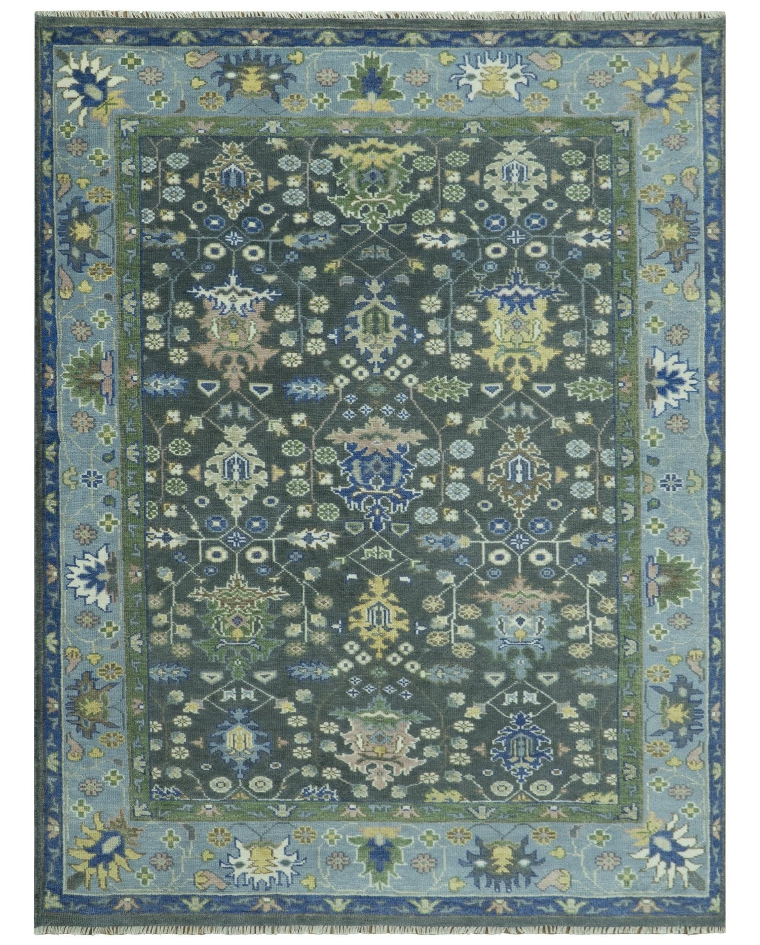 Ready to Ship Hand Knotted Green Moss and Blue Traditional Turkish Design Wool Rug