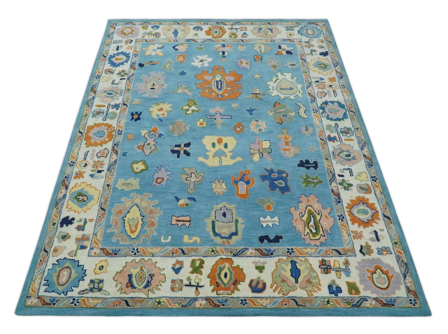 This beautiful hand-tufted Oushak rug is a vibrant addition to any room. In blue and ivory colors, this rug is contemporary and colorful. It is perfect for a living room, bedroom, or kids' room and is available in 3X5, 5X8, 6X9 AND 8X10 sizes. Its combination of functionality and style make it a great choice for any space.