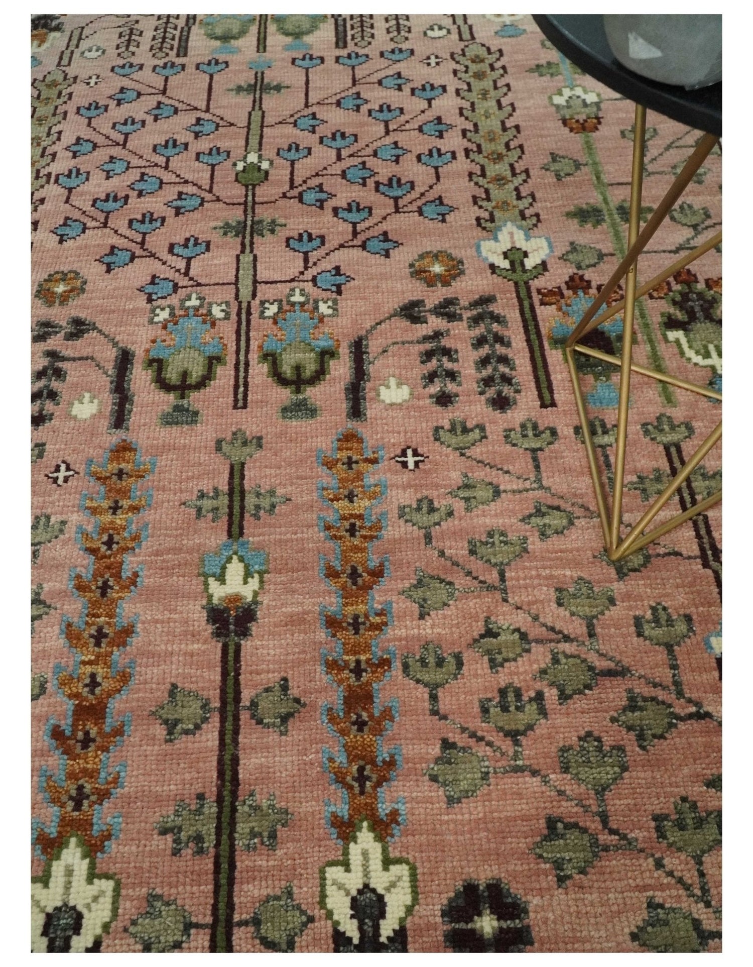 Ready to Ship Pink, Olive and Beige Traditional Vintage Style Tree Wool Rug