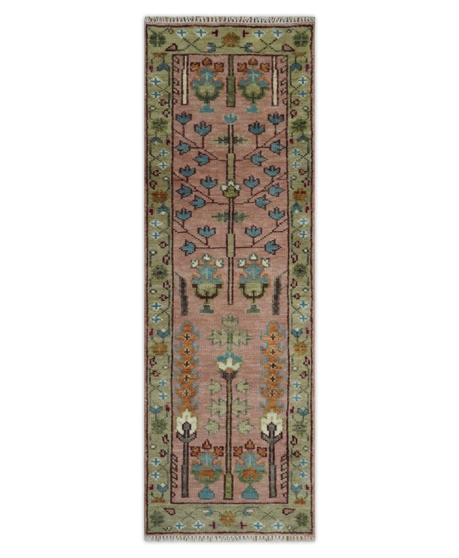 Ready to Ship Pink, Olive and Beige Traditional Vintage Style Tree Wool Rug - 2.6x6 is backordered and will ship as soon as it is back in stock.
