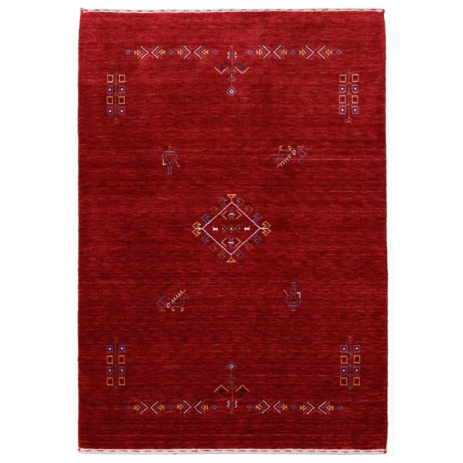 Ready to Ship Red Center Medallion Tribal Design Hand Loomed Wool Area Rug