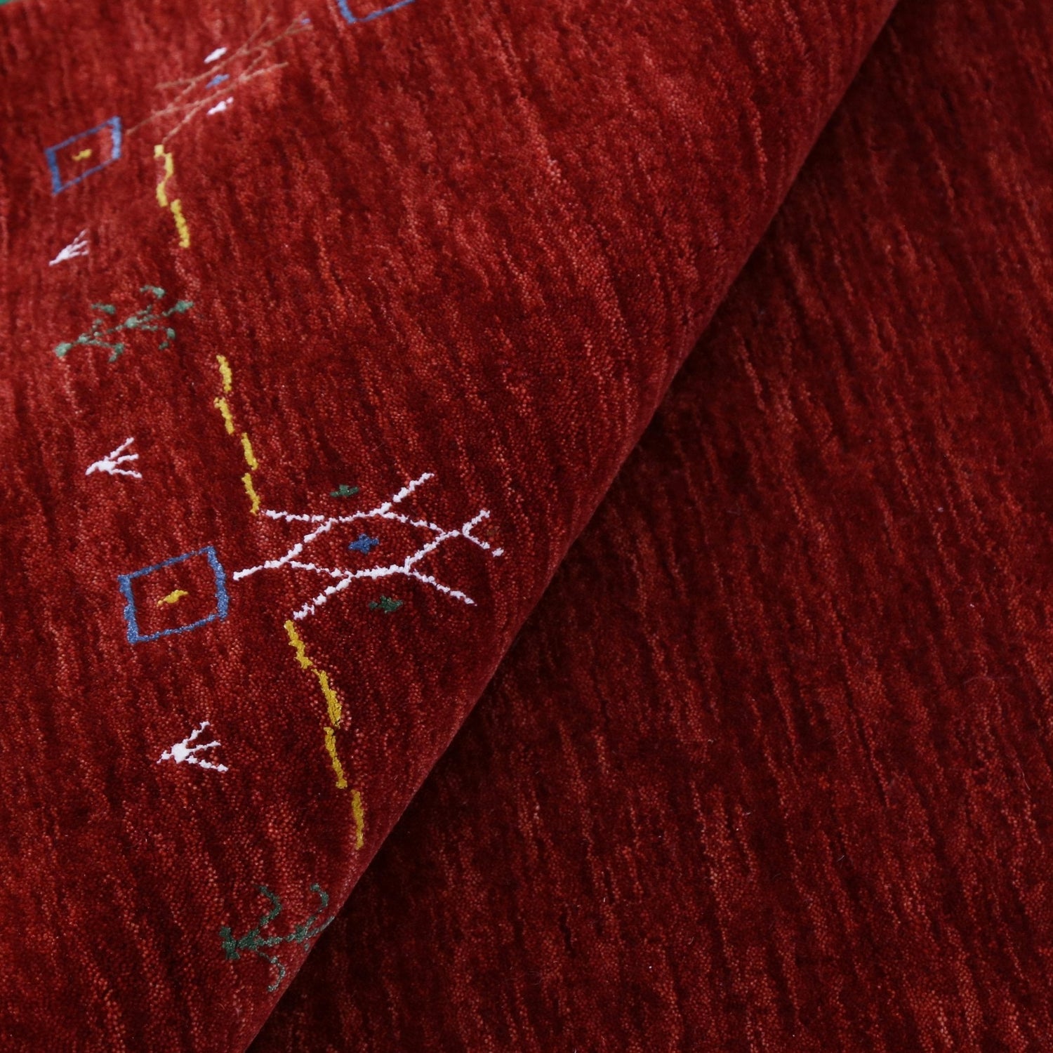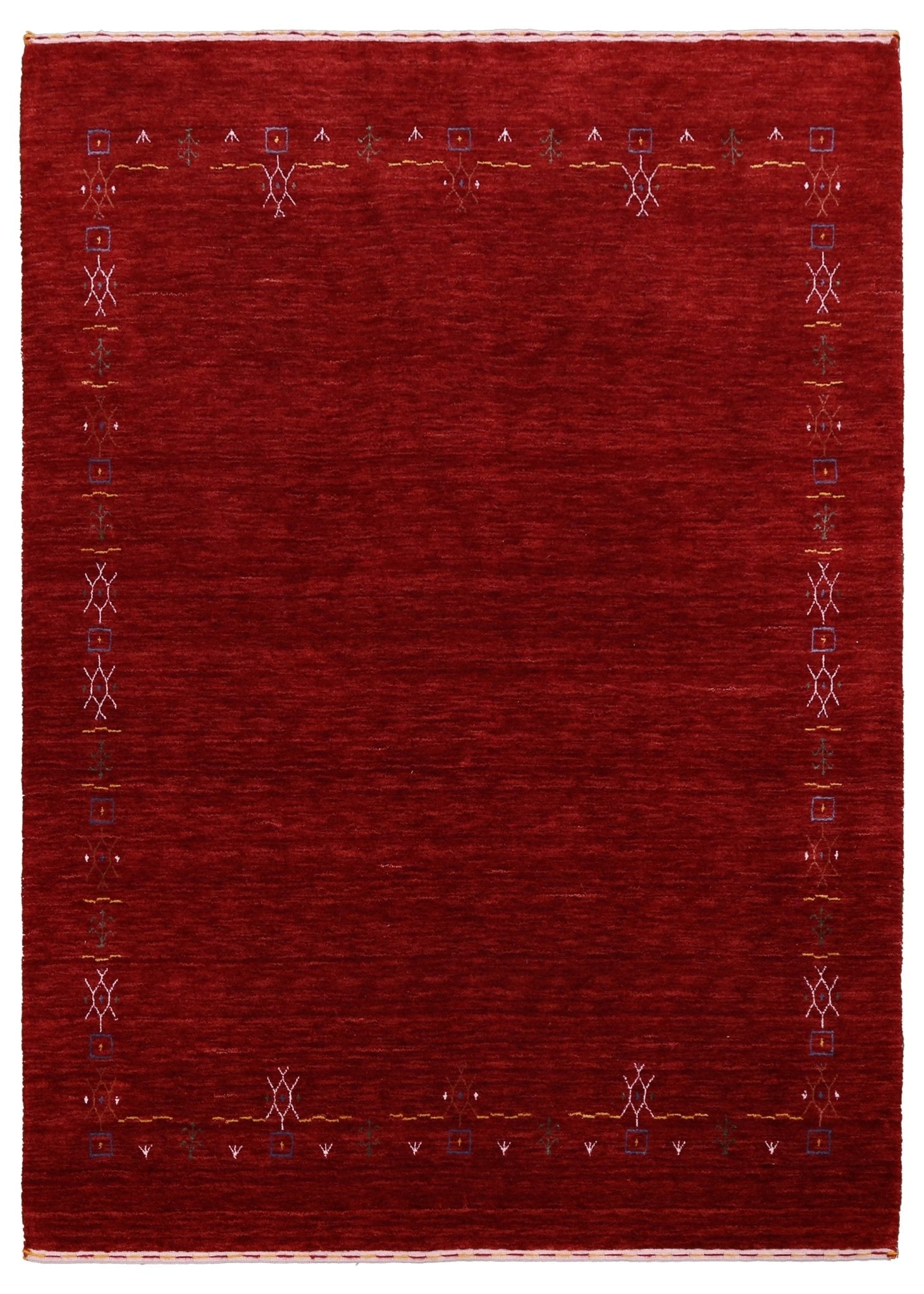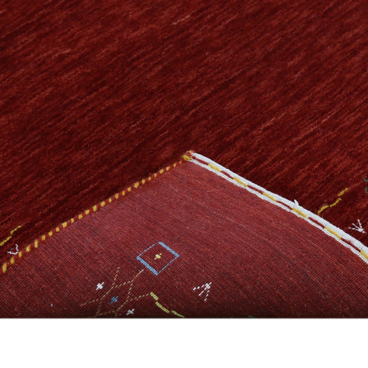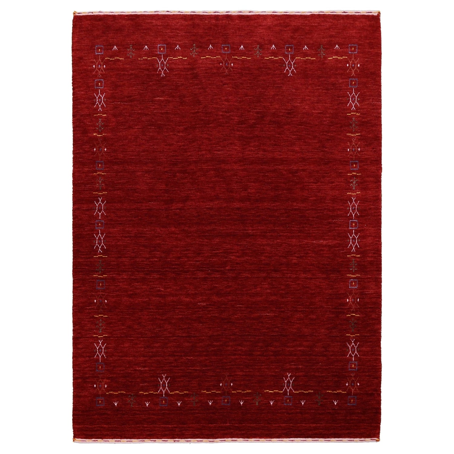 Ready to Ship Red Tribal Border Design Hand Loomed Wool Area Rug