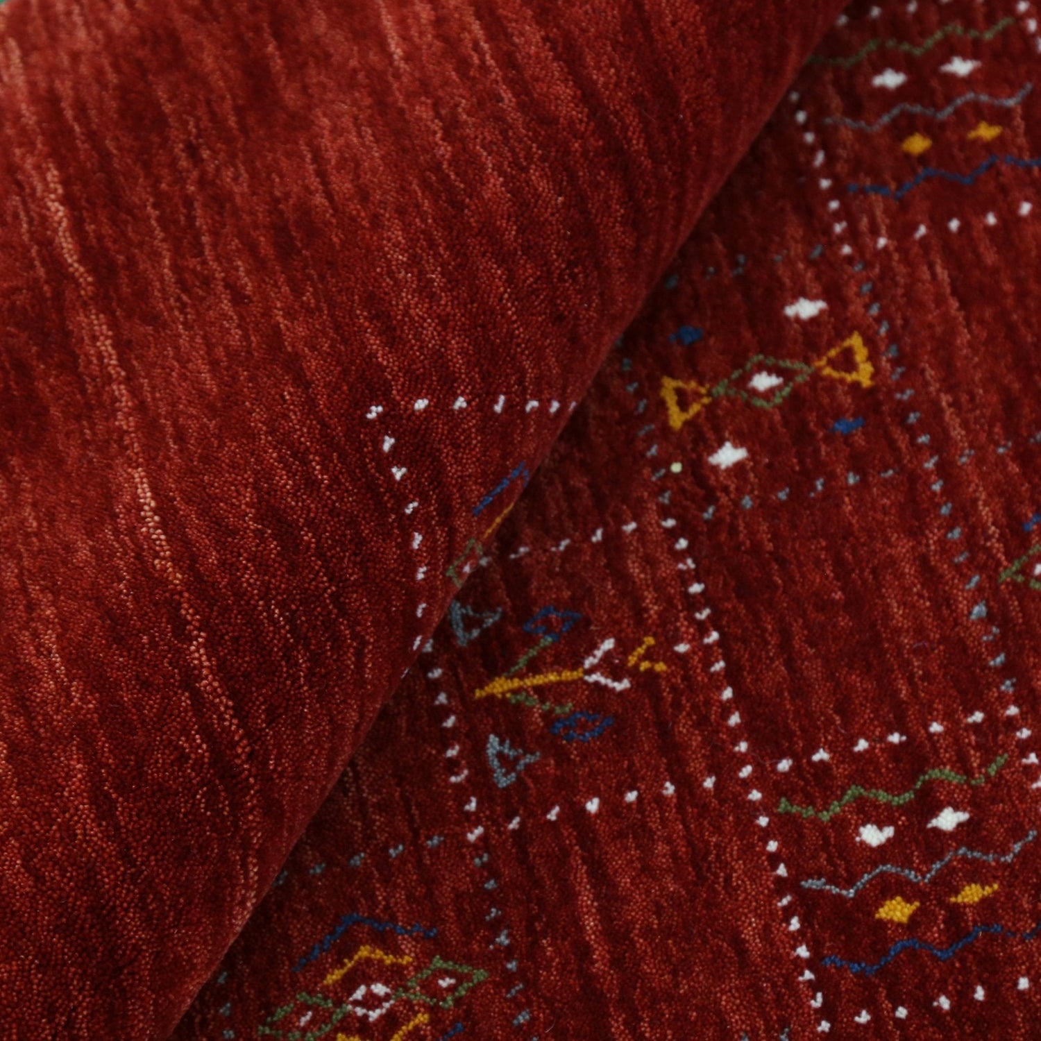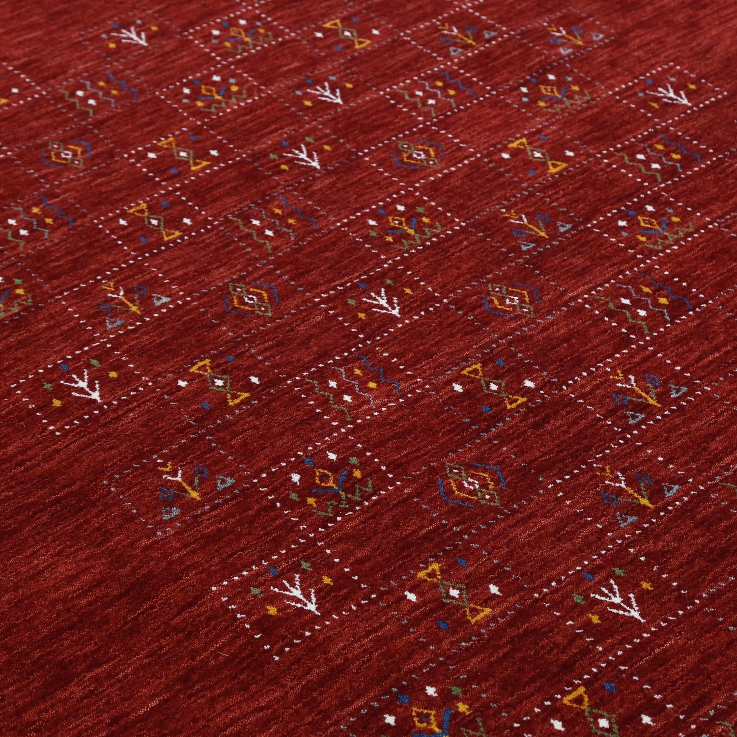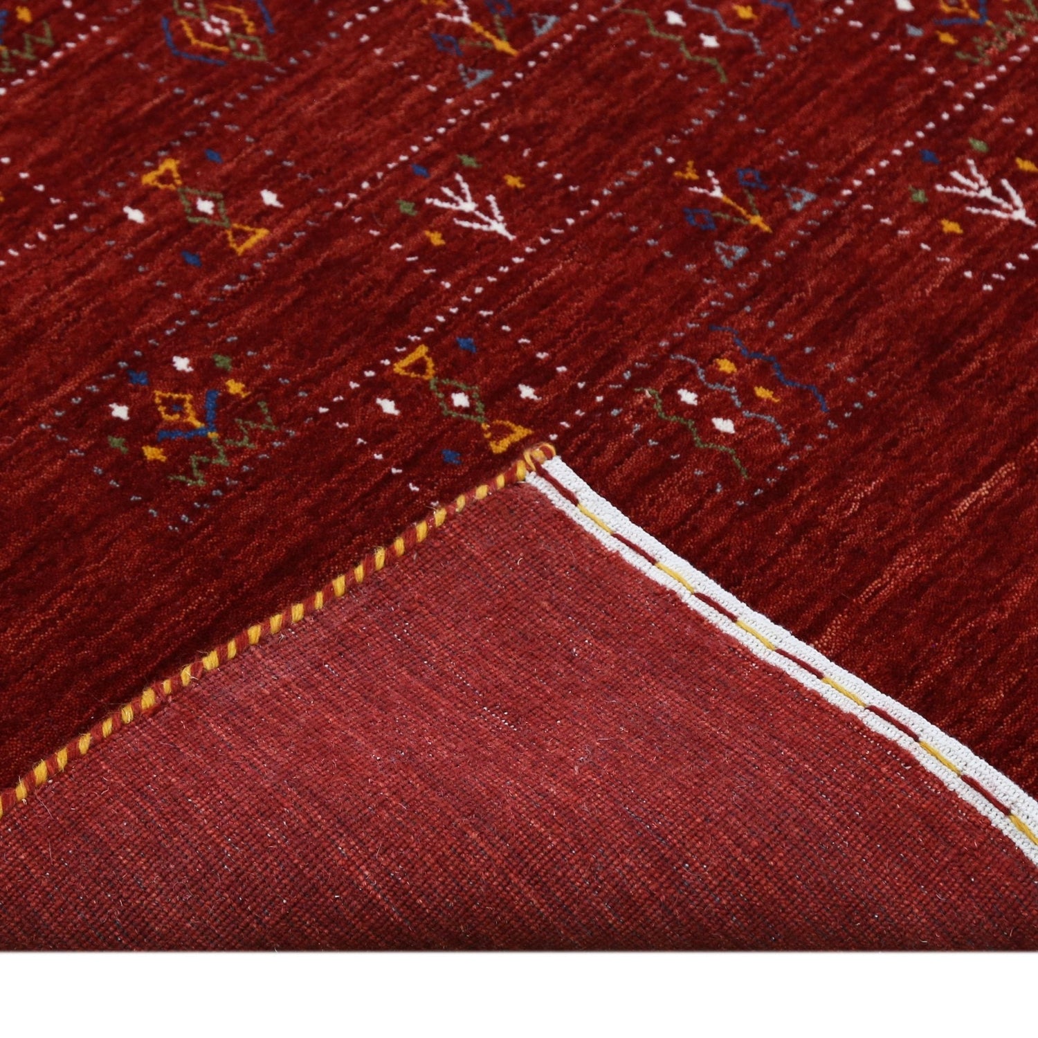 Ready to Ship Red Tribal Geometrical Design Wool Area Rug