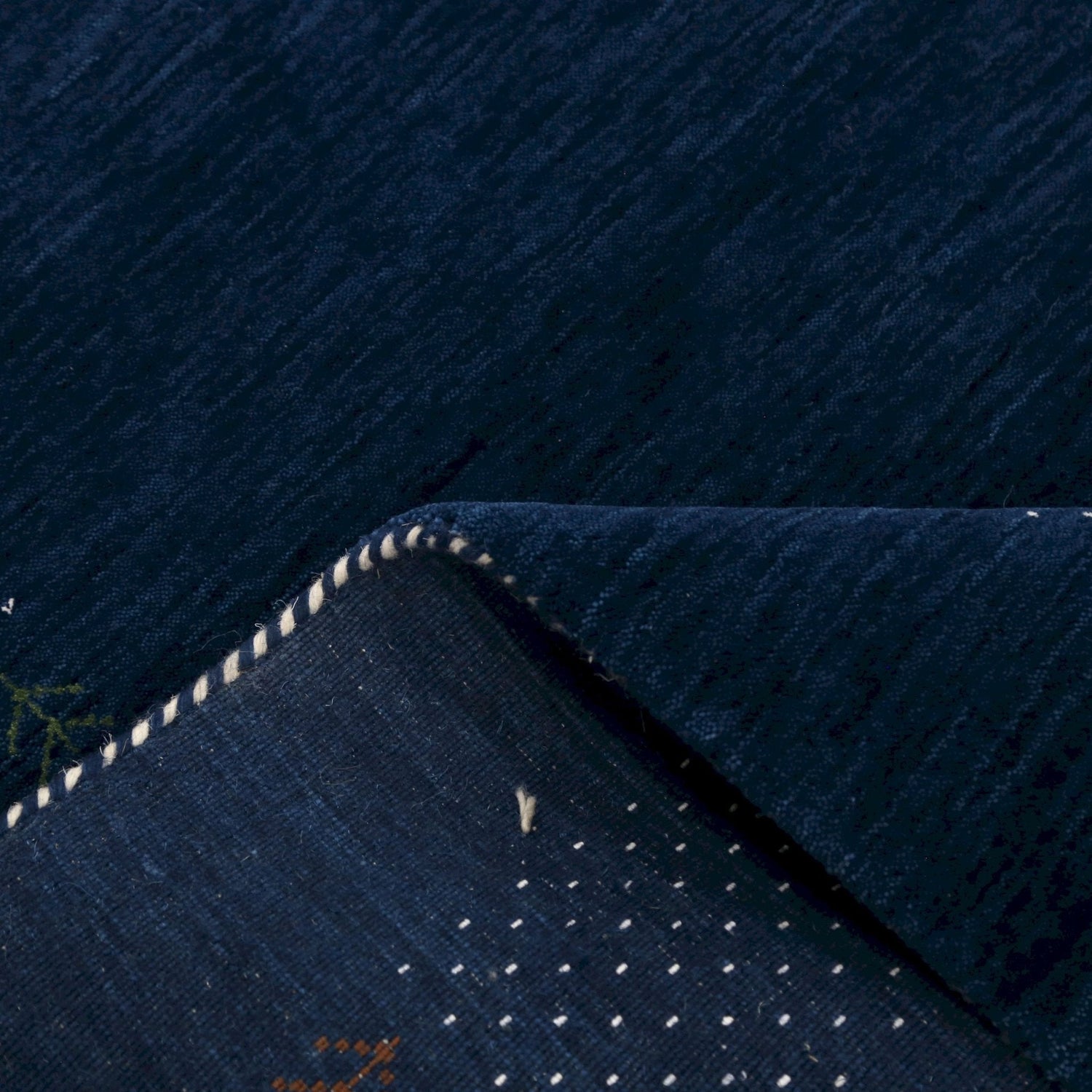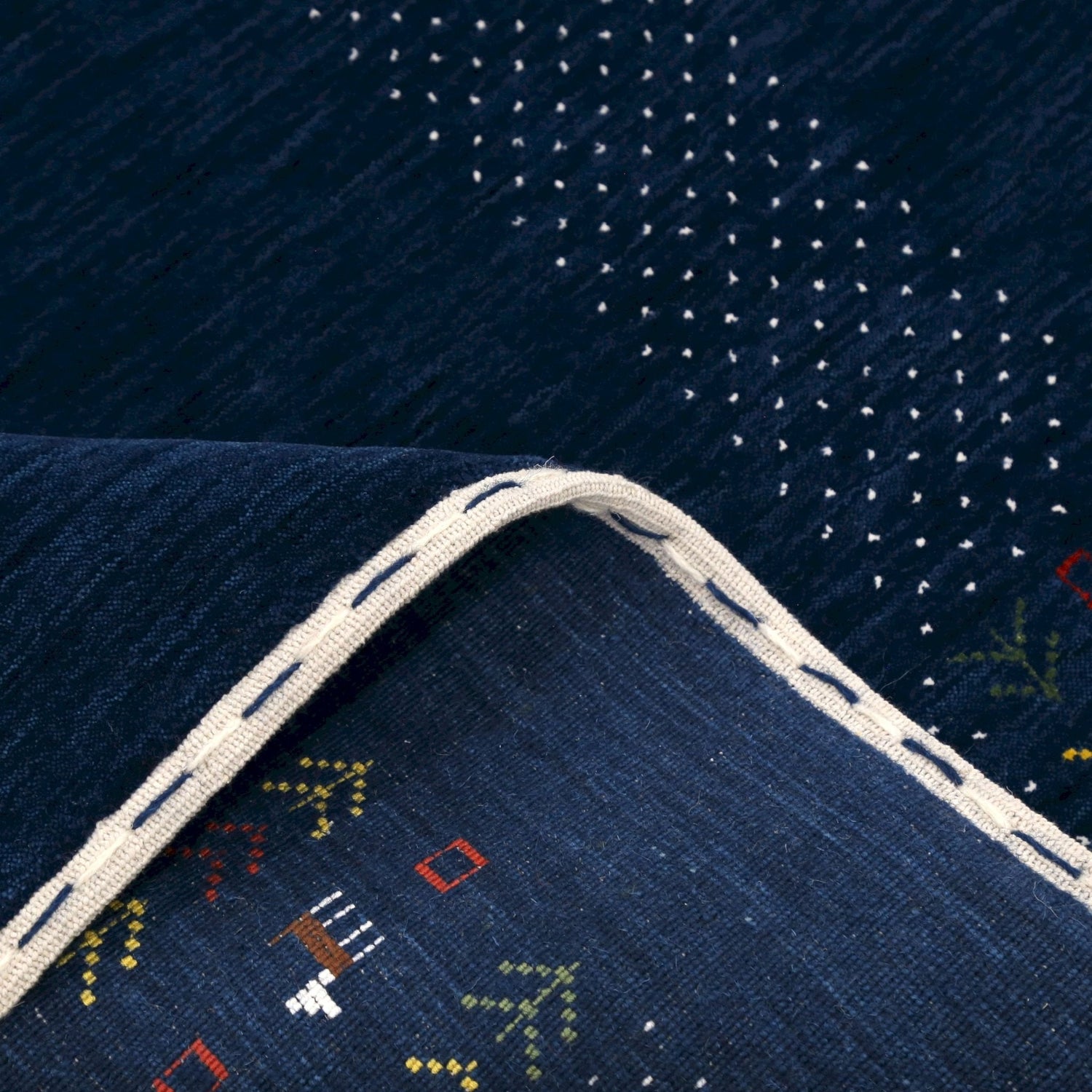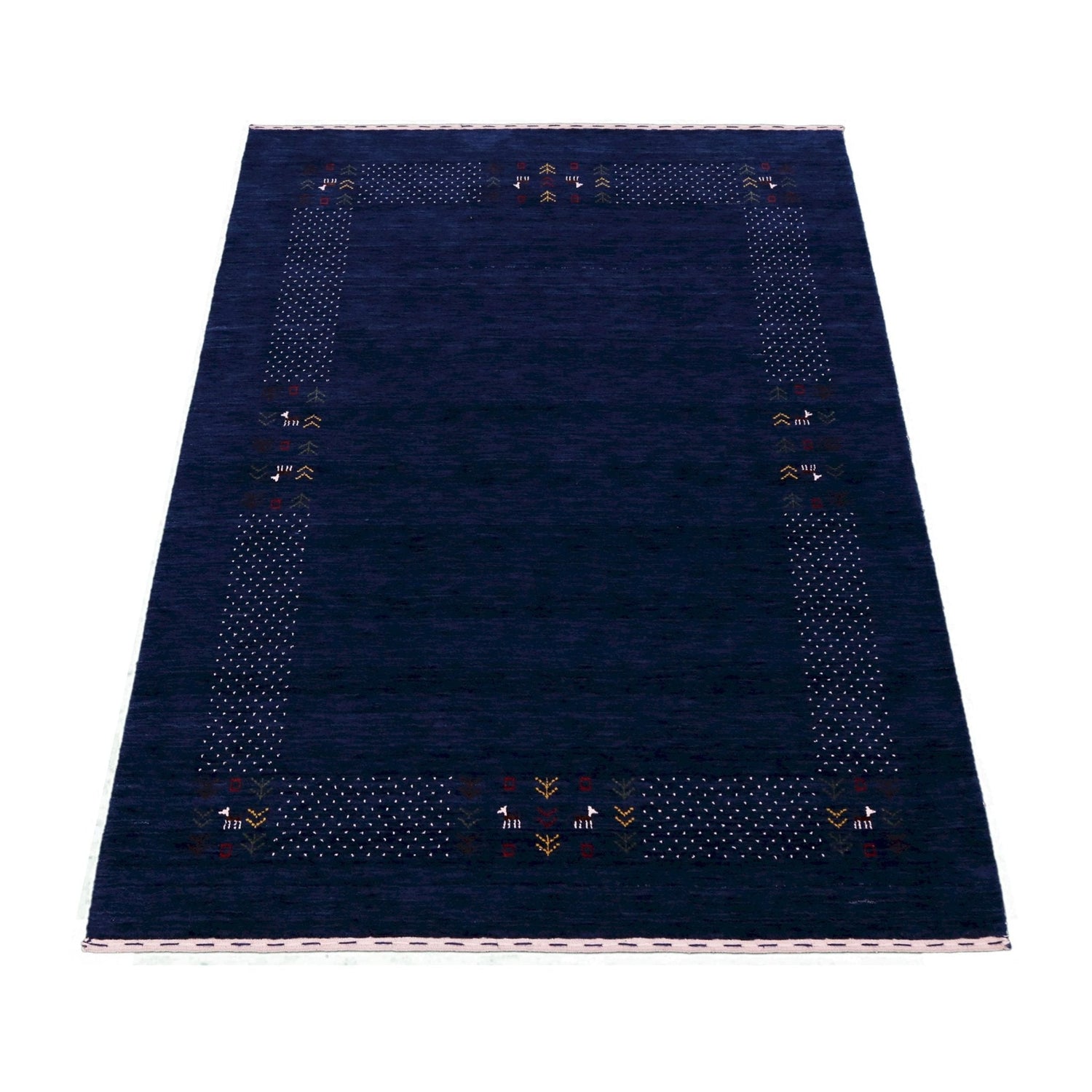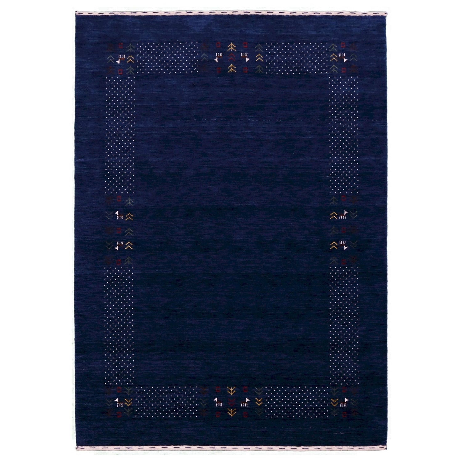 Ready to Ship Solid Blue Border Patterns Hand Loomed Wool Area Rug