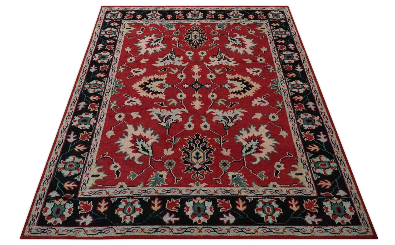 Red and Black Hand Knotted Traditional Oushak Custom made wool Area Rug