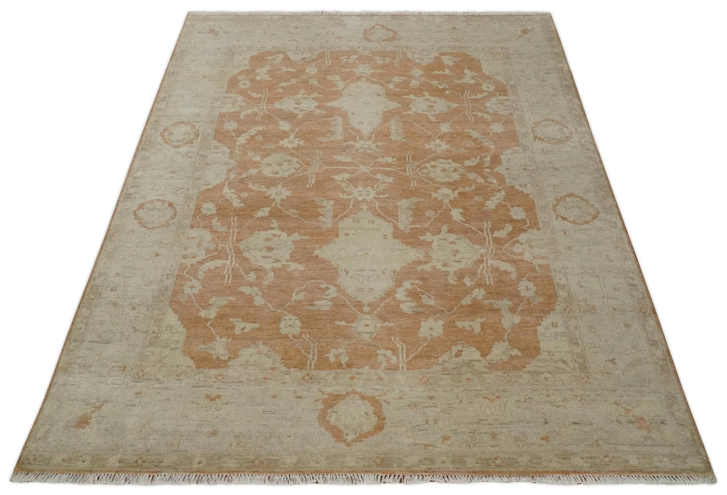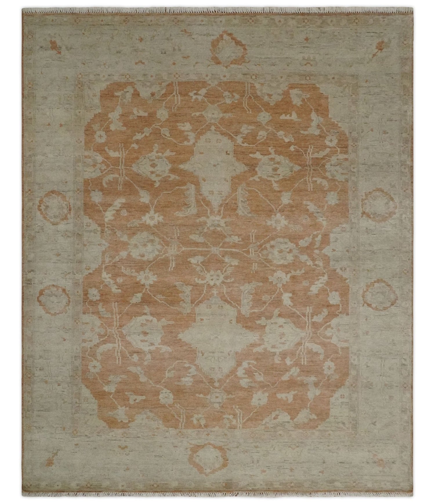 Rust and Beige Hand knotted Oriental Oushak 8x10 wool Area Rug - 8x10 is backordered and will ship as soon as it is back in stock.