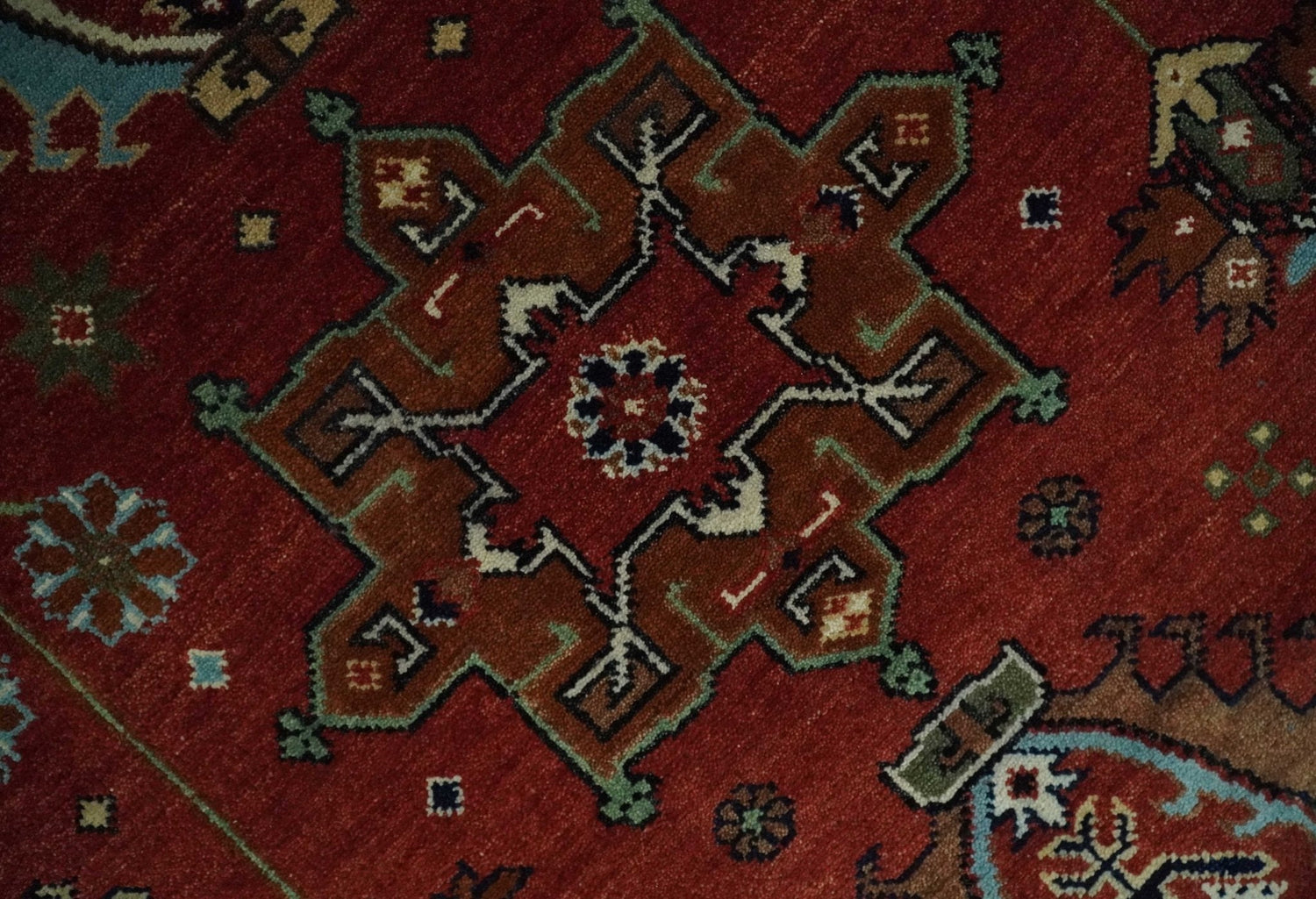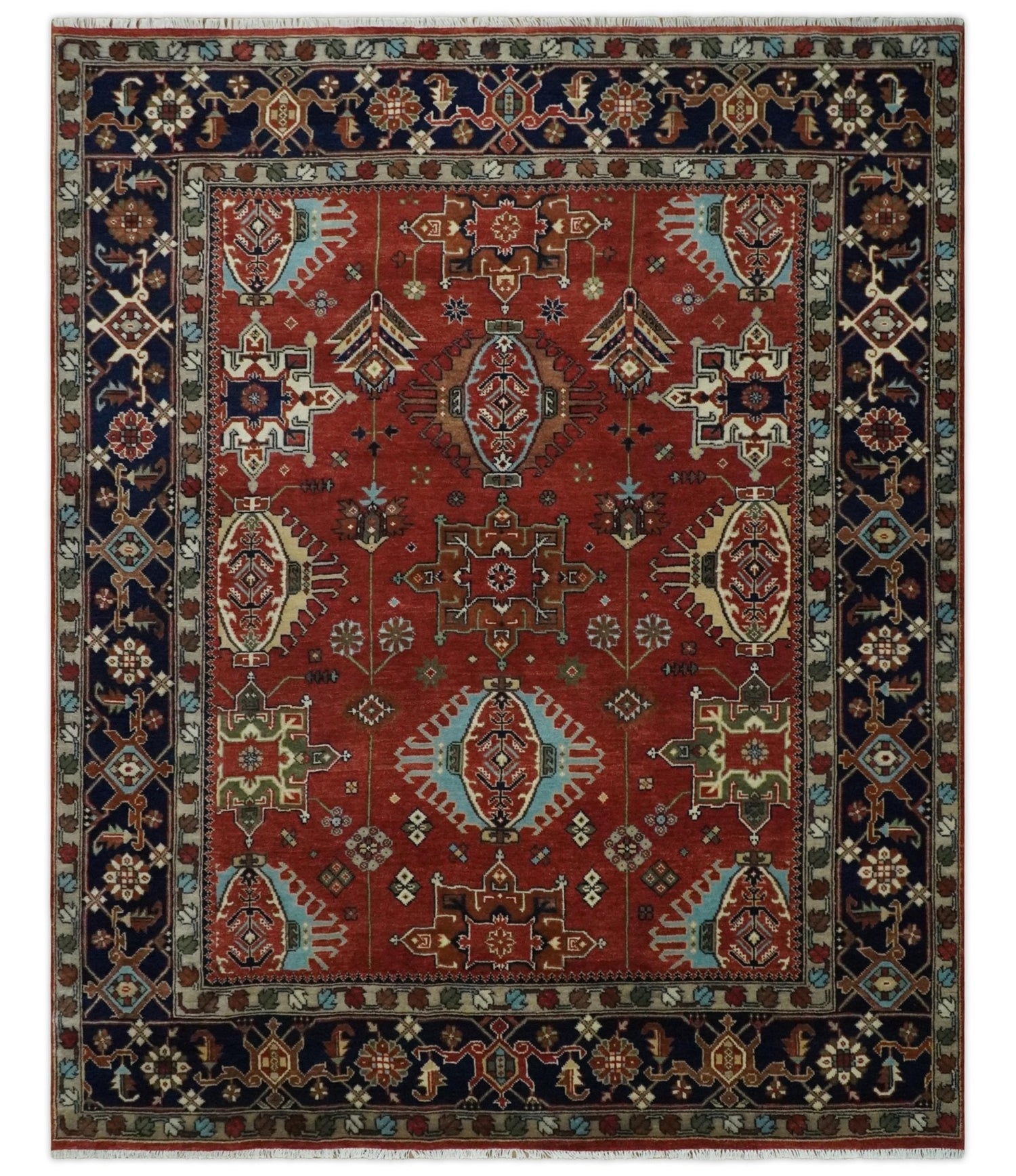 Rust, Blue and Beige Hand Knotted Antique 8x10 Traditional Wool Rug - 8x10 is backordered and will ship as soon as it is back in stock.